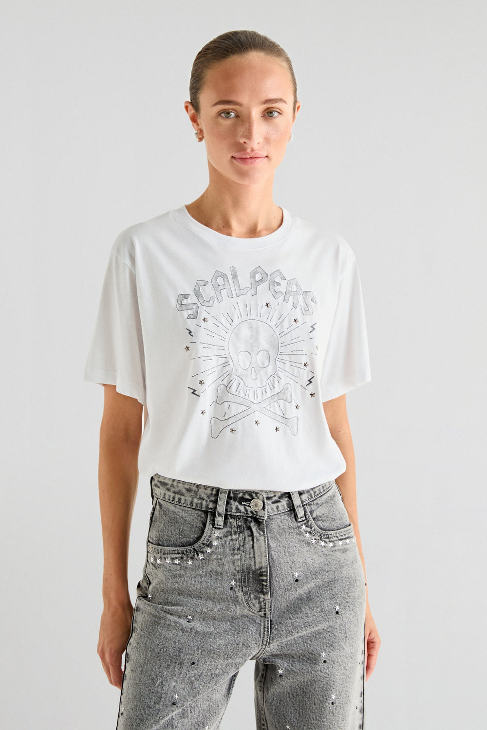 T-shirt made of 100% cotton. Regular fit, round neck and short sleeves. Print at the front with studded stars.