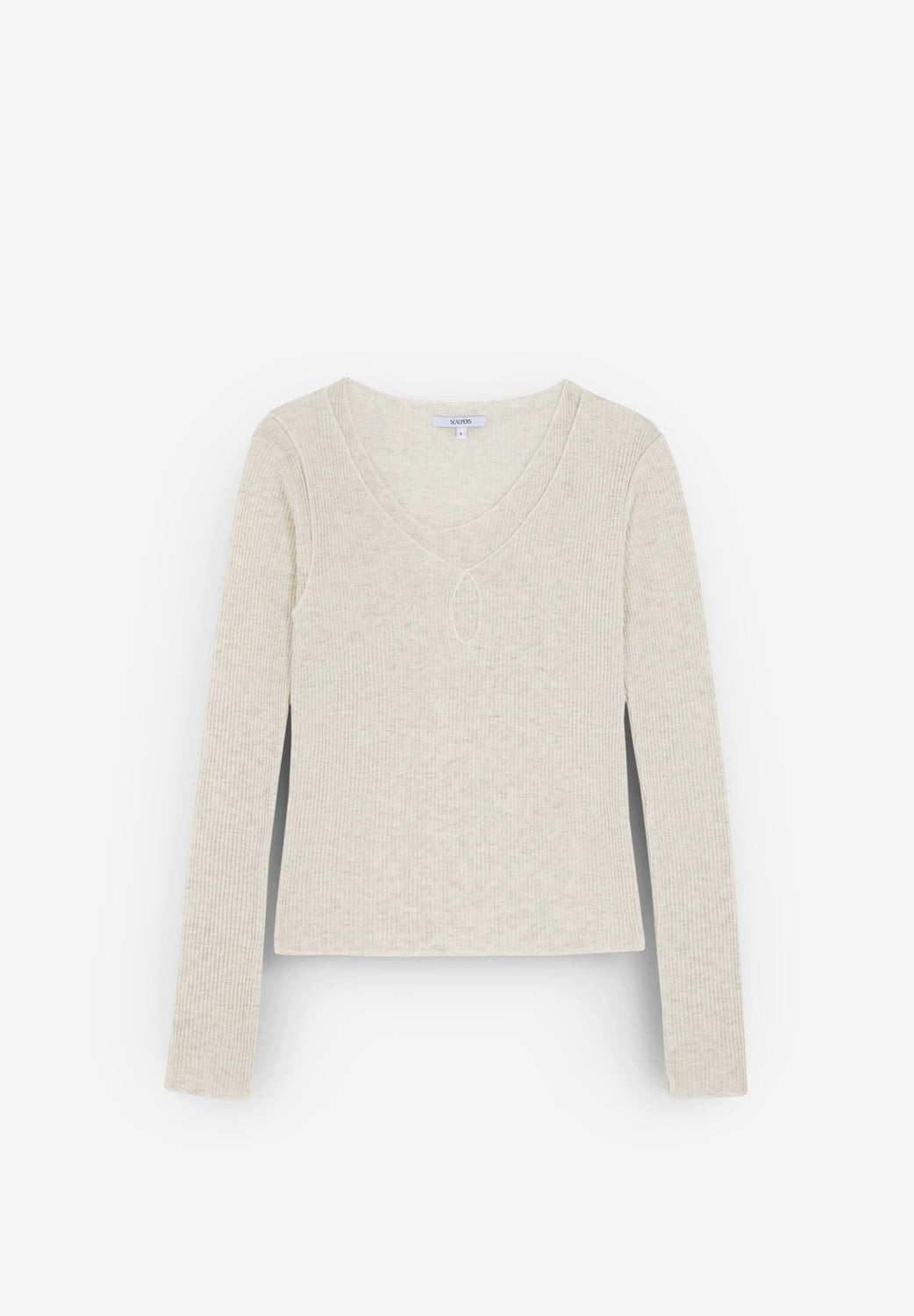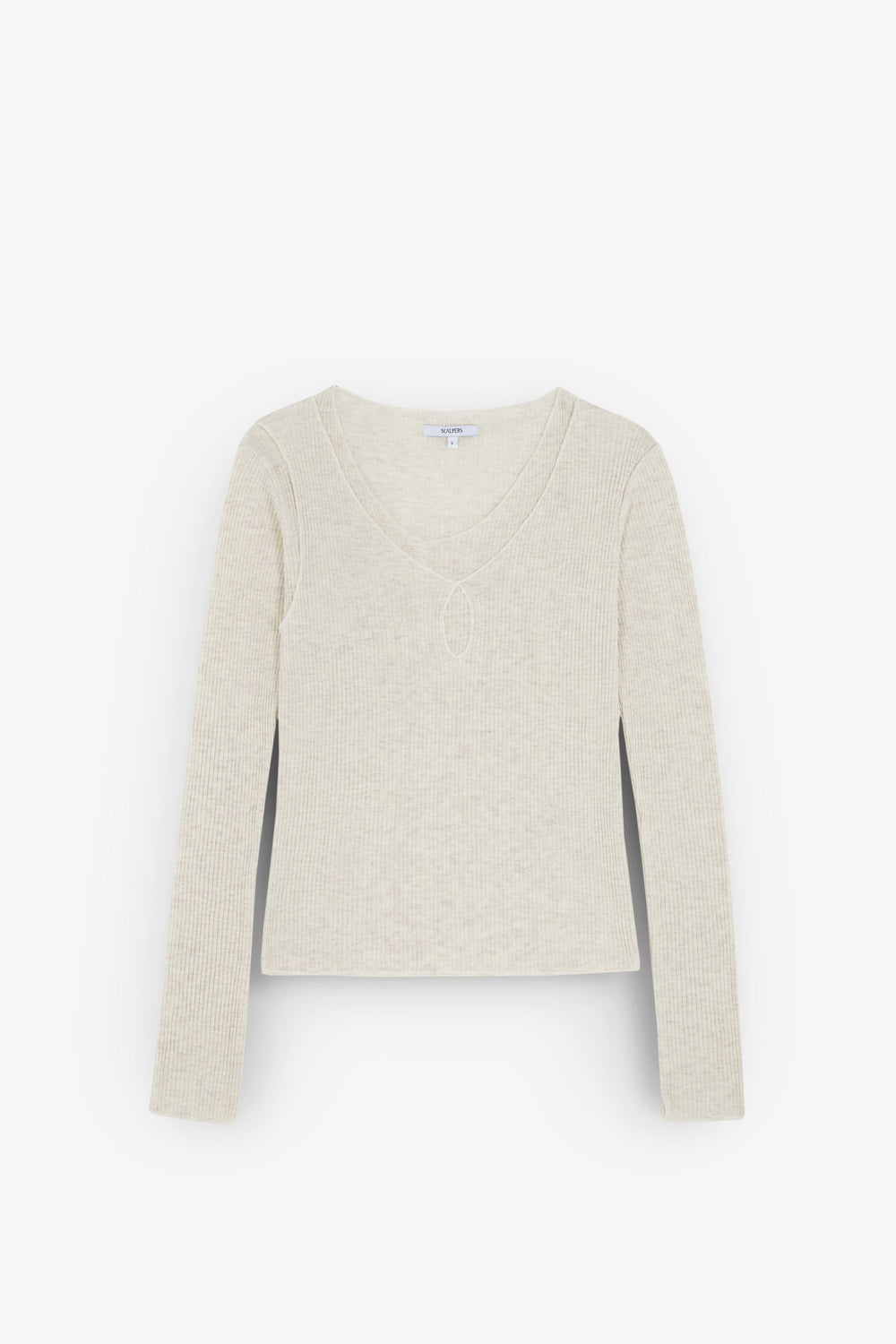 Ribbed T-shirt made of slightly stretchy cotton. Slim fit, double V-neck with opening and long sleeves.