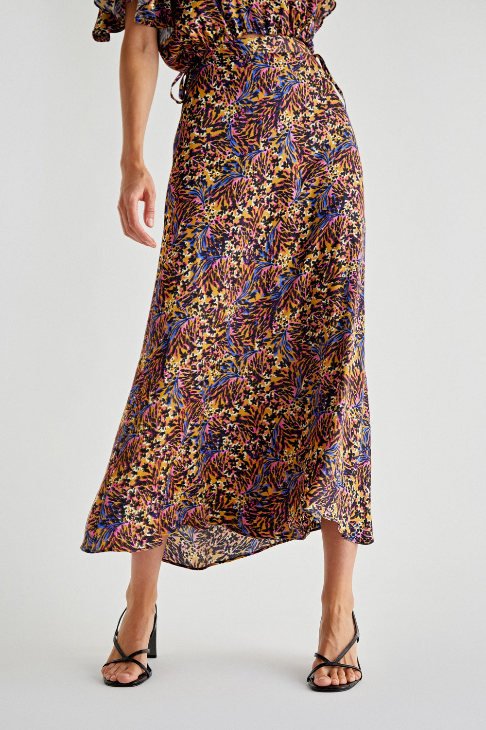 Flowing midi skirt with a print. Regular fit, zip fastening.
