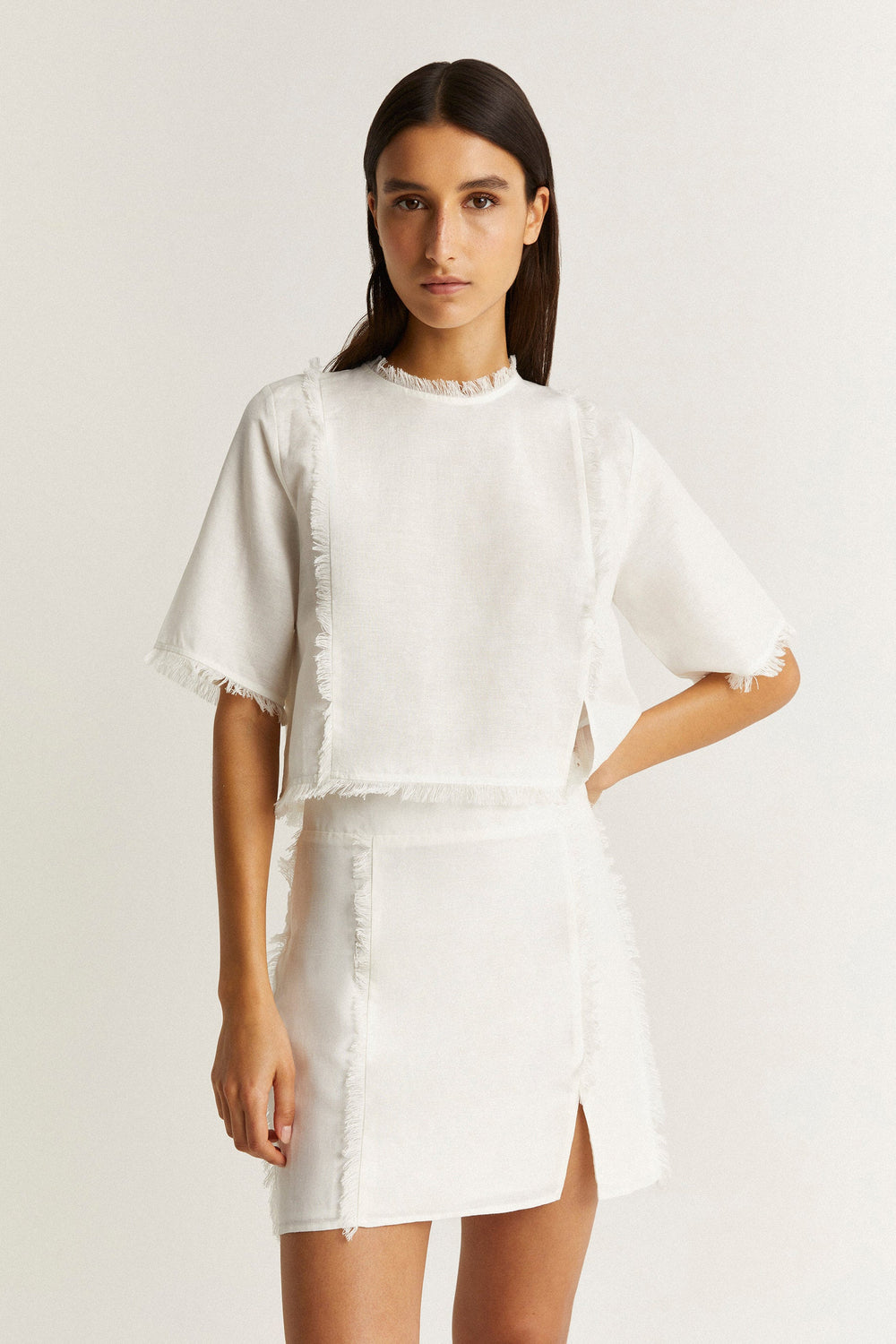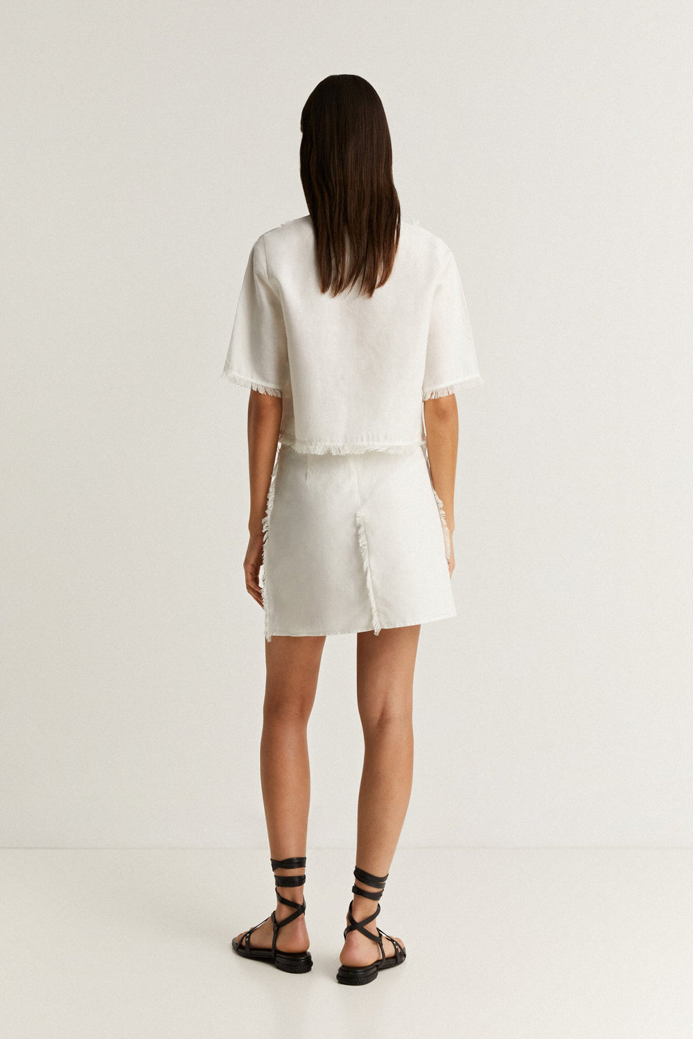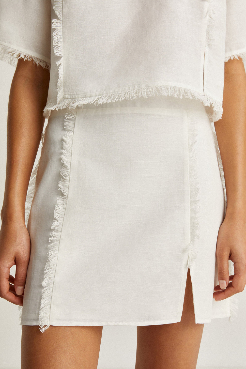 Frayed linen mini skirt