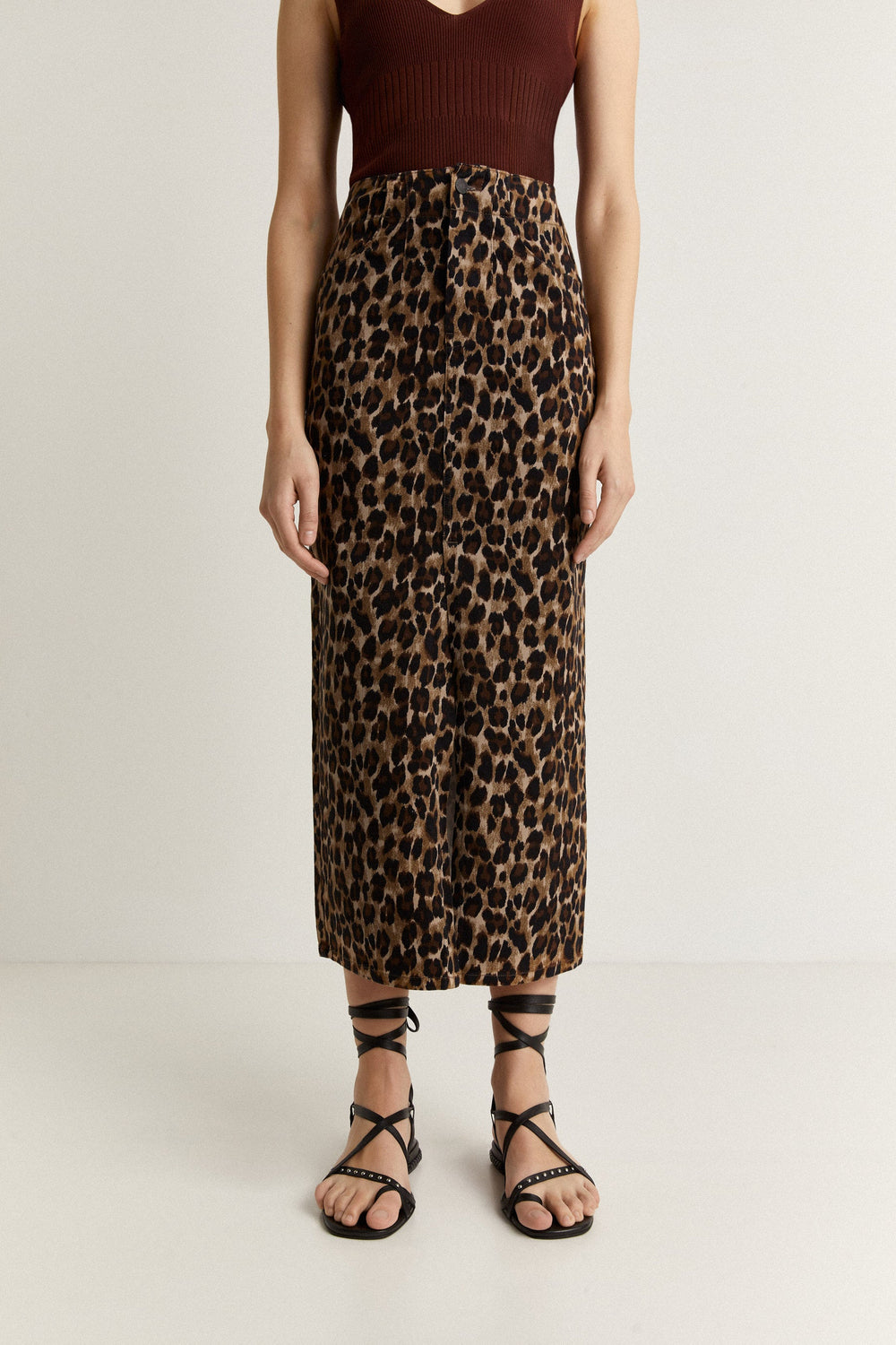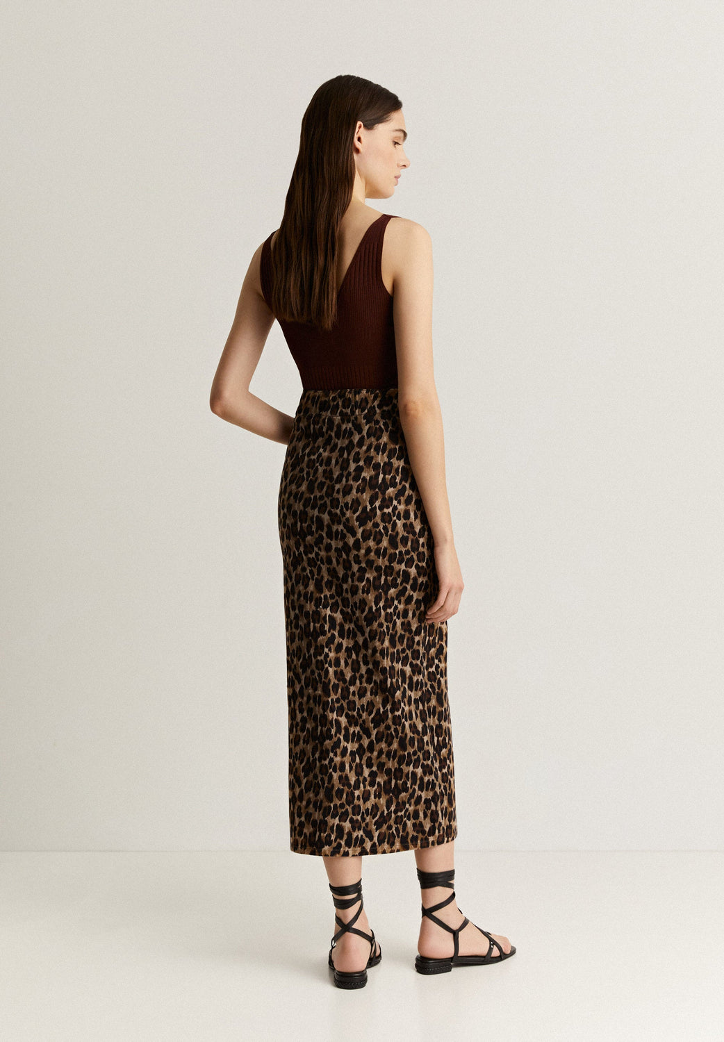 Midi skirt with leopard print.