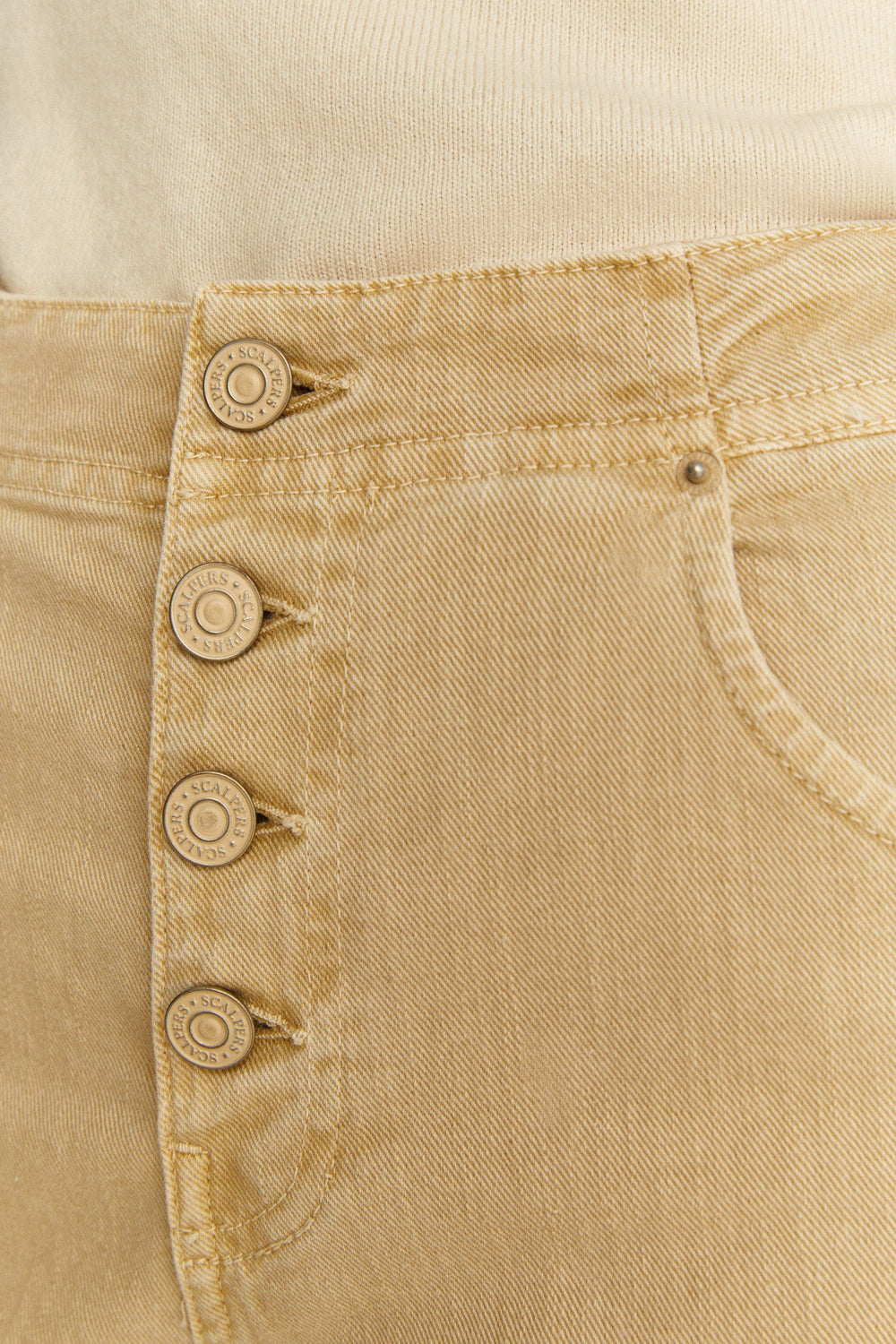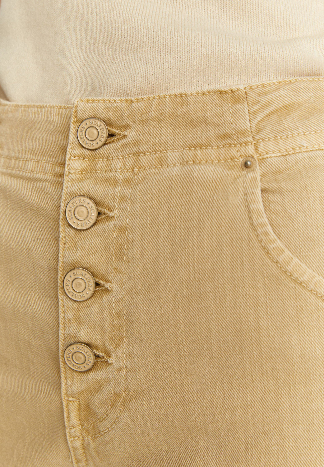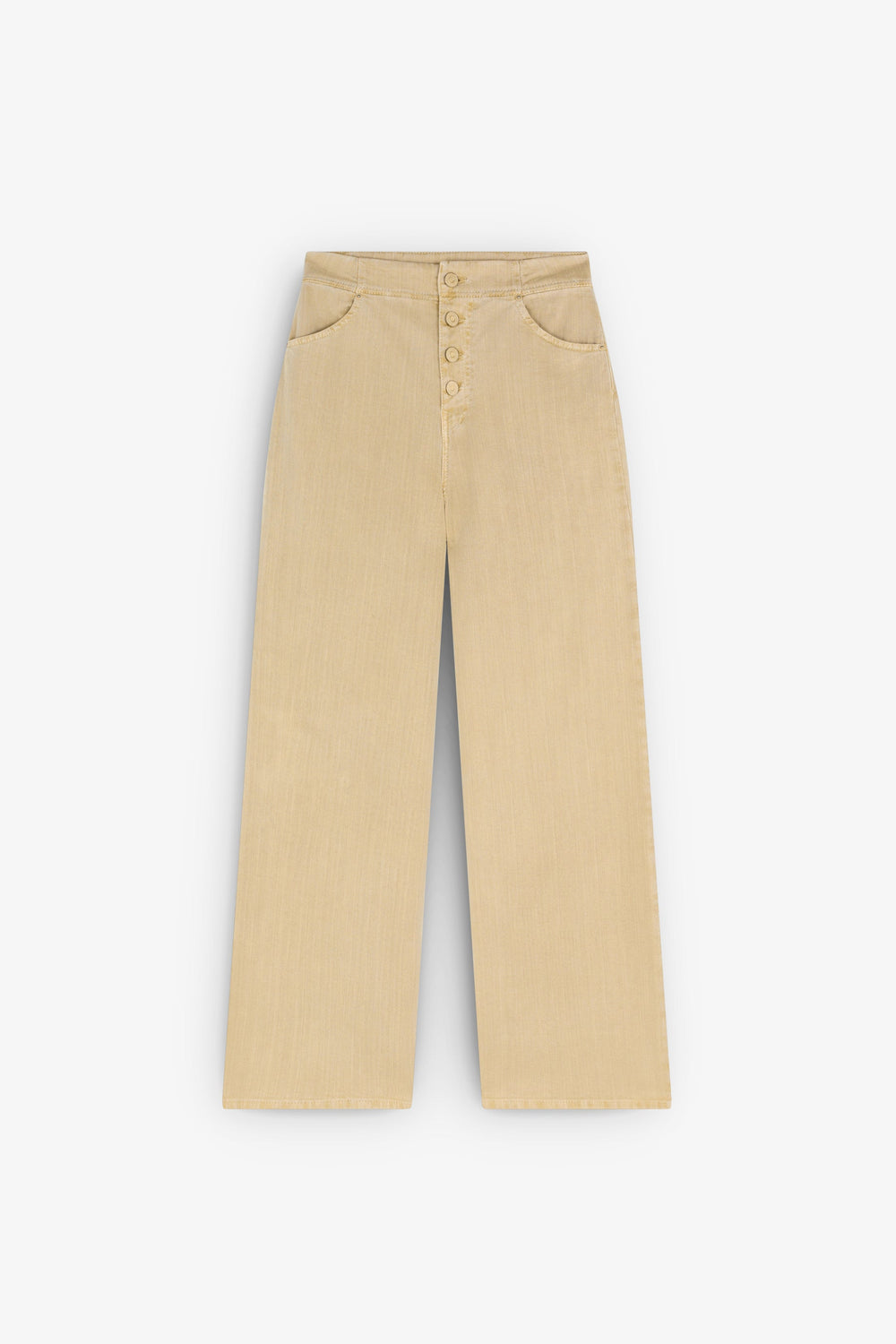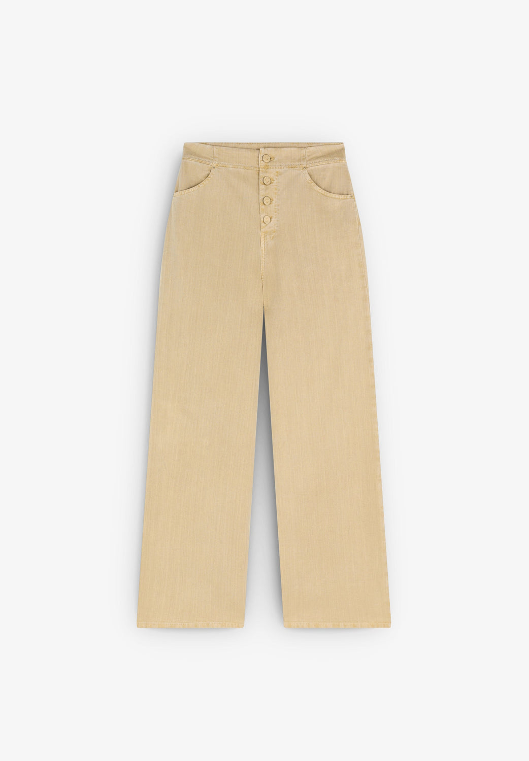 Washed-effect denim trousers with tone-on-tone buttons.