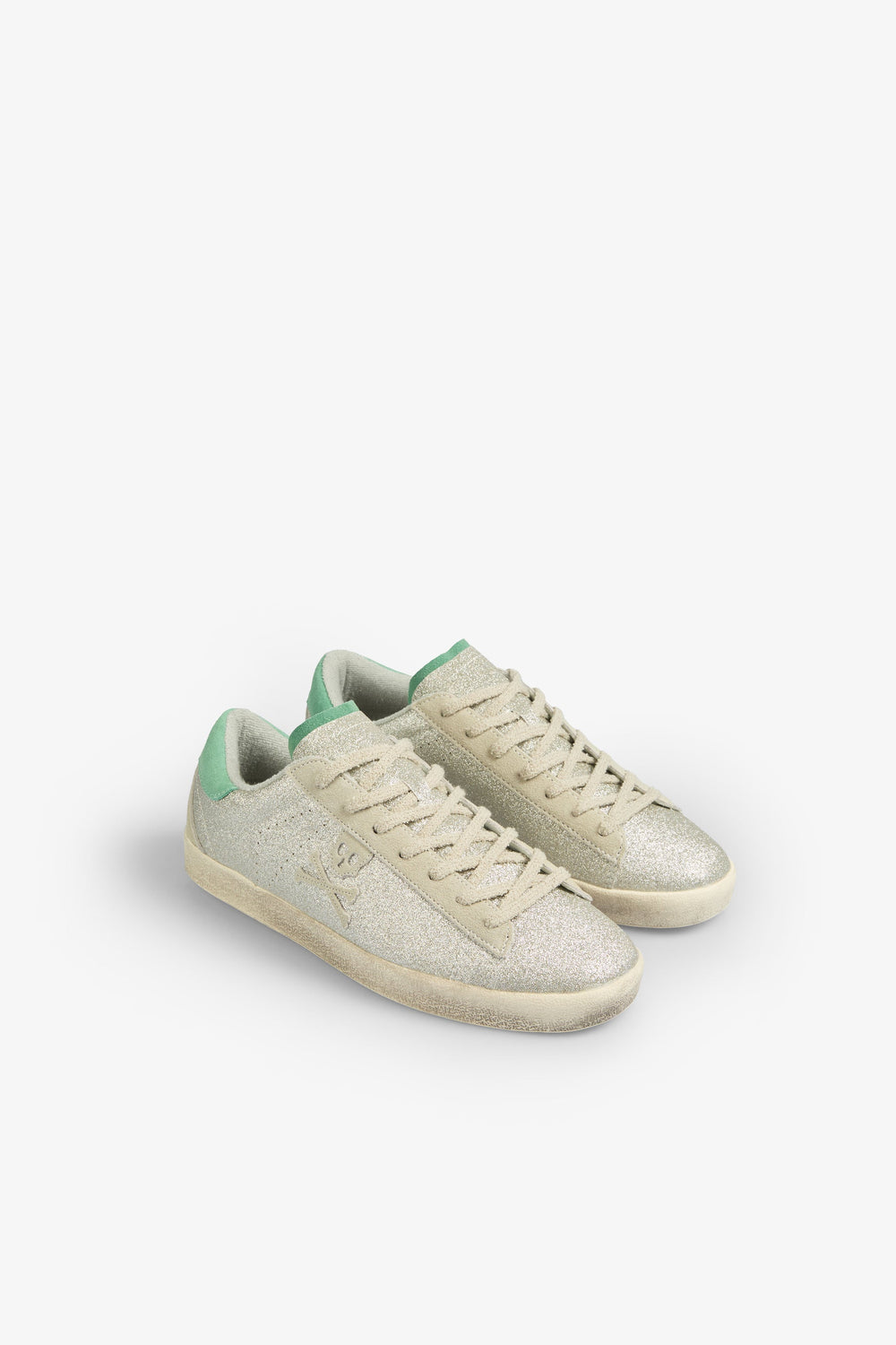 Glitter low-top sneakers made of 100% leather. Lace-up fastening, recycled rubber soles and matching skull.