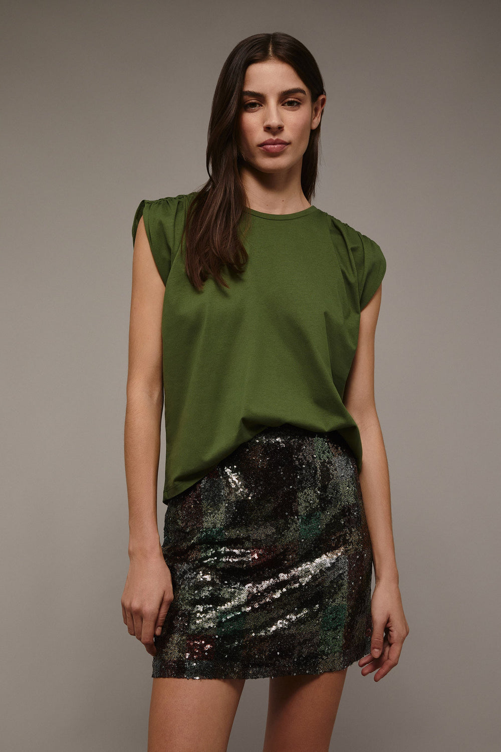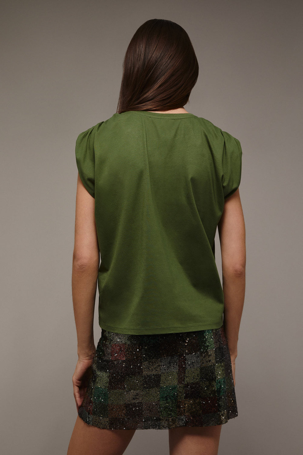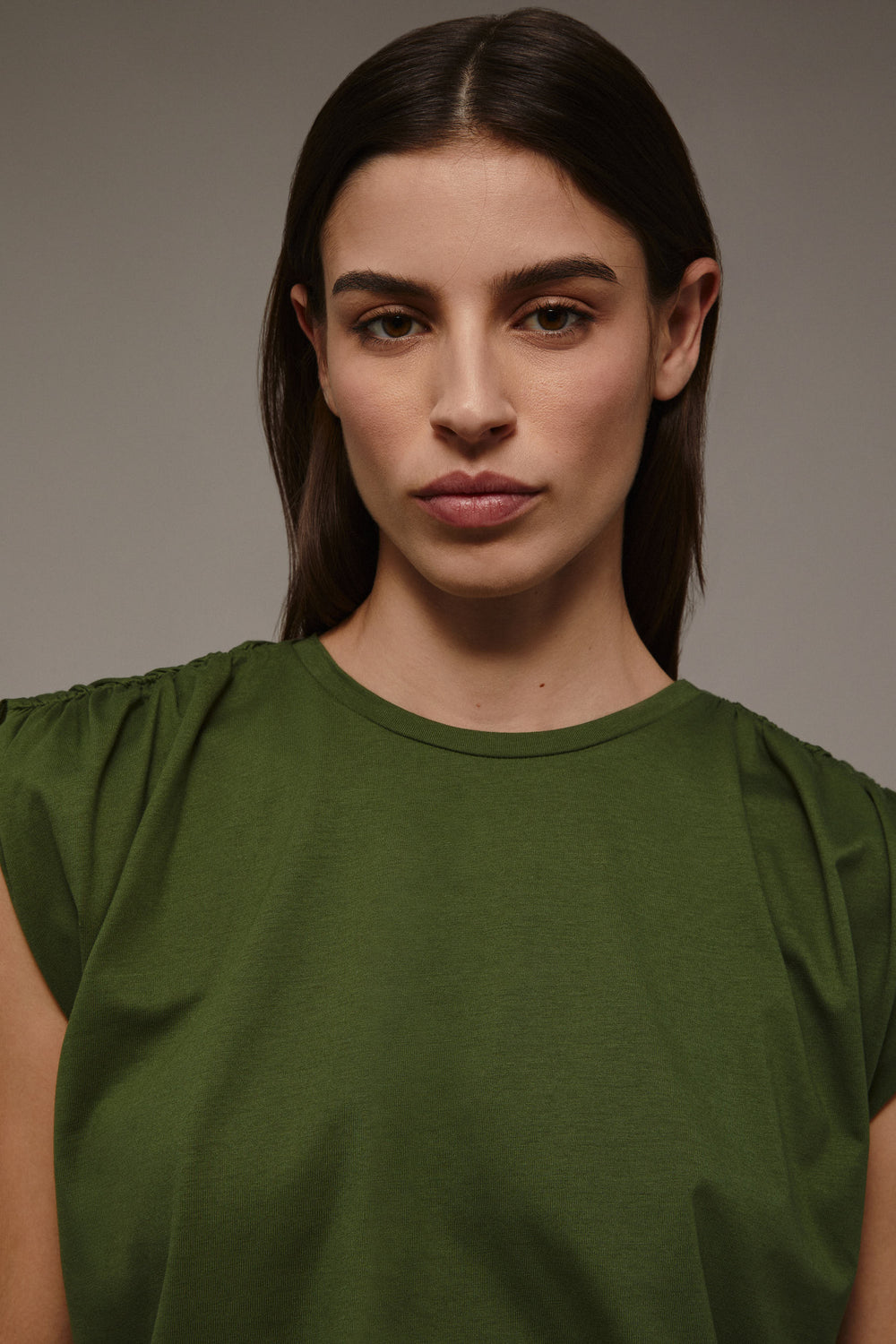 T-SHIRT WITH GATHERED SHOULDER DETAIL