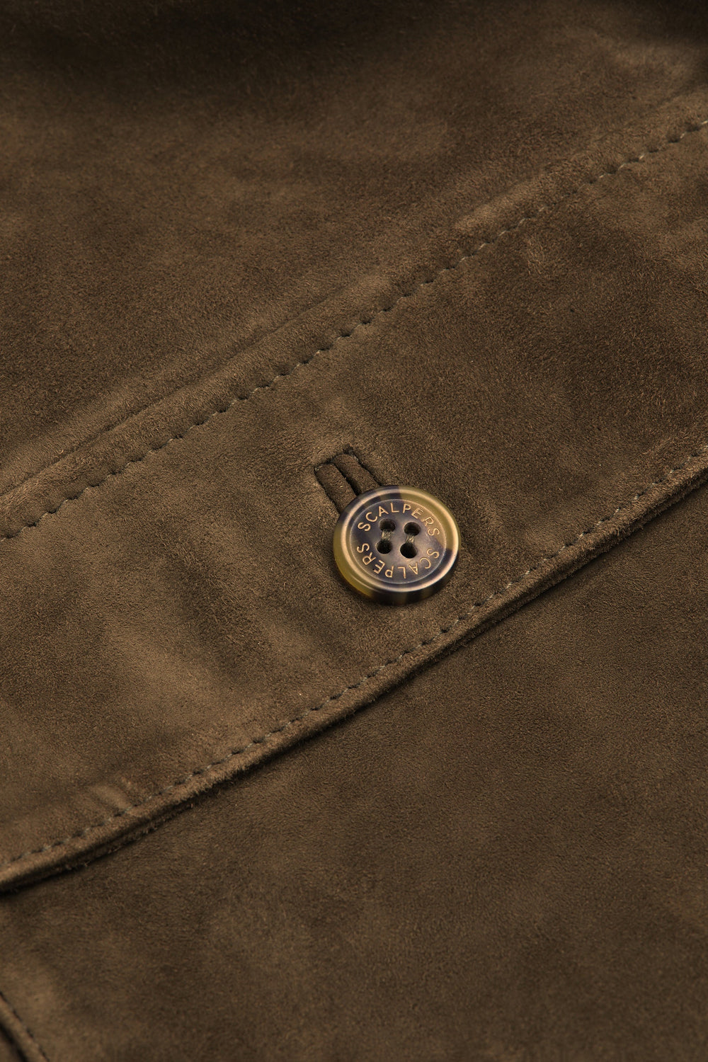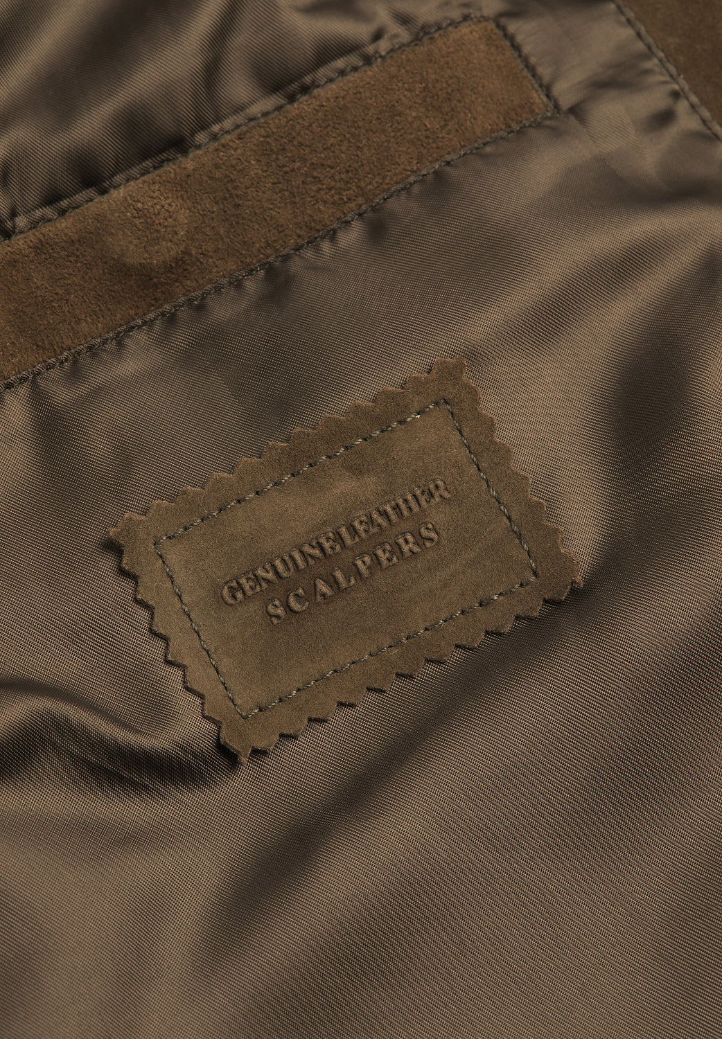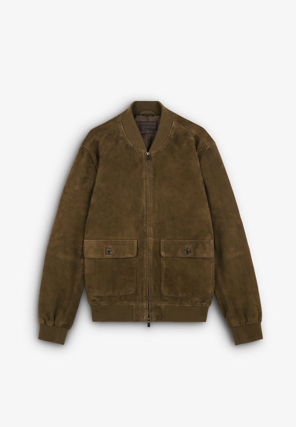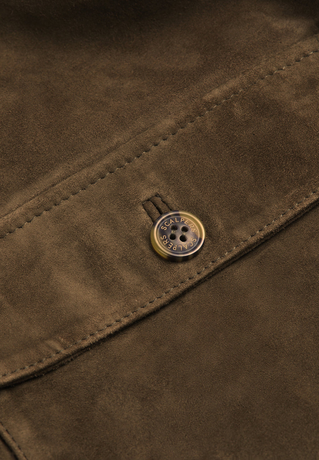 - Patch pockets with lapel and horn-effect button with military buttonhole