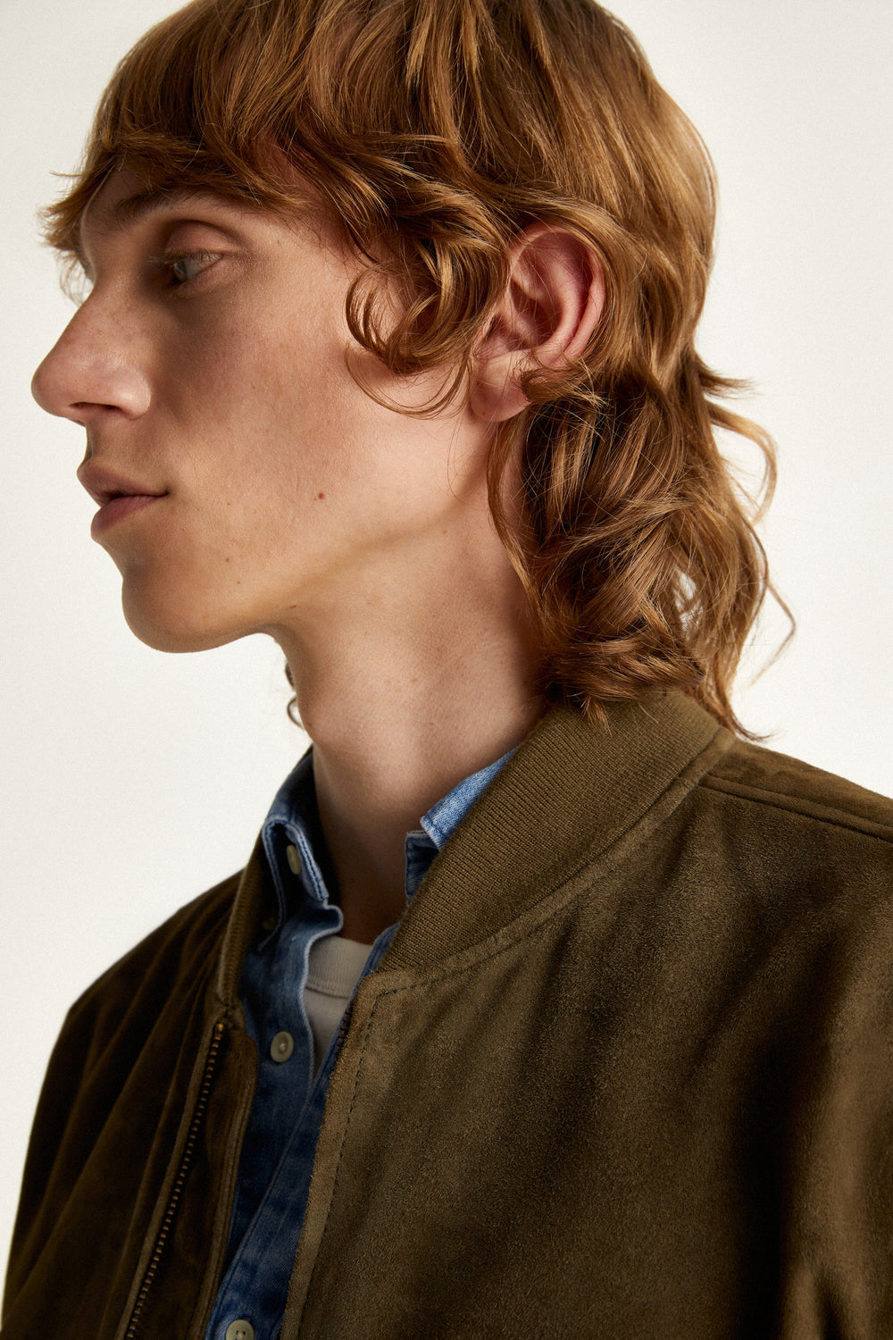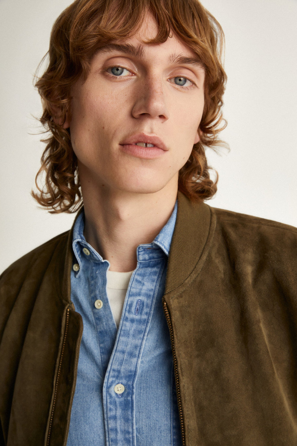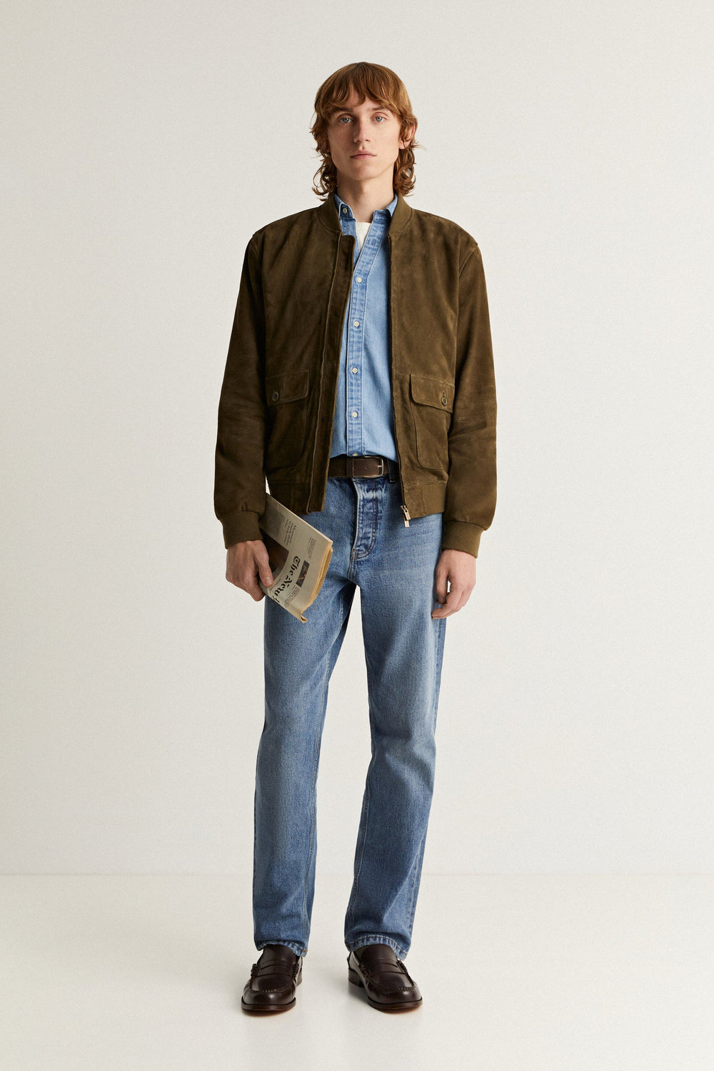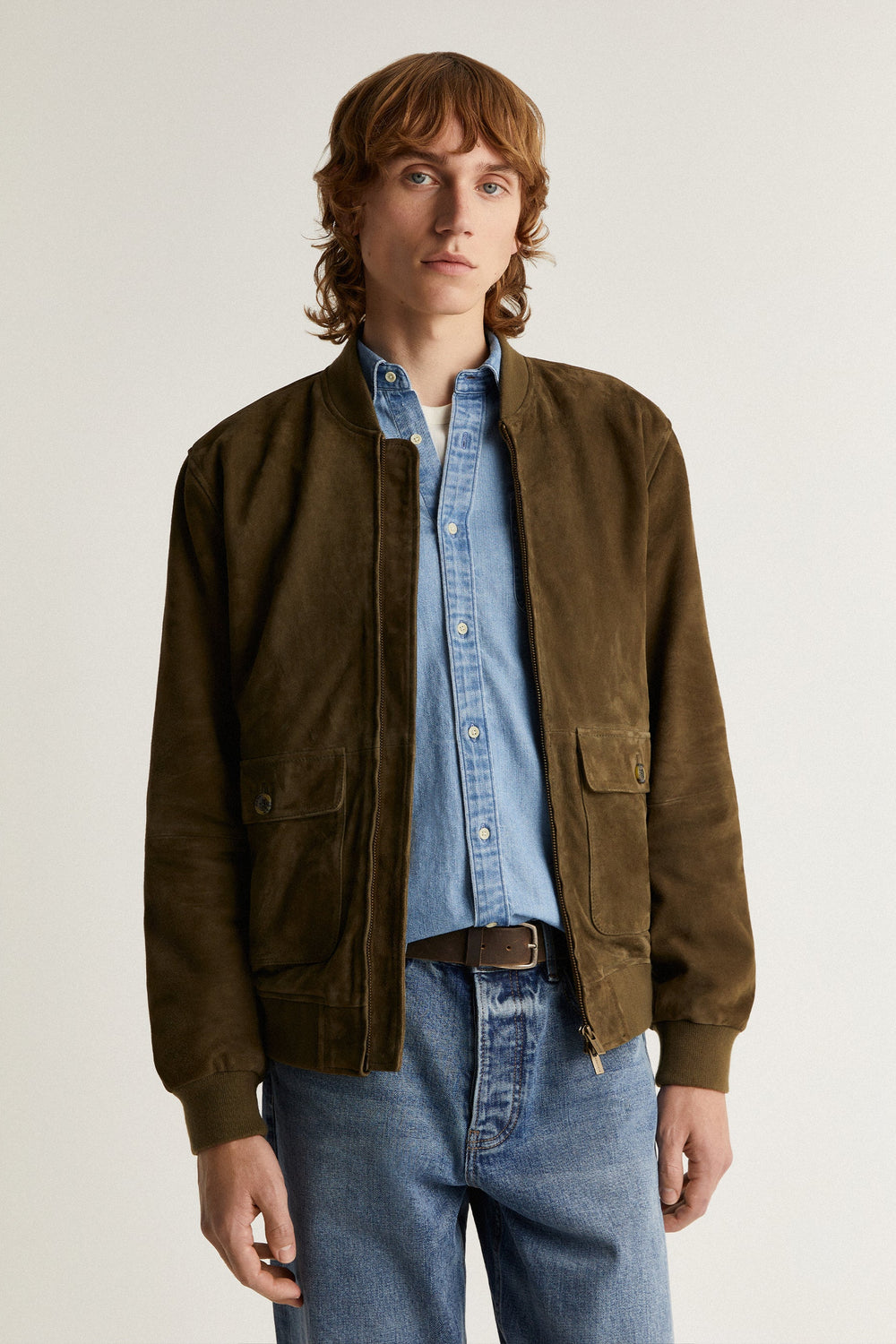 - Patch pockets with lapel and horn-effect button with military buttonhole