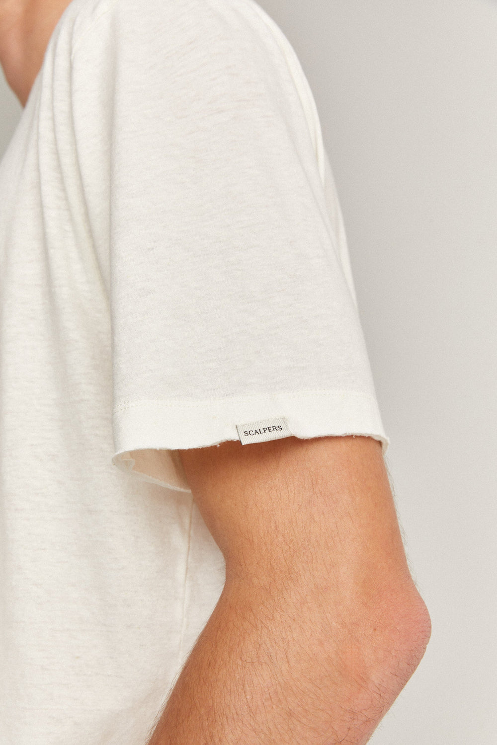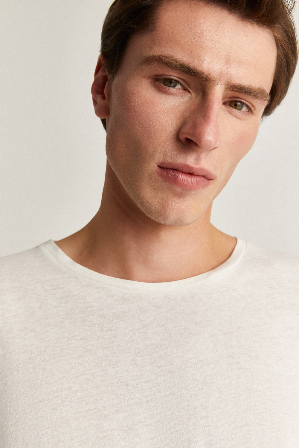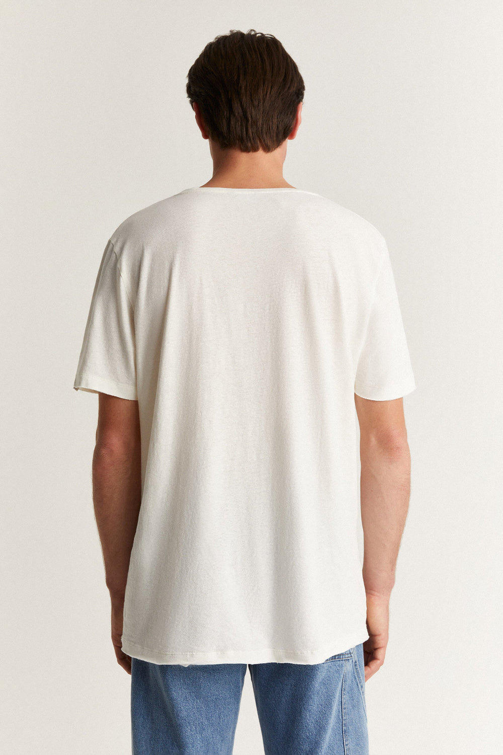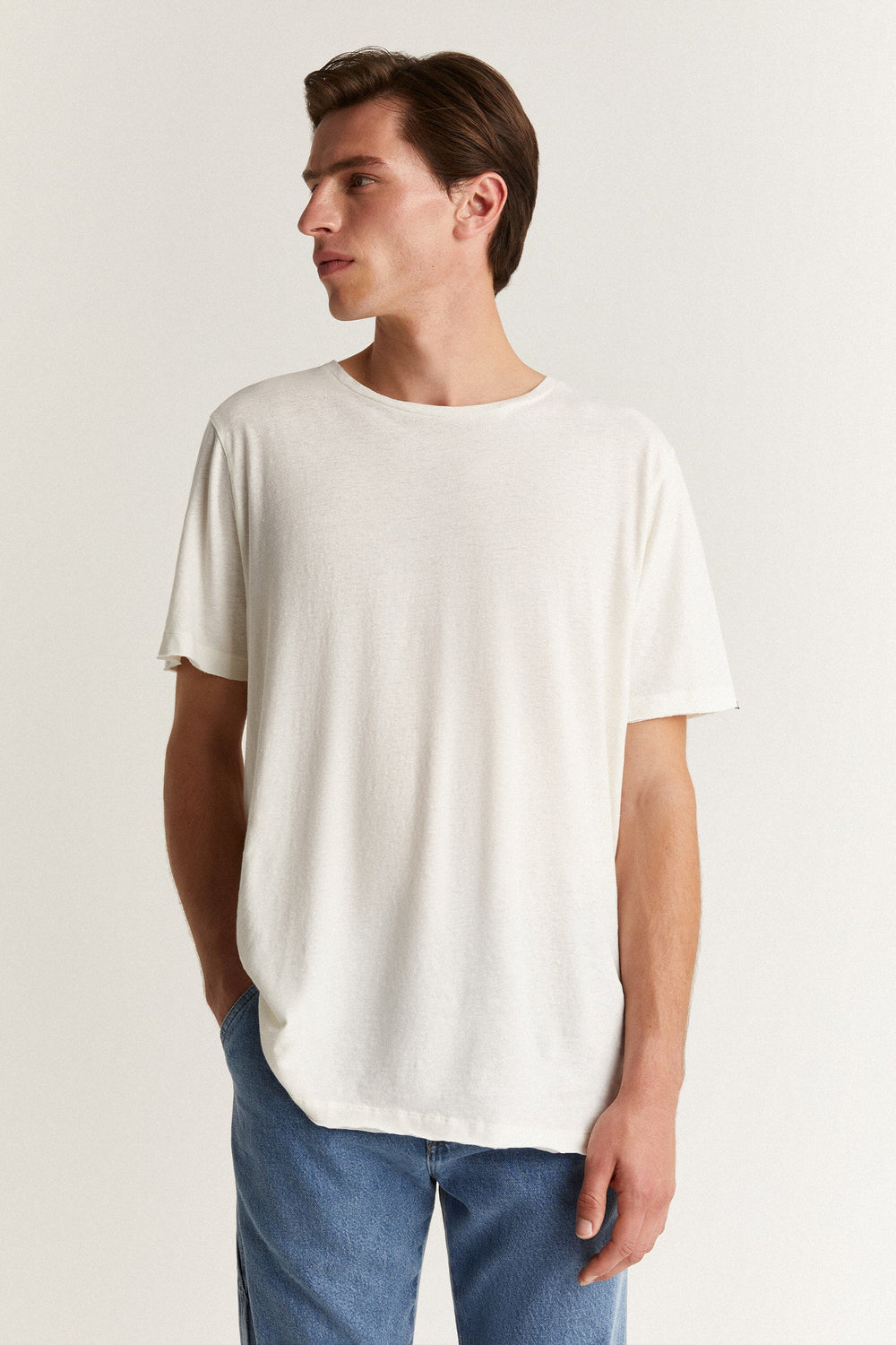 Plain-coloured linen T-shirt.