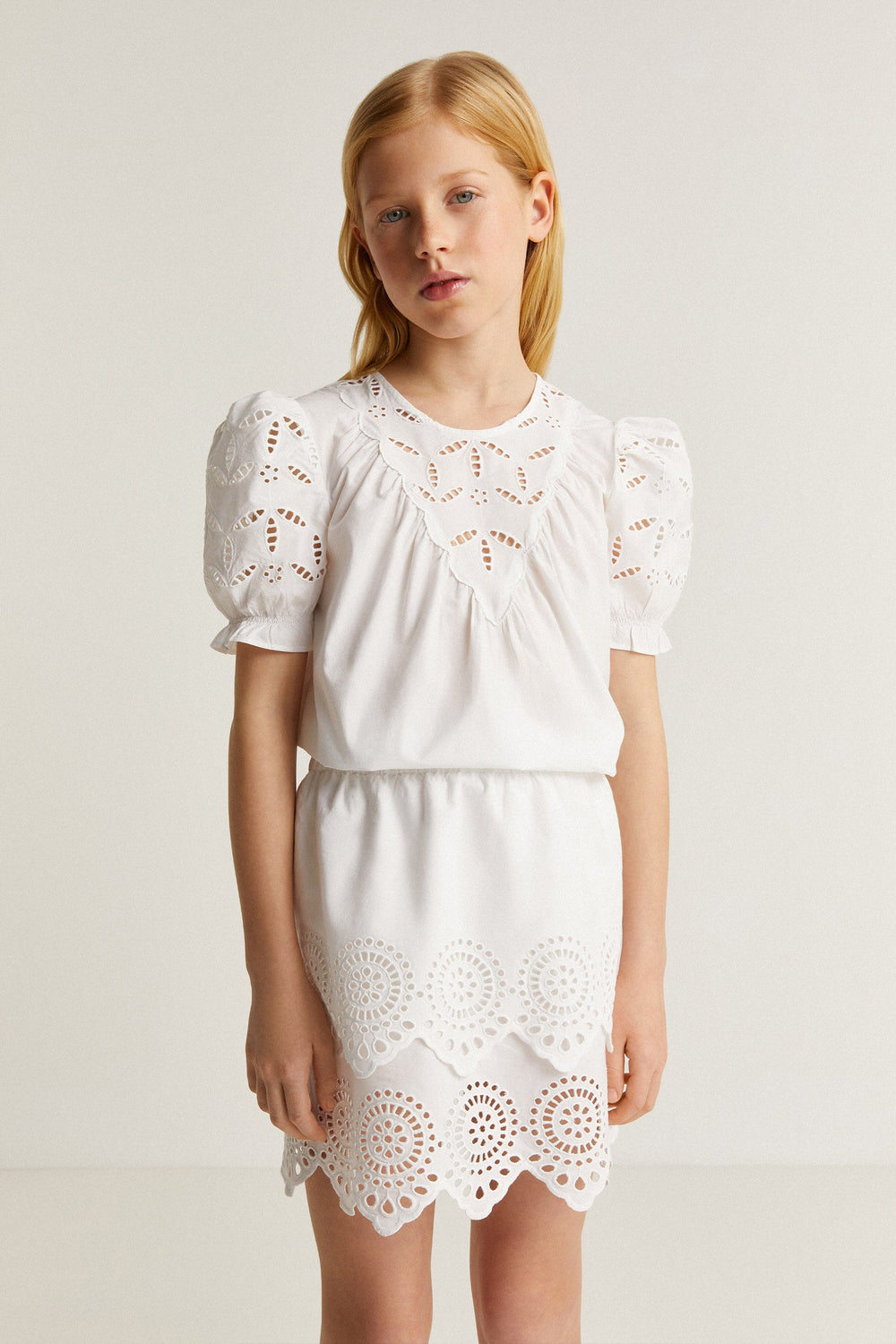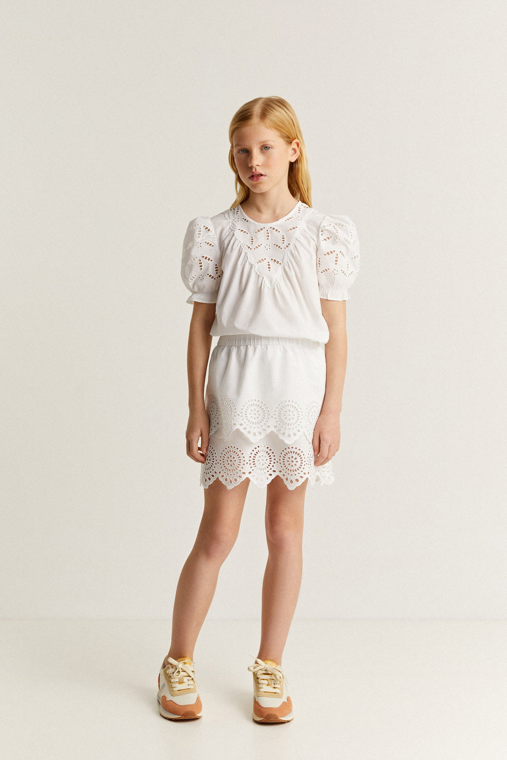 Skirt with broderie anglaise details.