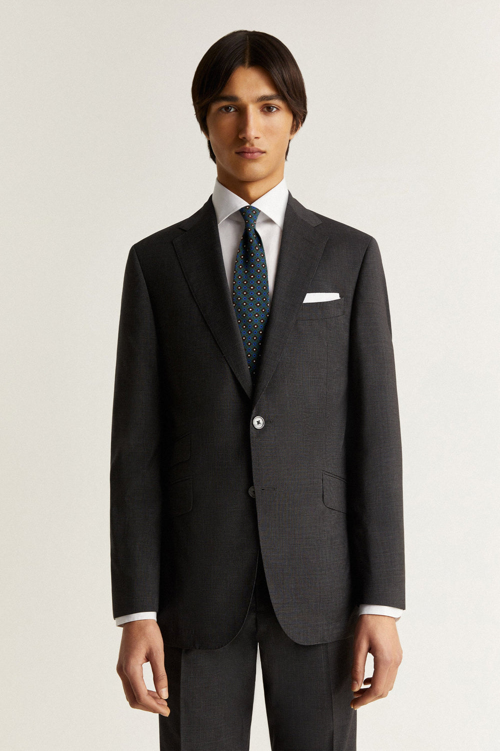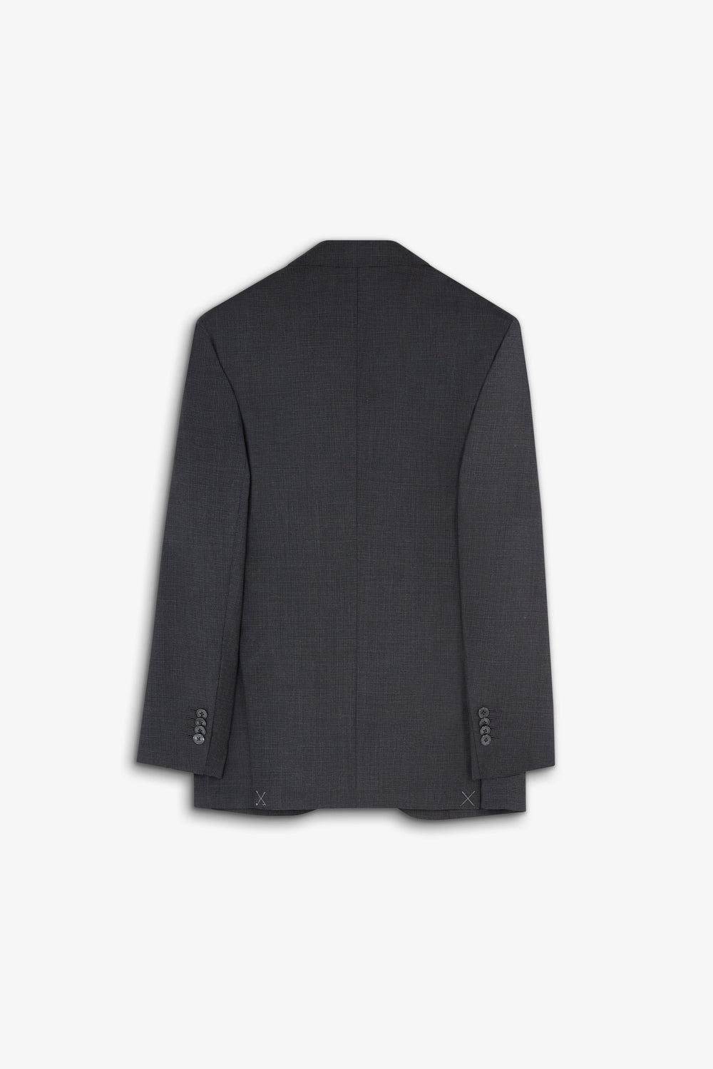 - Unstructured blazer with notched lapel collar and button fastening. Long sleeves with working buttoned cuffs. Flap and ticket pockets