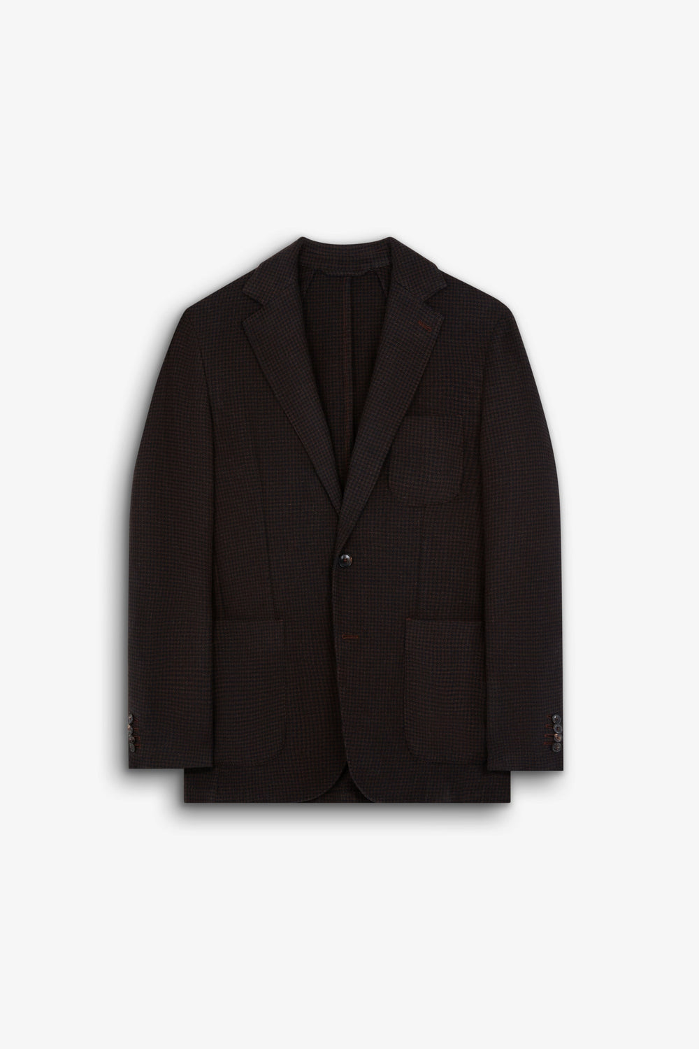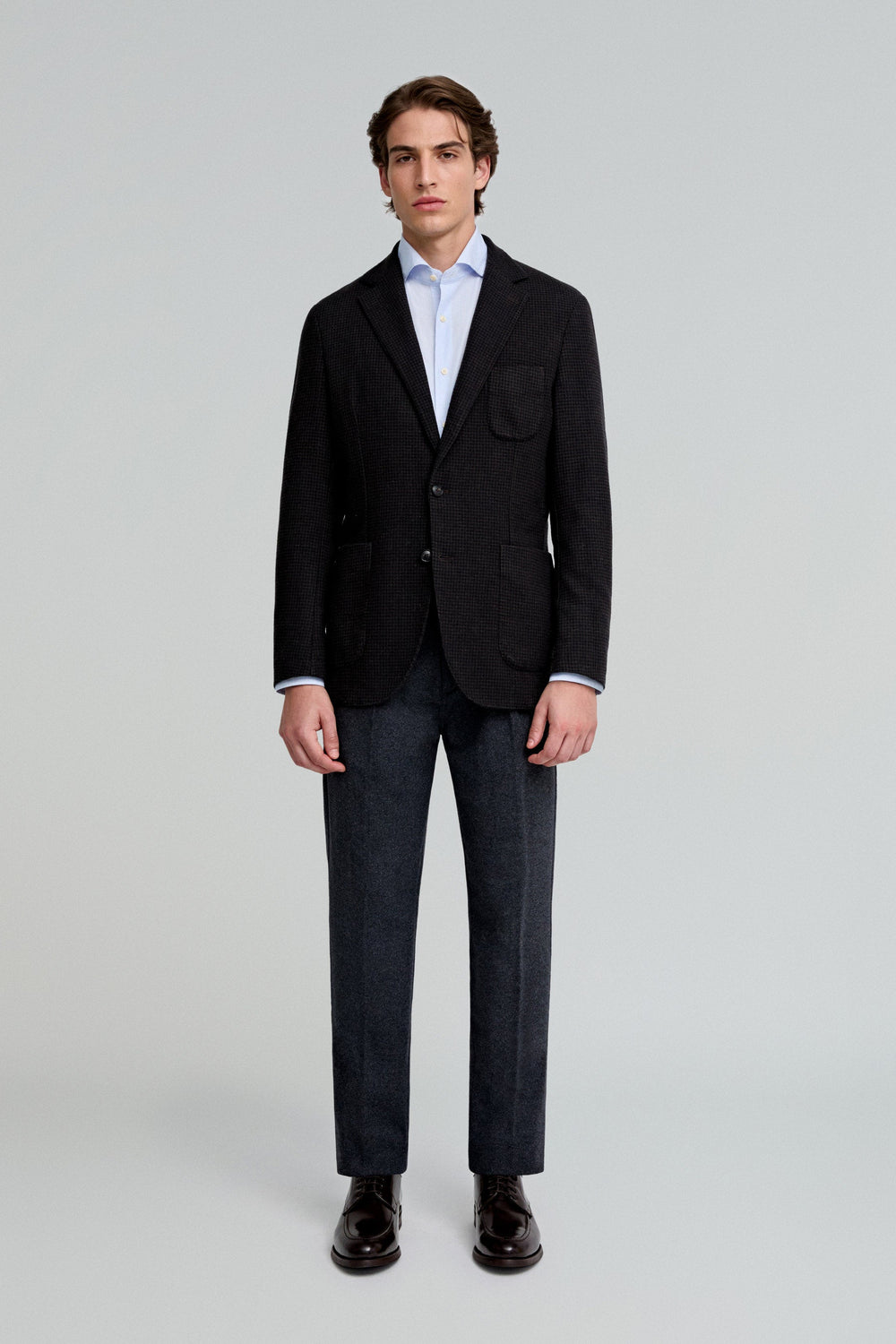 Mini check blazer made of a wool blend. Regular fit, notched lapel collar and button fastening. Long sleeves with buttoned cuffs and patch pockets.
