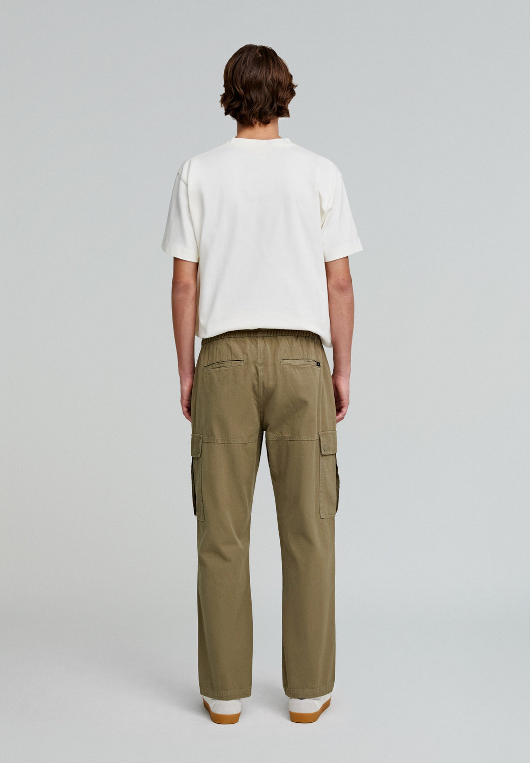 Cargo trousers made of 100% BCI cotton. Regular fit, elastic waist with drawstring. Side pockets and leg pocket. Seam detail on the leg.