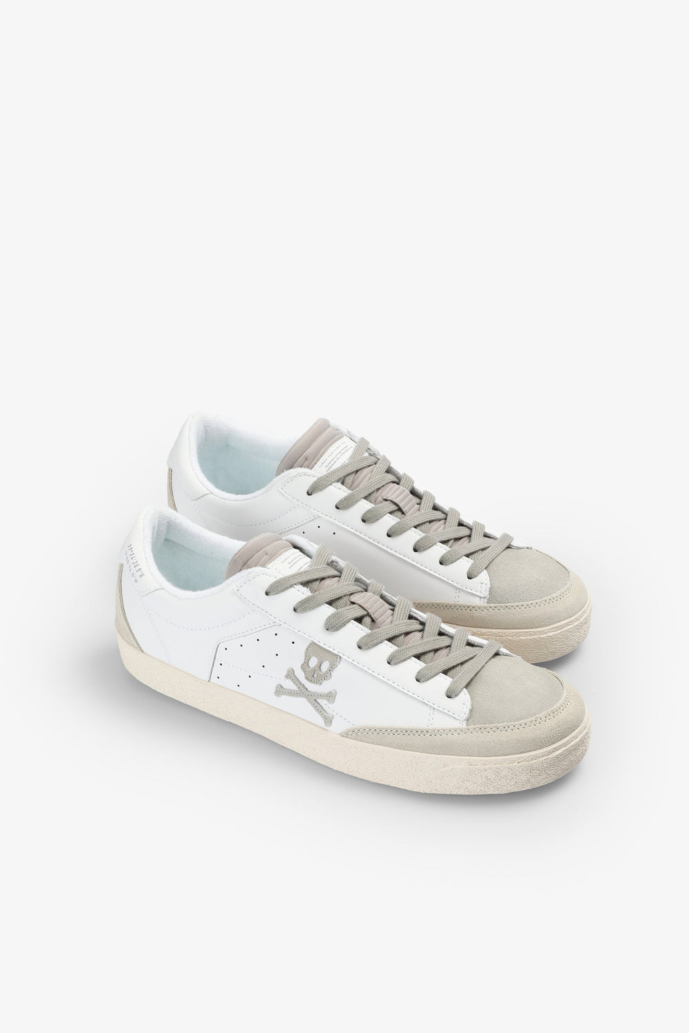 Leather sneakers. Matching lace-up fastening, rubber sole and raised side skull detail. Detail on the toe and contrast heel.