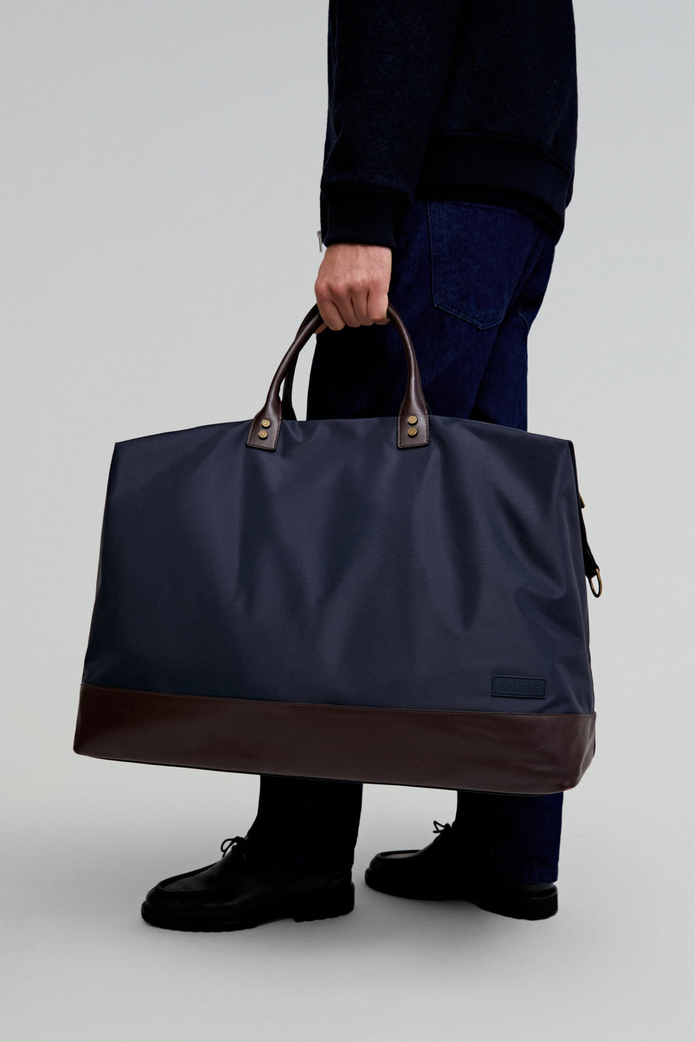 TRAVEL BAG WITH LEATHER DETAIL