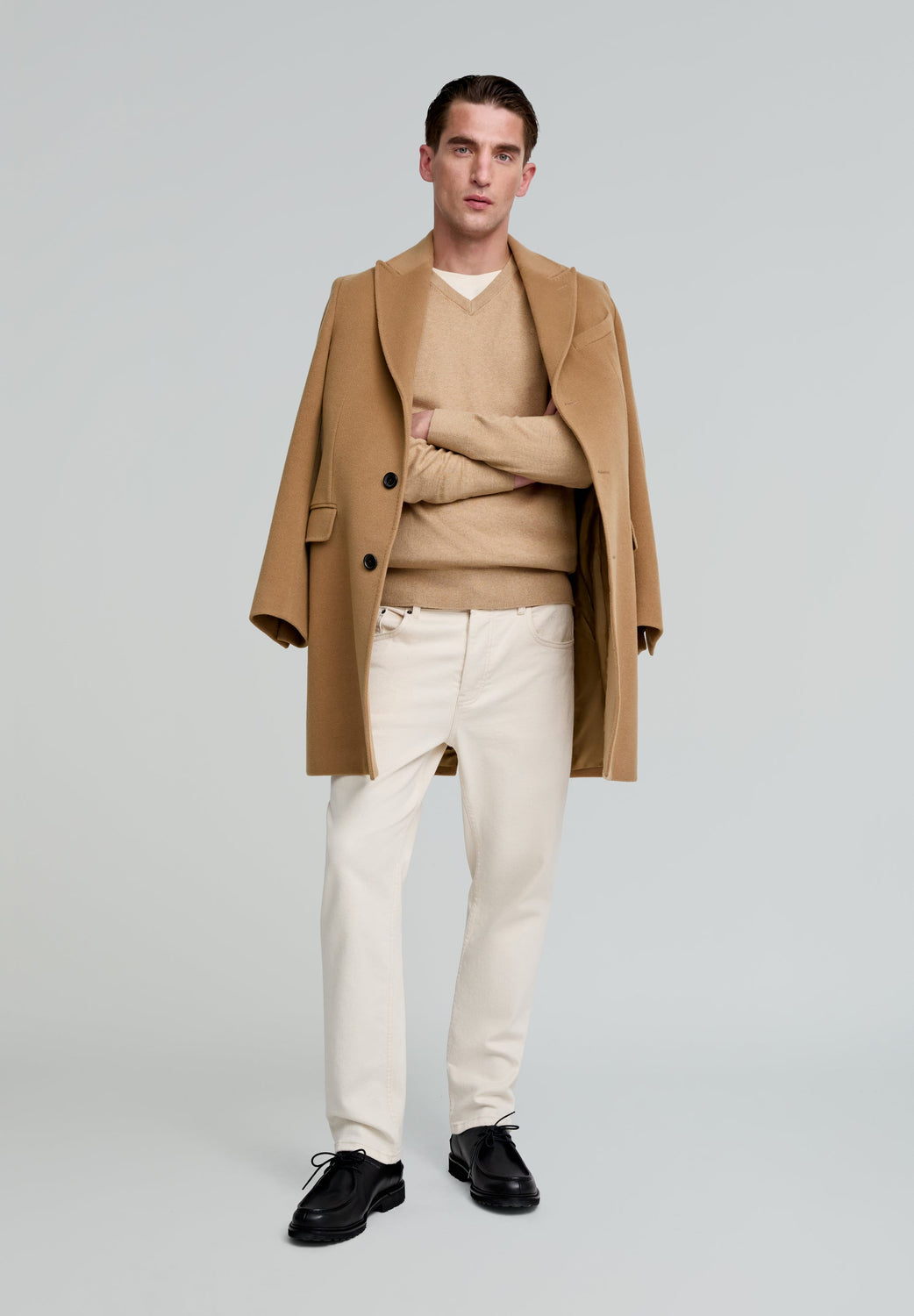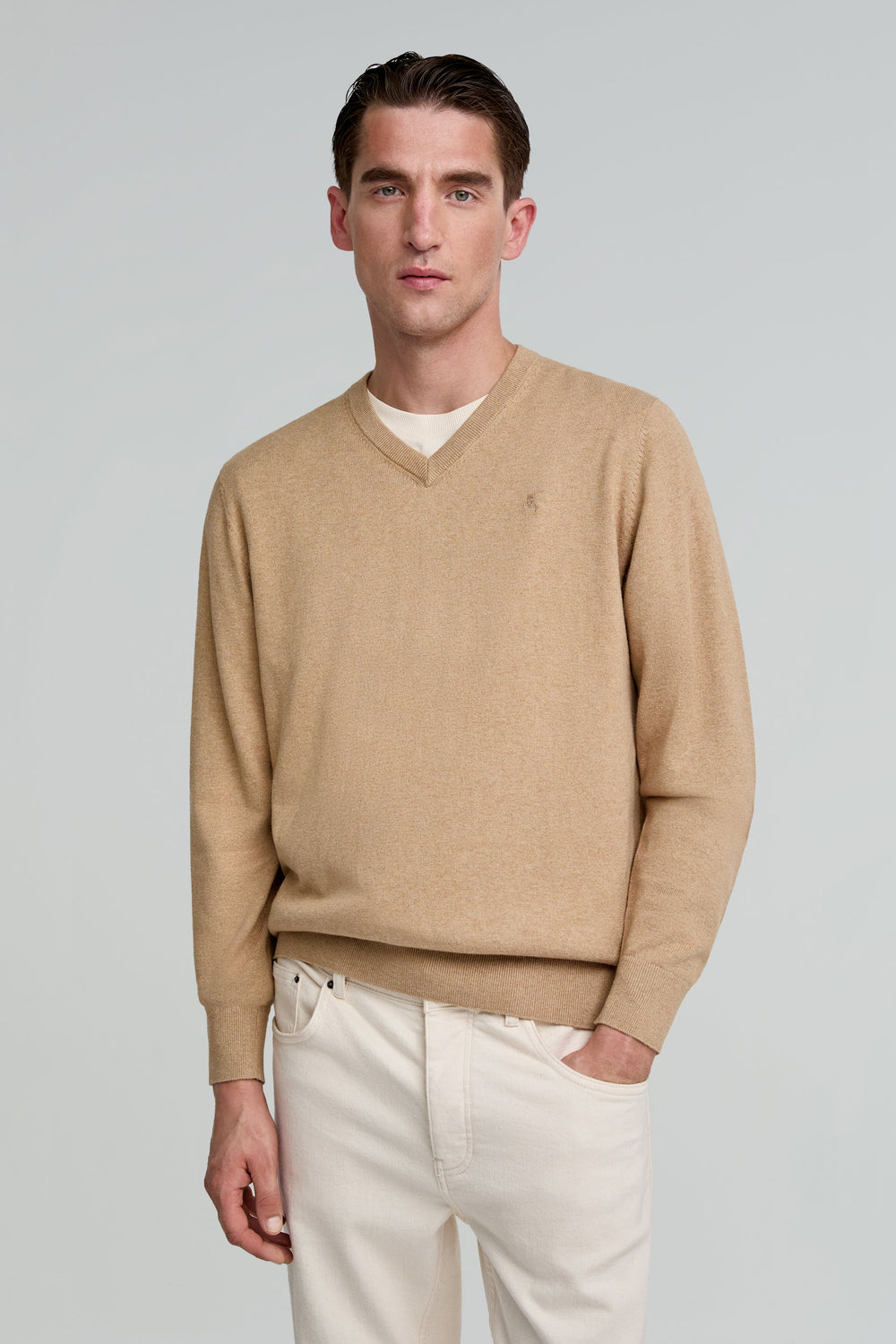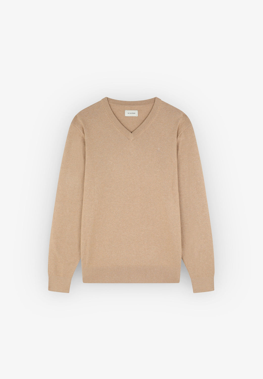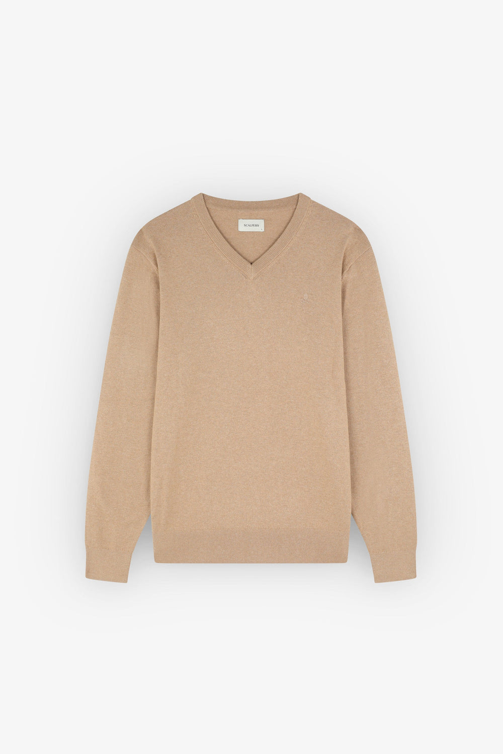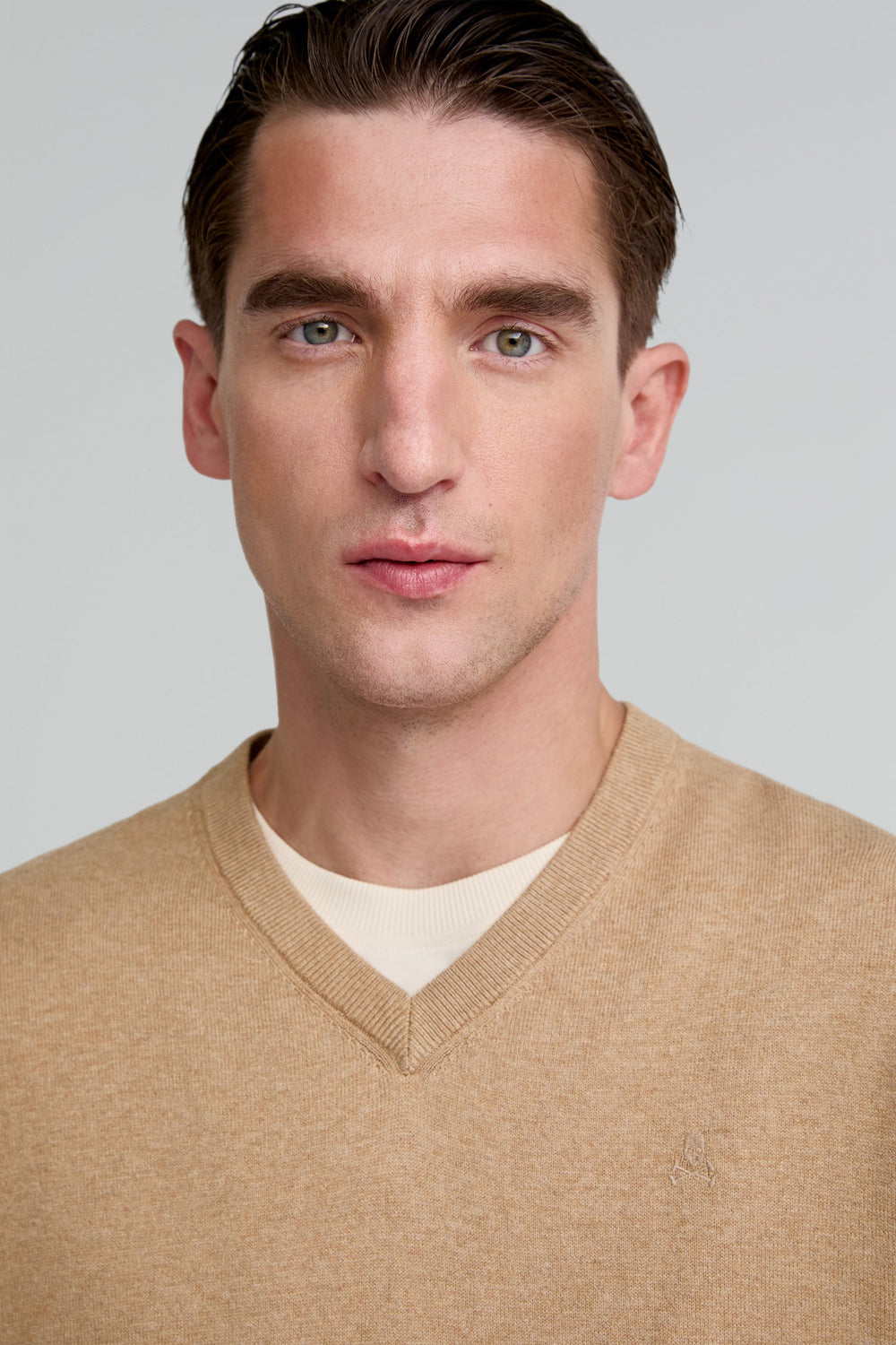 Sweater made of a BCI cotton and cashmere blend. Regular fit, V-neck and long sleeves. Matching embroidered skull.