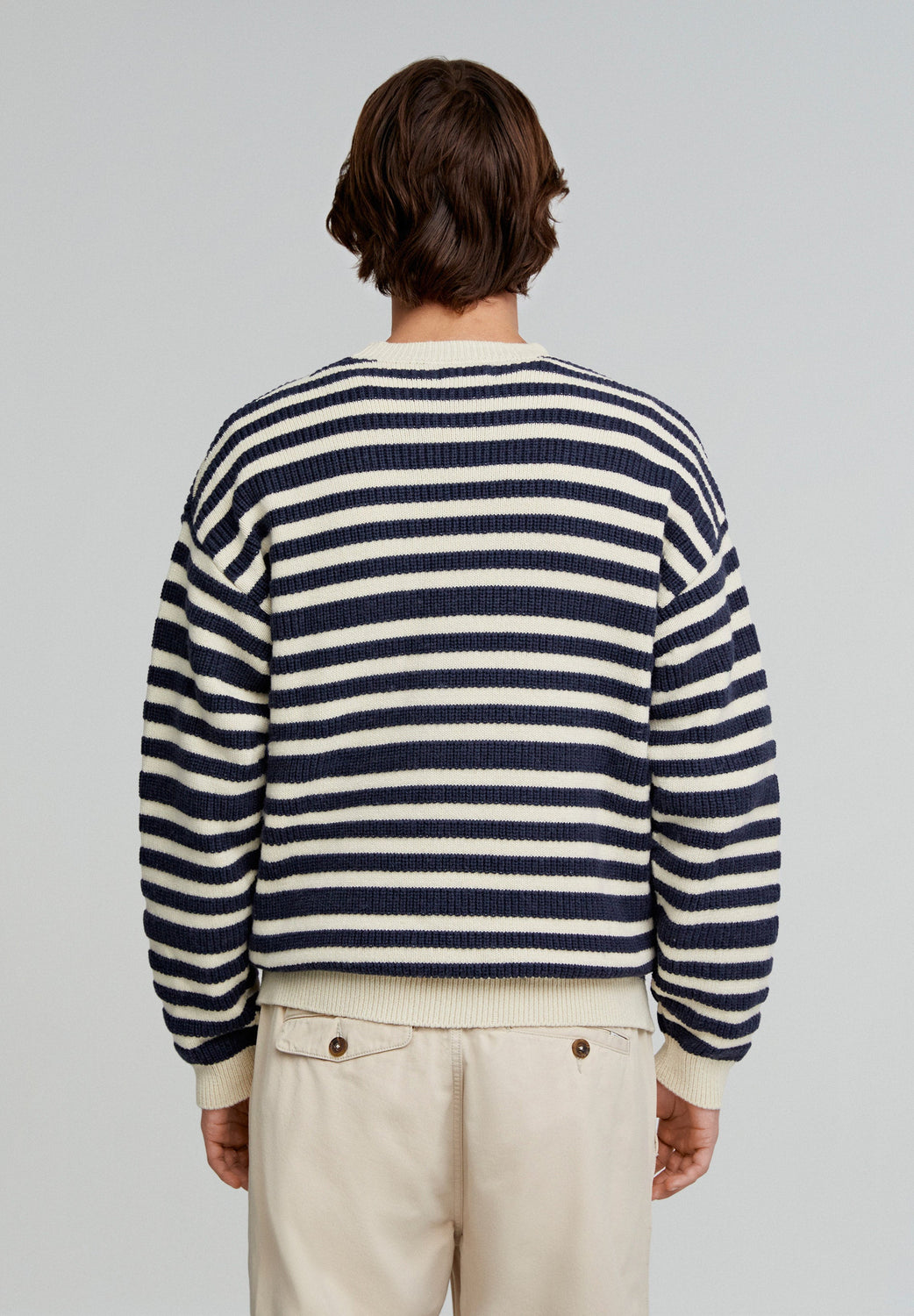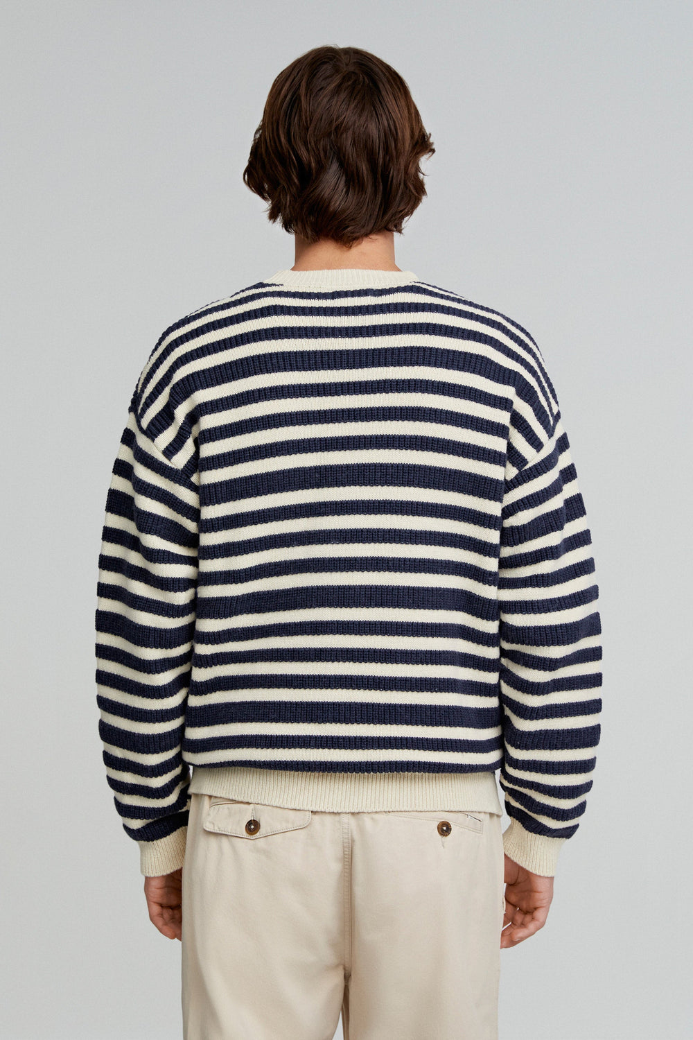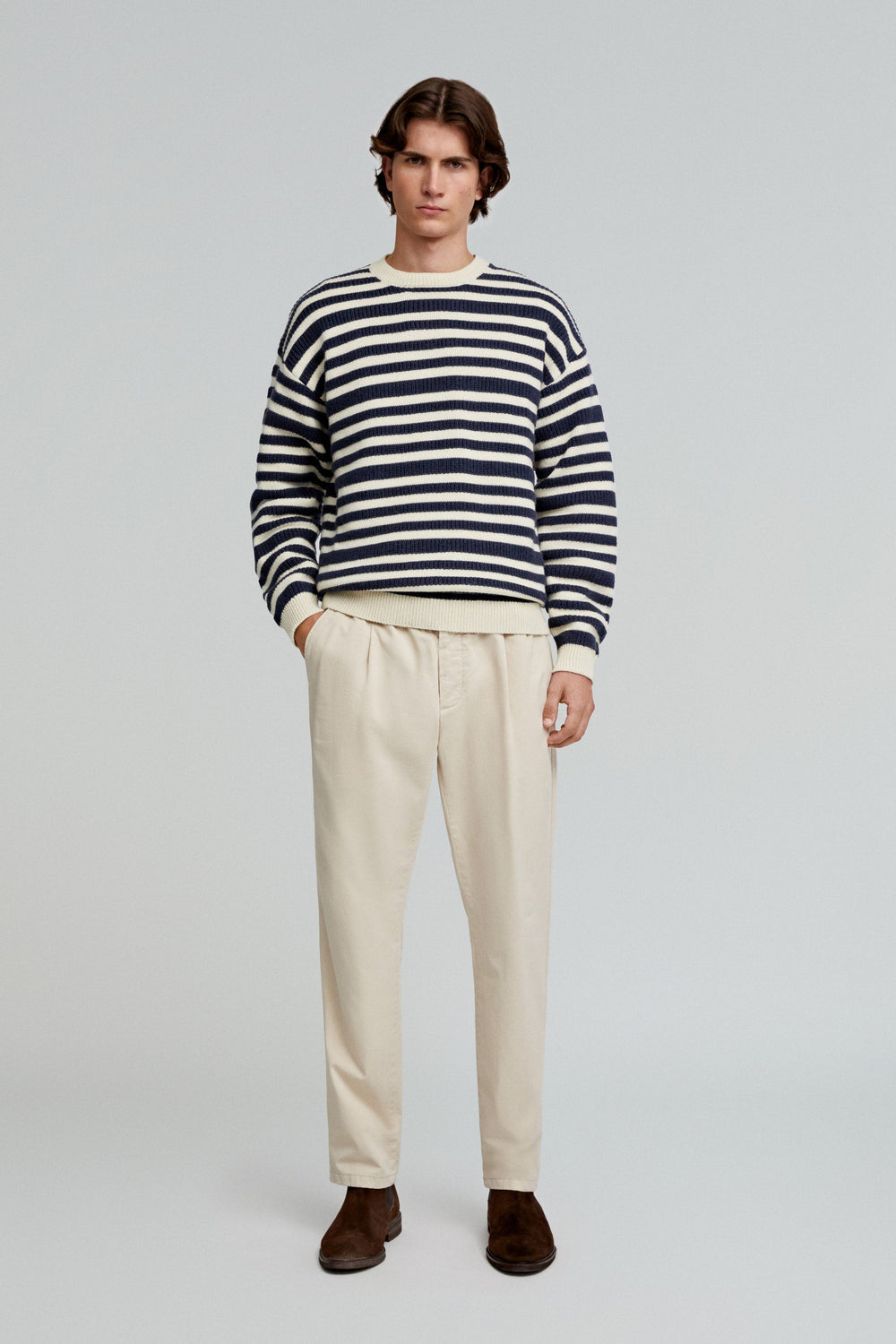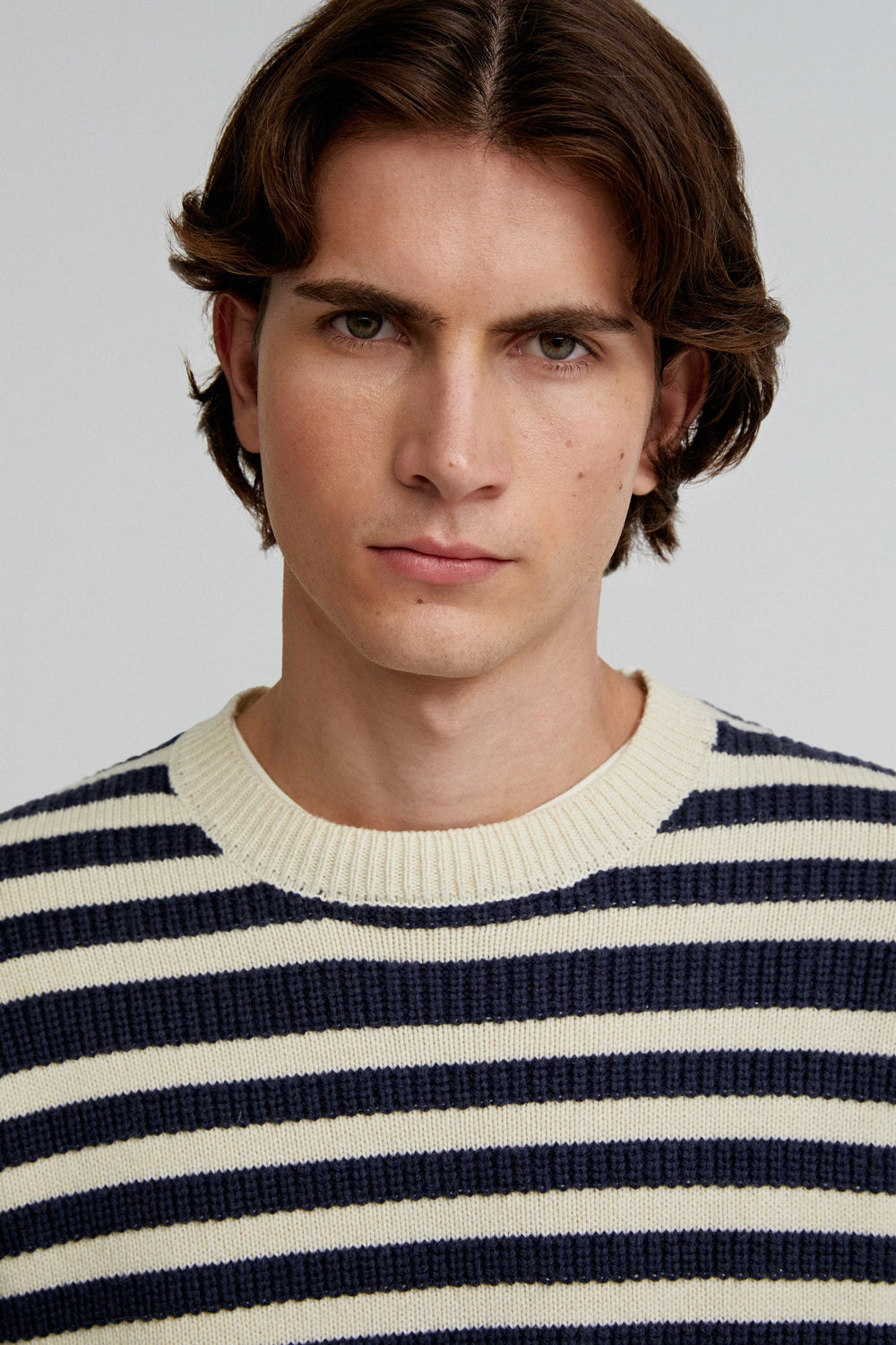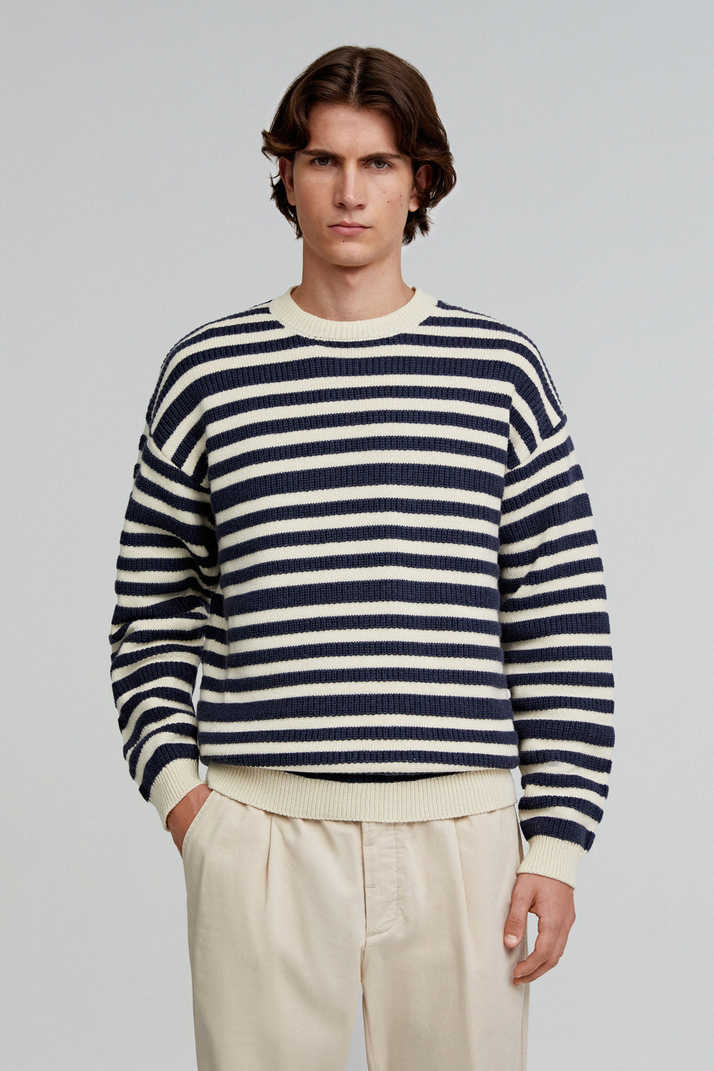 Striped sweater made of cotton and wool. Regular fit, round neck and long sleeves.