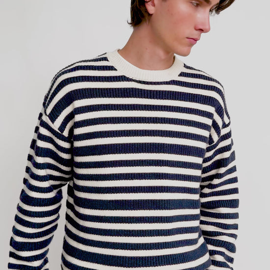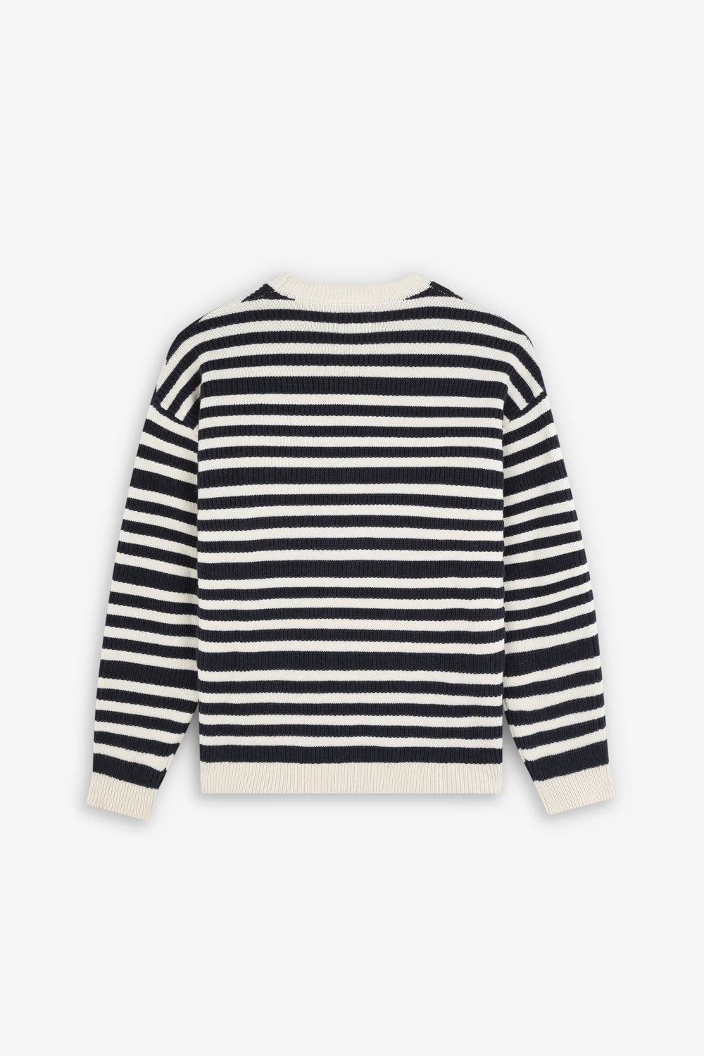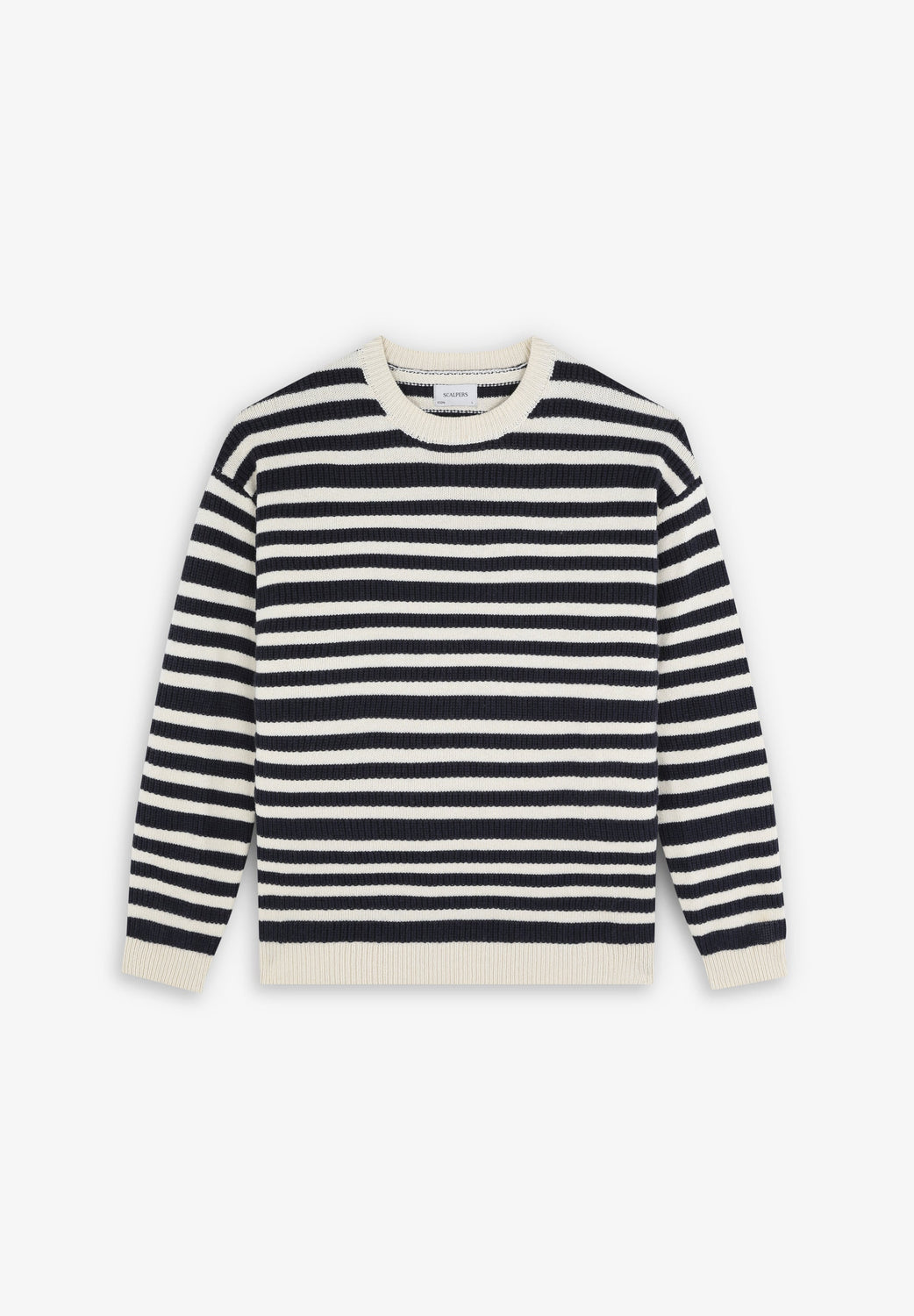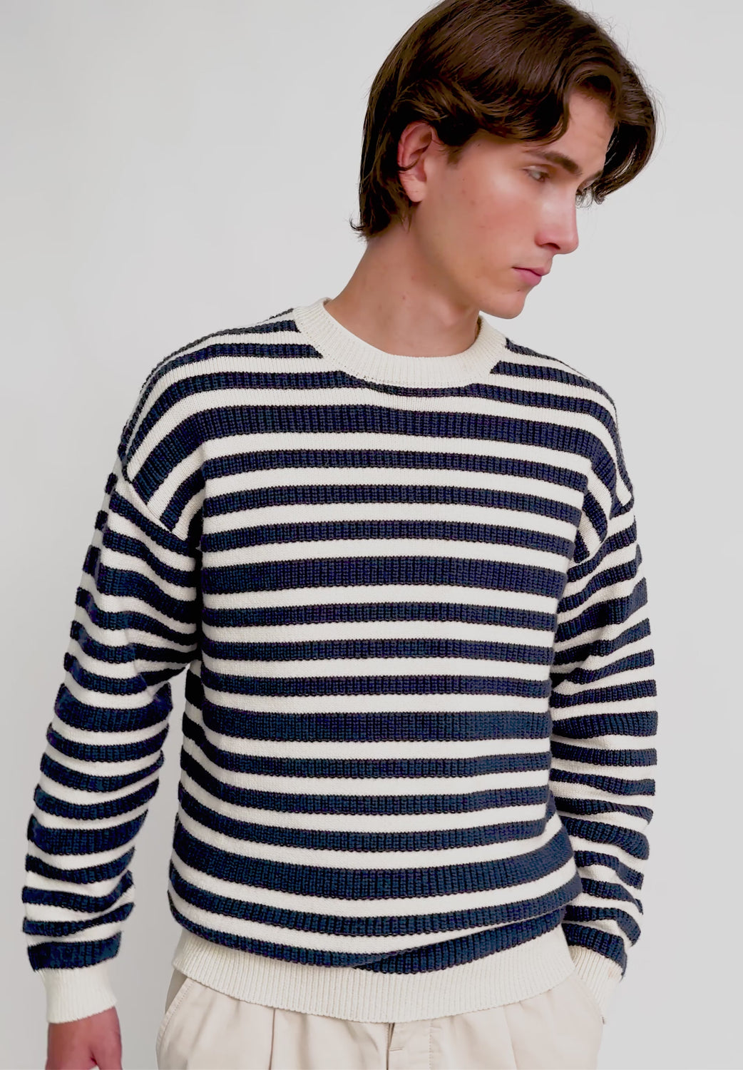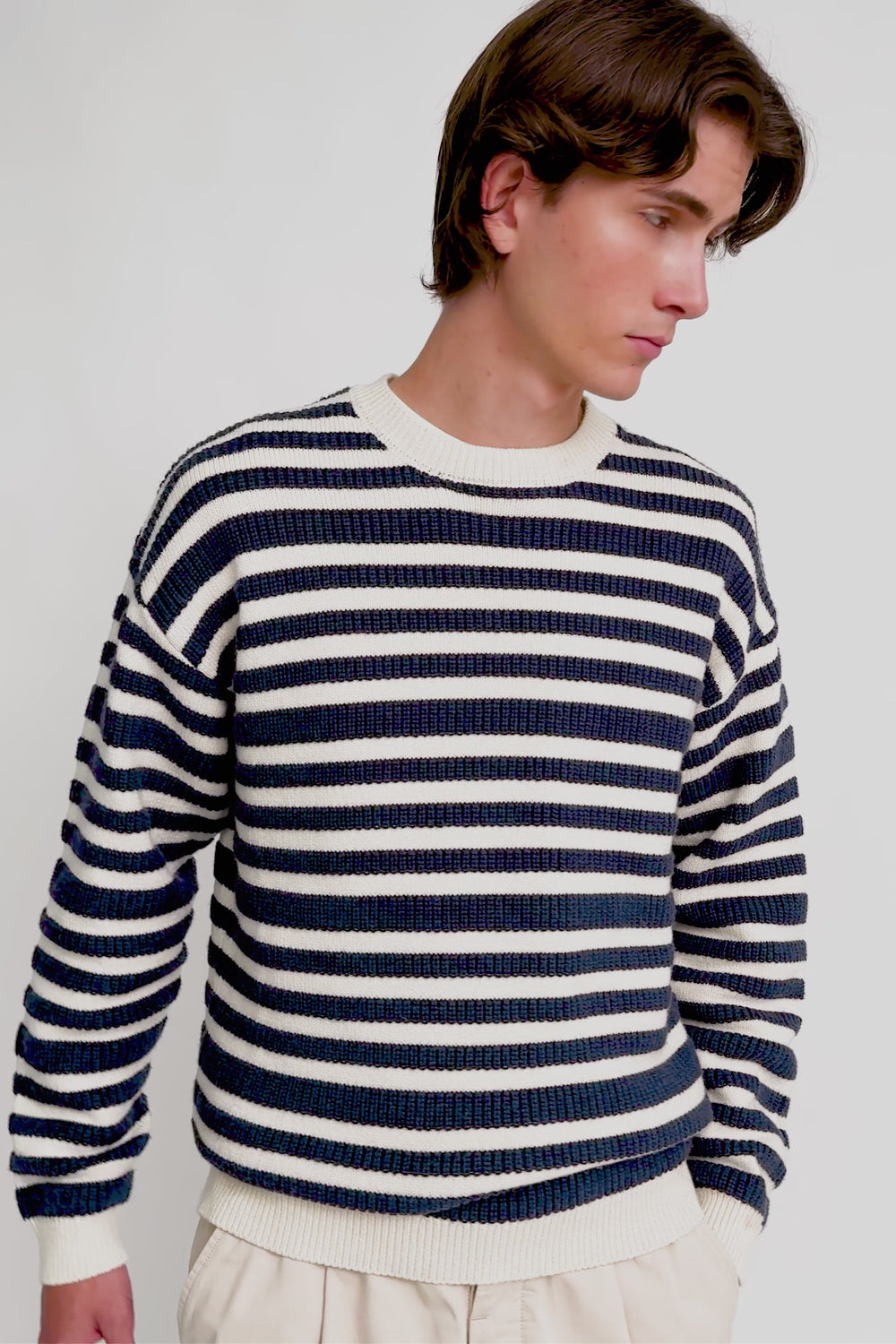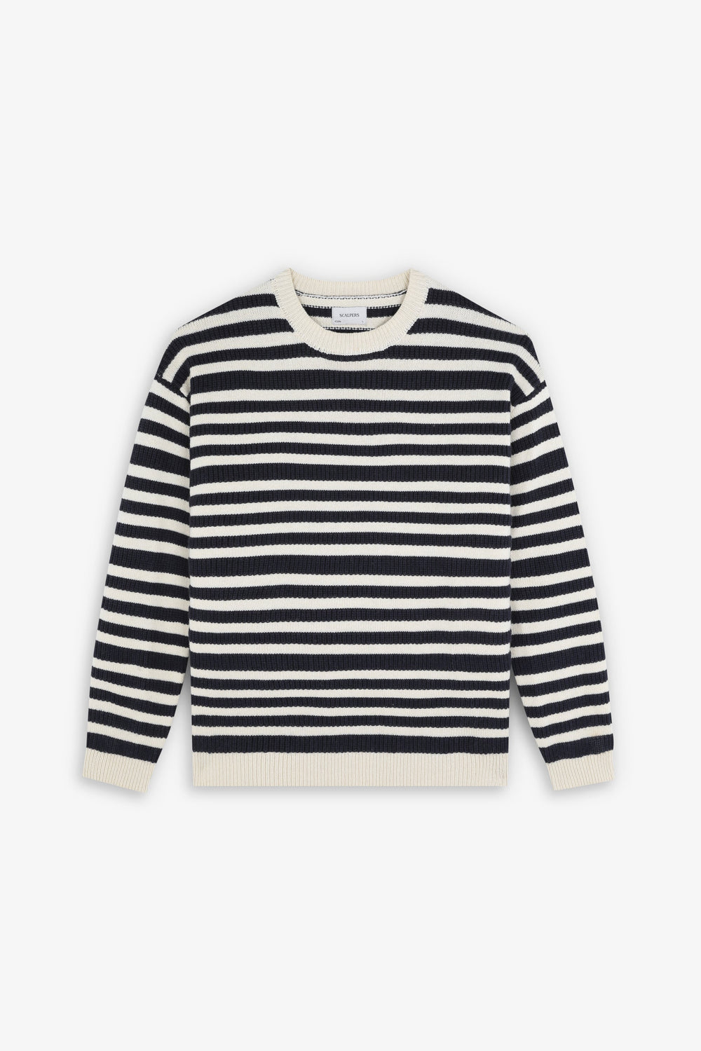 Striped sweater made of cotton and wool. Regular fit, round neck and long sleeves.