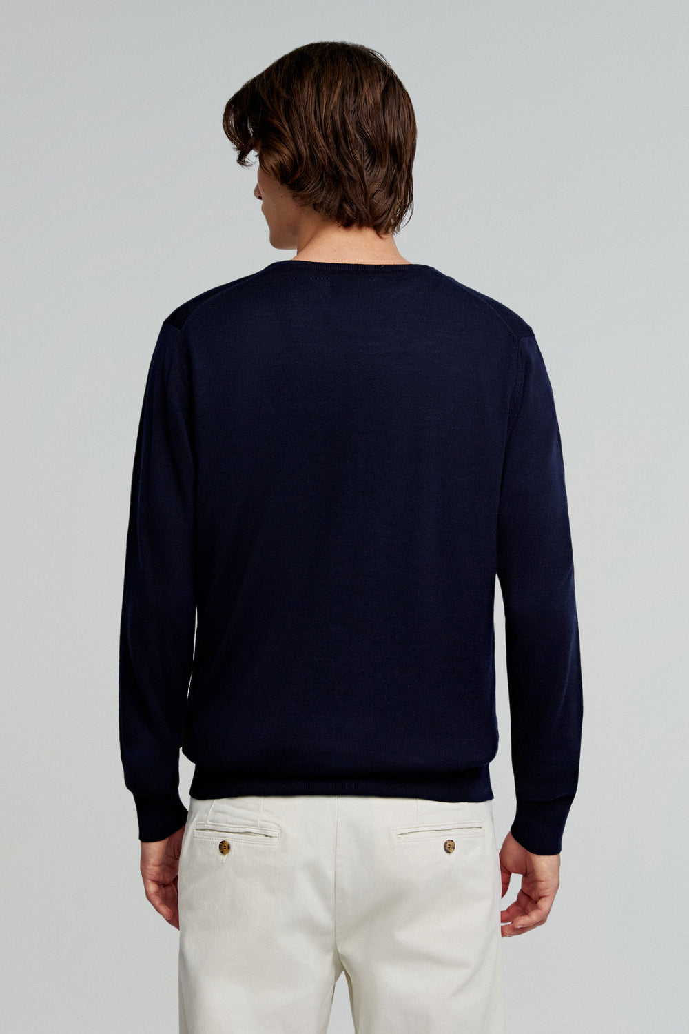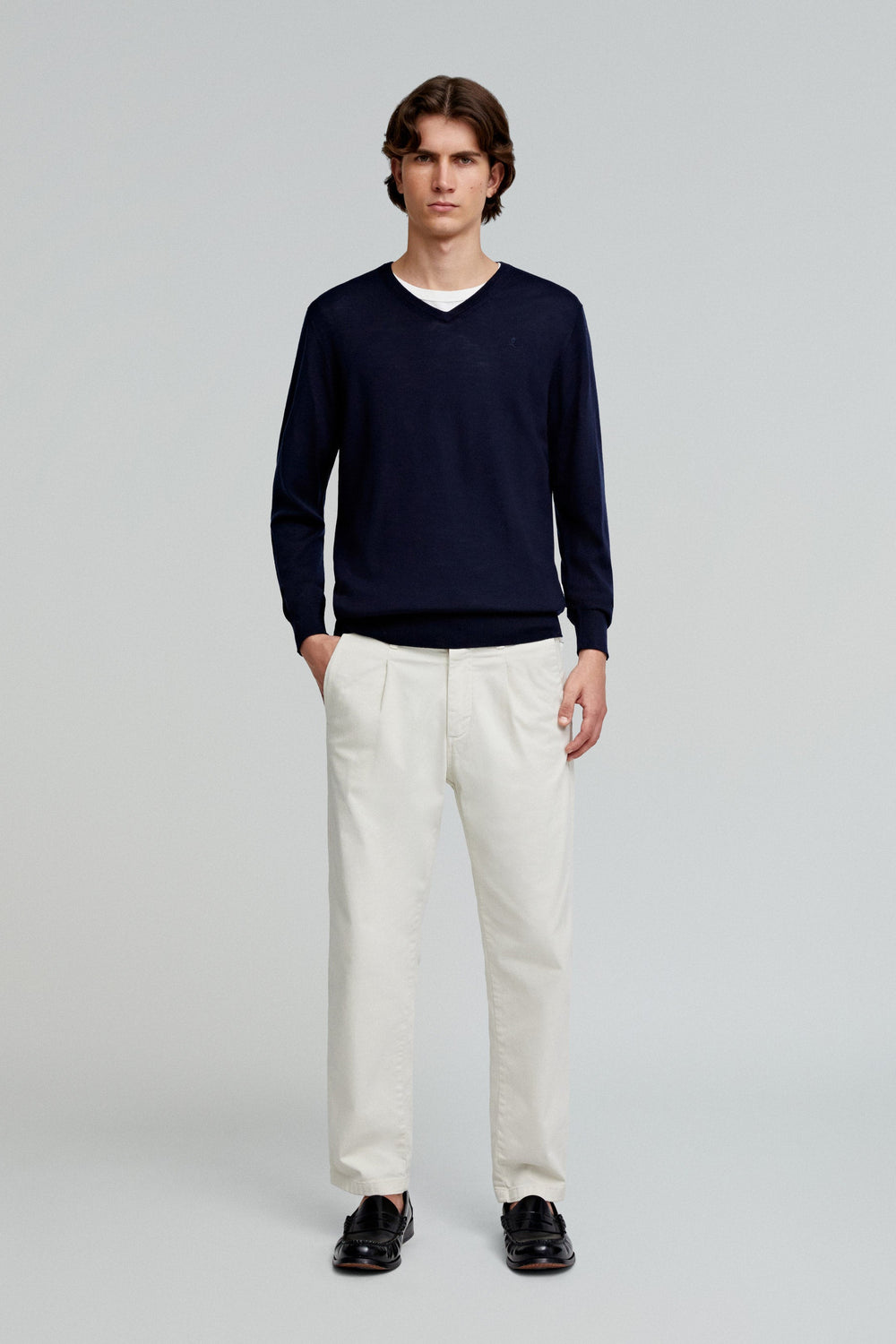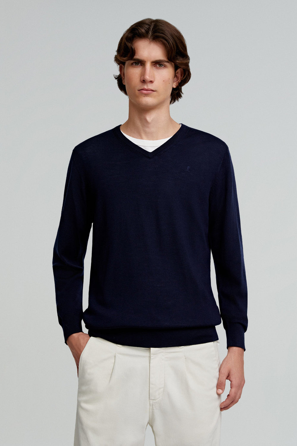 Sweater made of 100% merino wool. Regular fit, V-neck and long sleeves. Matching embroidered skull.