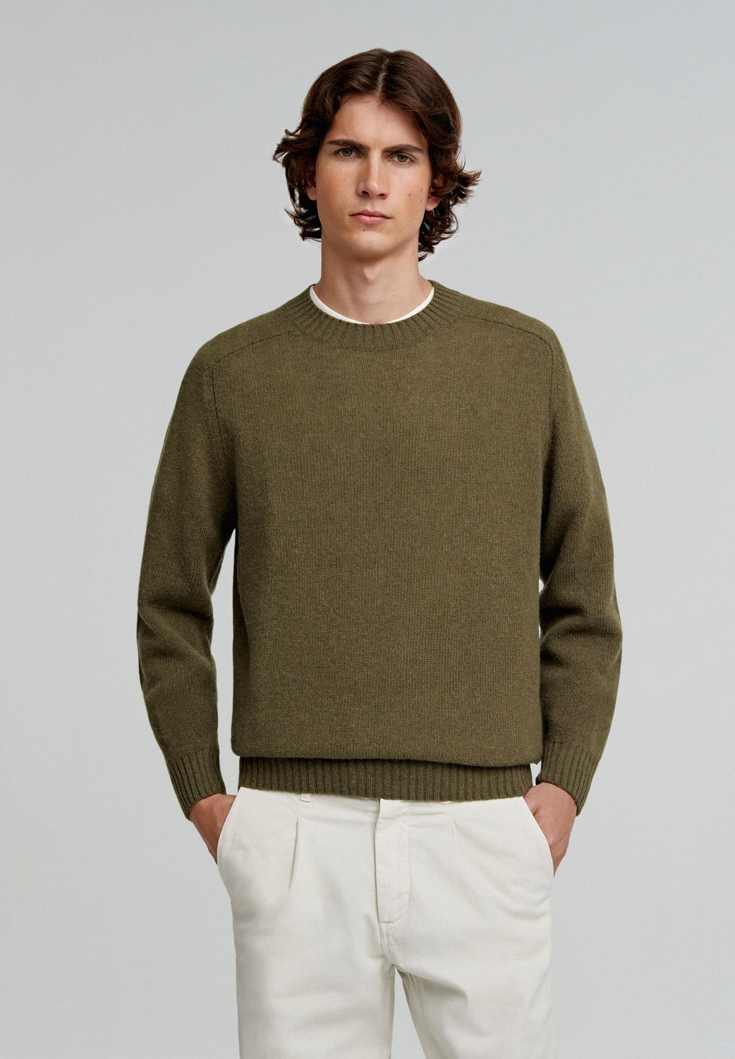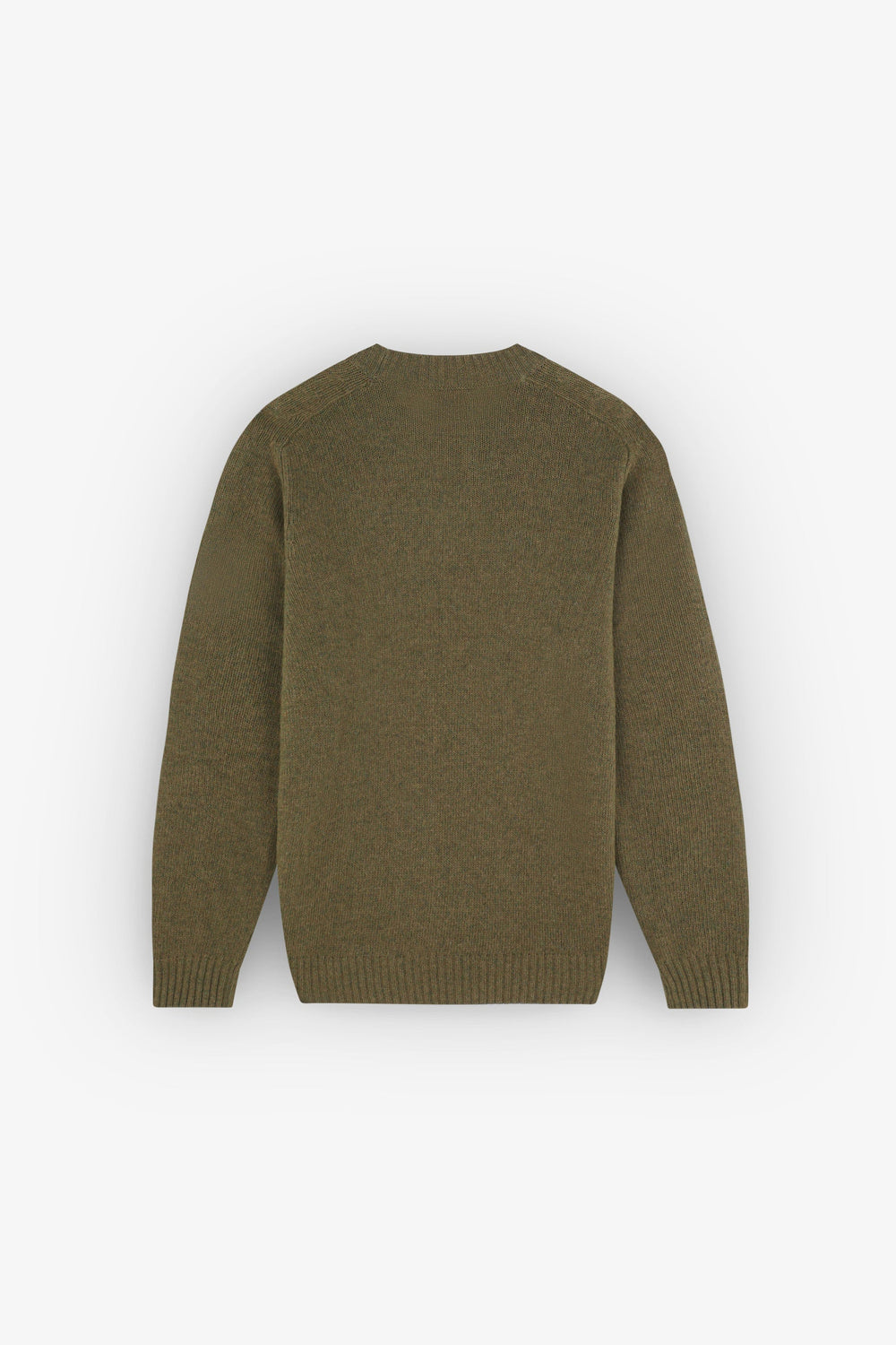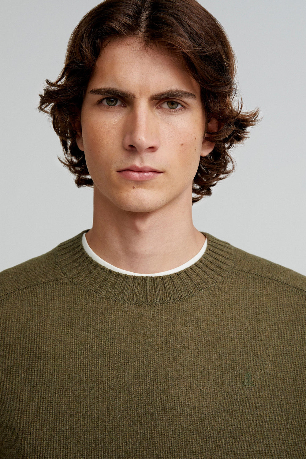 Sweater made of a recycled wool blend. Regular fit, ribbed neck and raglan long sleeves. Matching embroidered skull.
