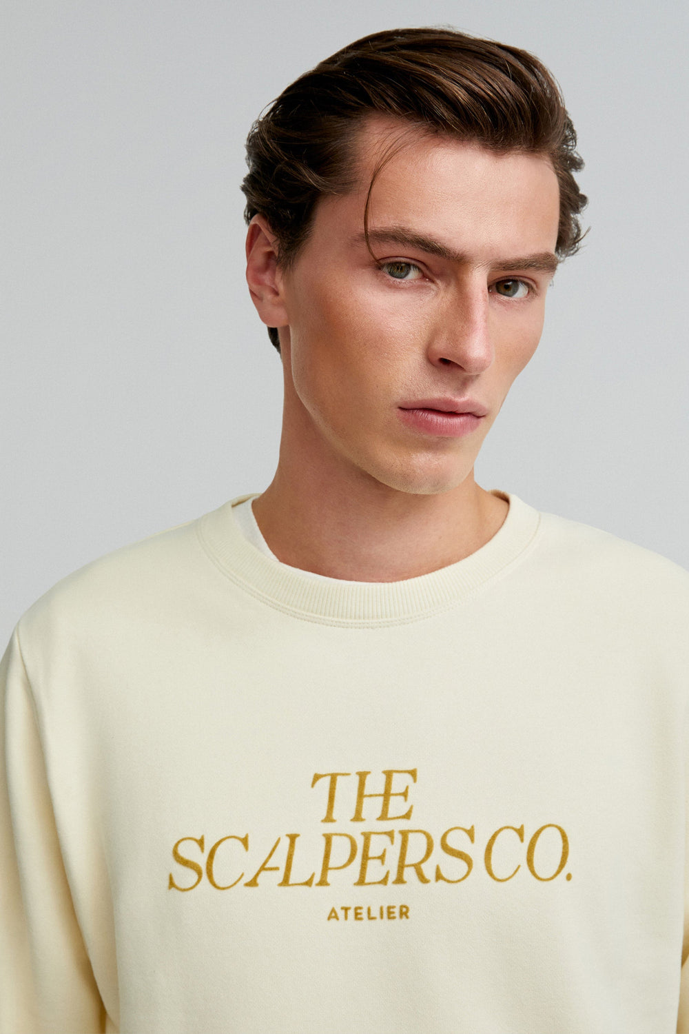 Crew neck sweatshirt with ribbed detail. Made of 100% BCI cotton. Regular fit, long sleeves and contrast logo detail on the chest.