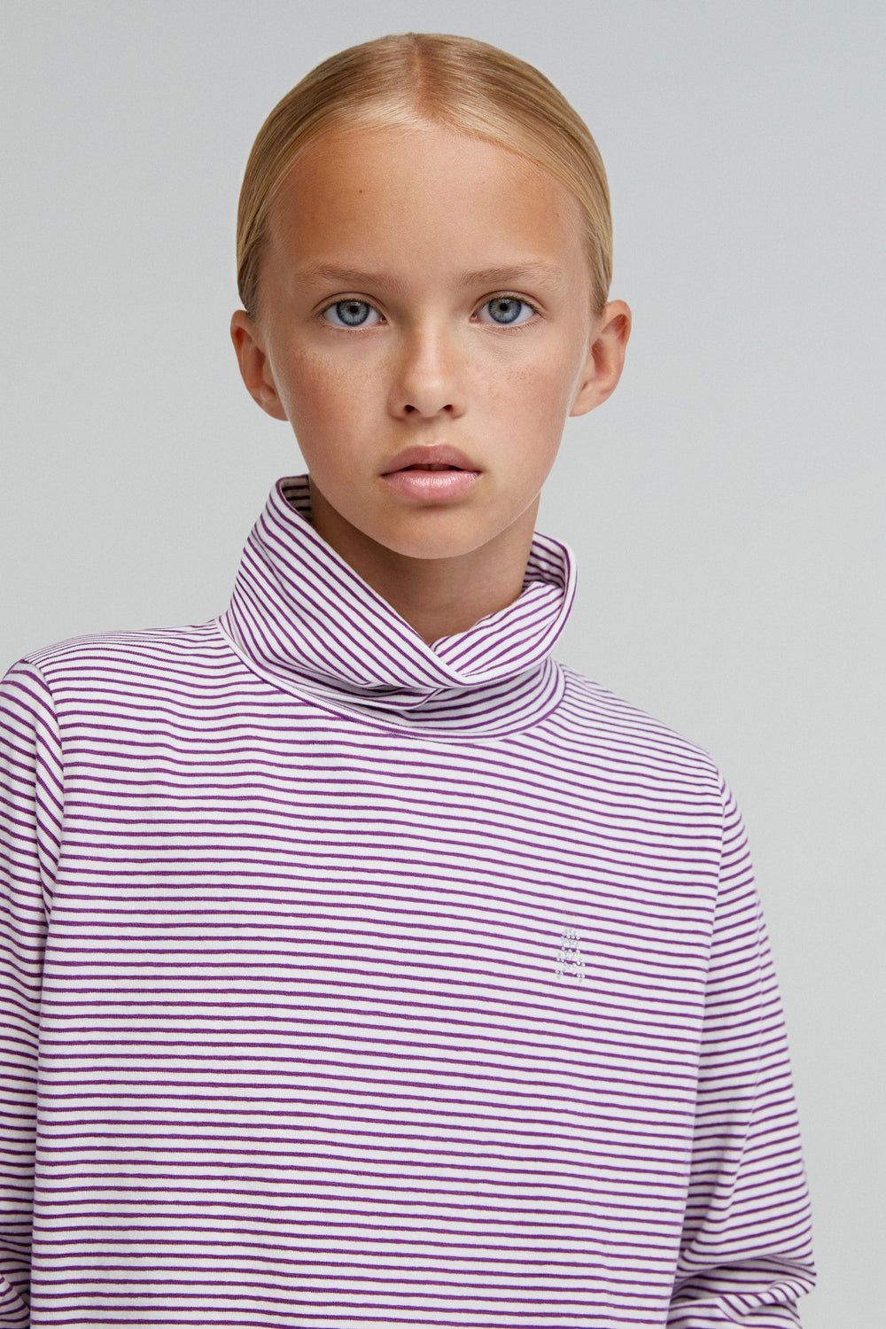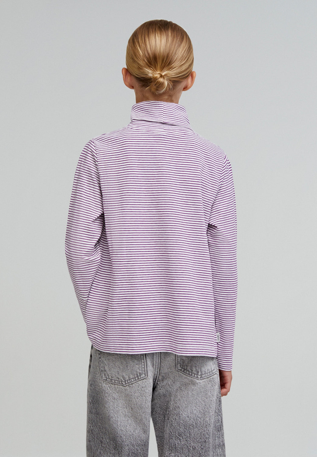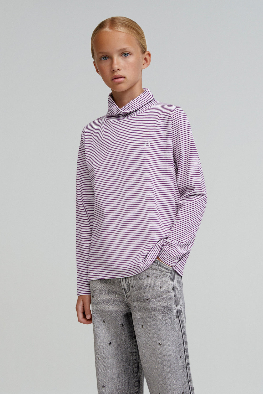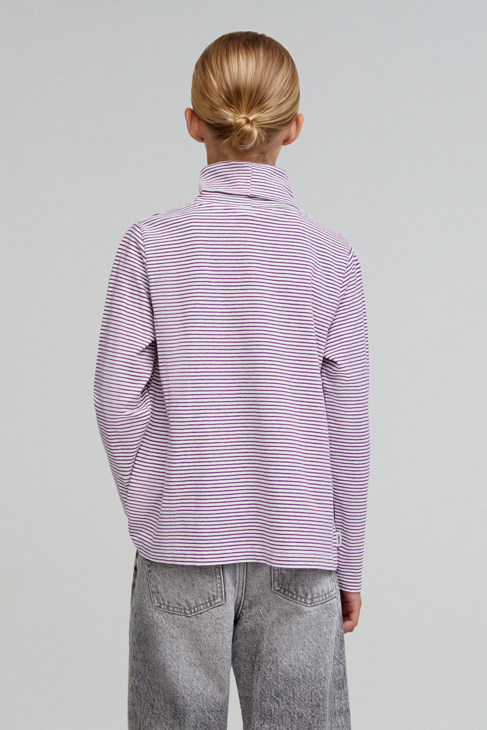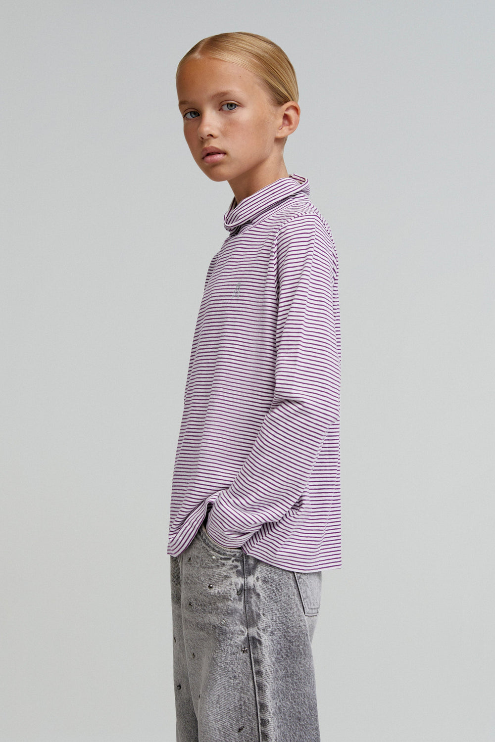 T-shirt with stripe print. High collar. Long sleeves. Slightly oversize design. Made of 100% cotton.