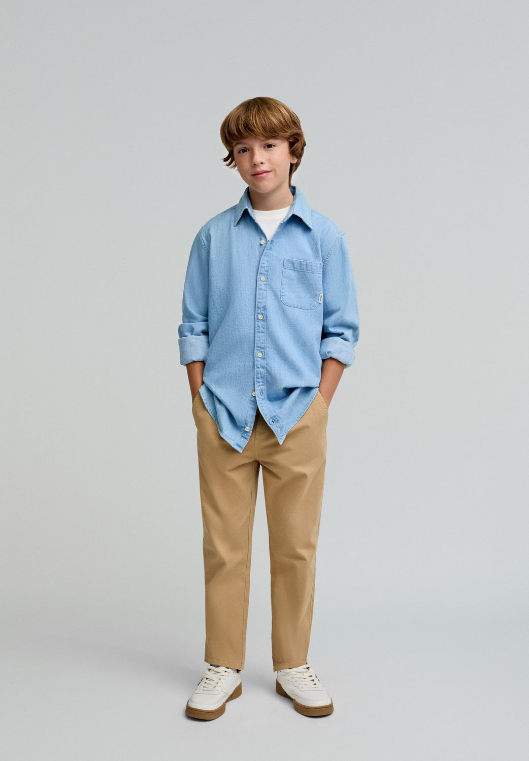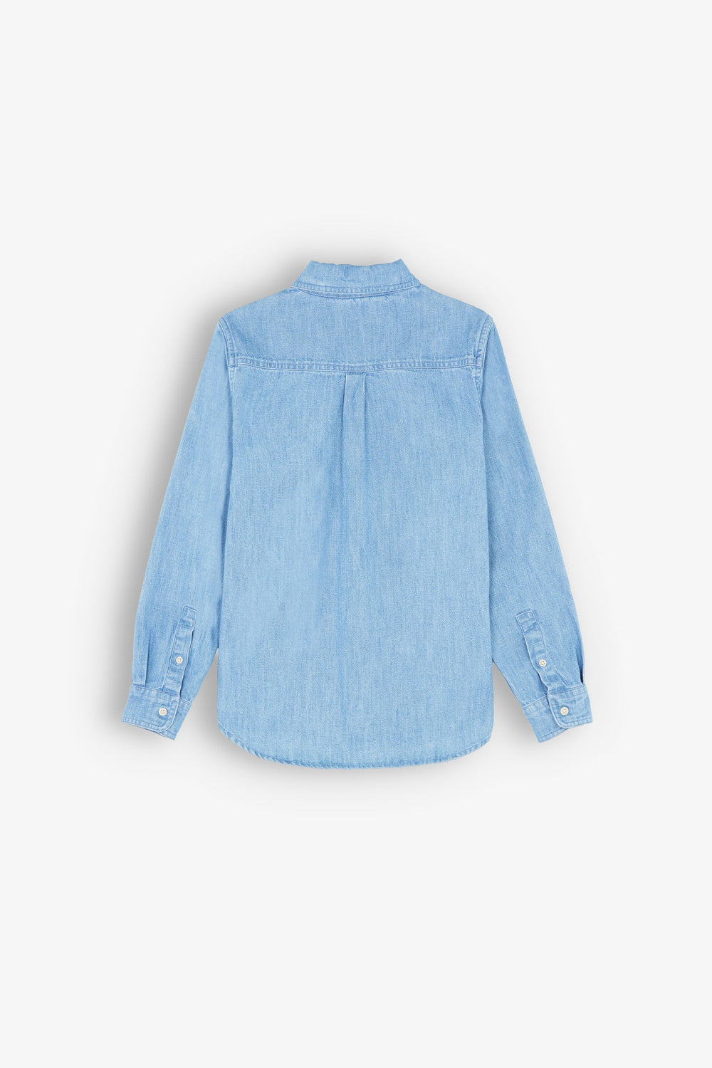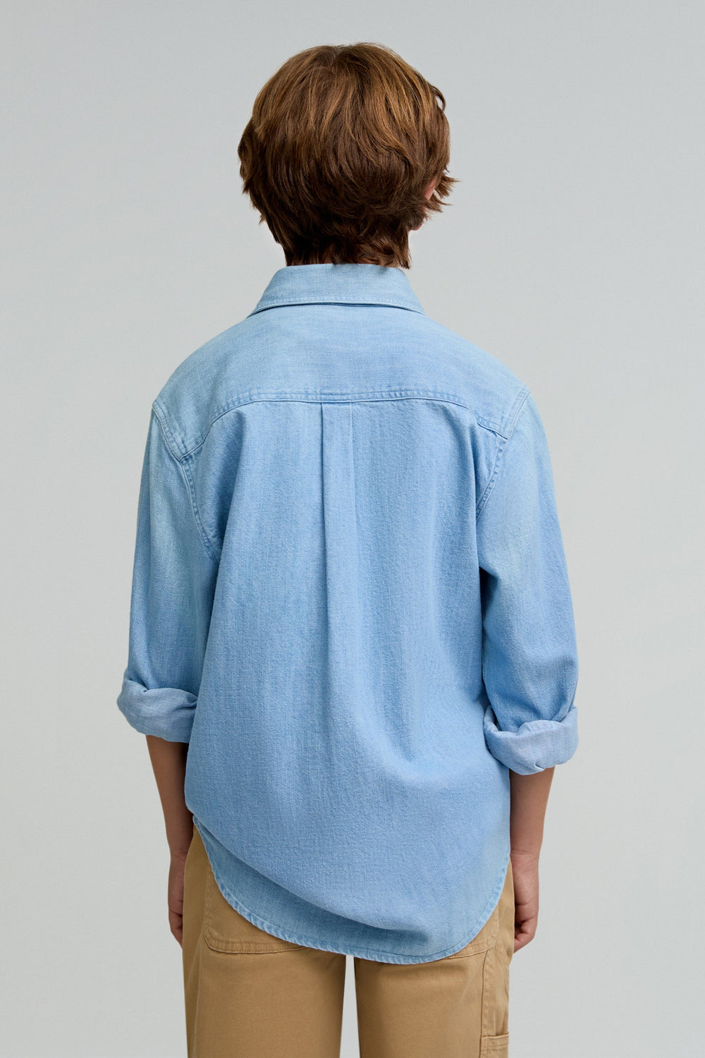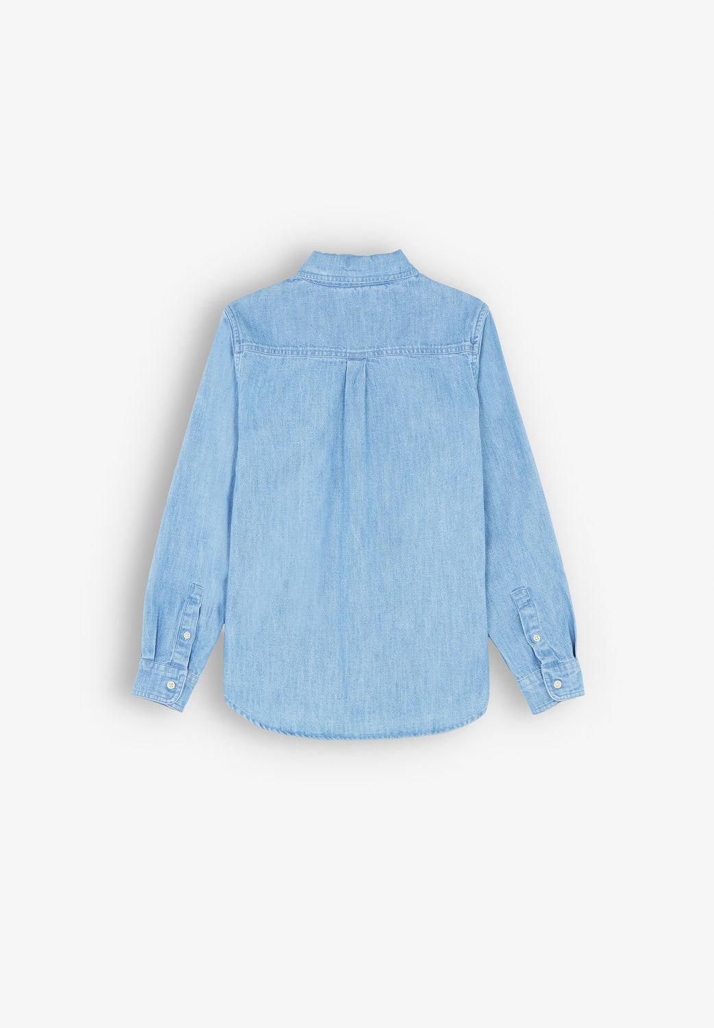 Denim overshirt made of 100% BCI cotton. Regular fit, classic collar and button fastening. Chest pocket.