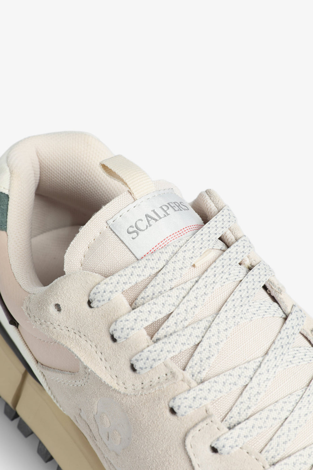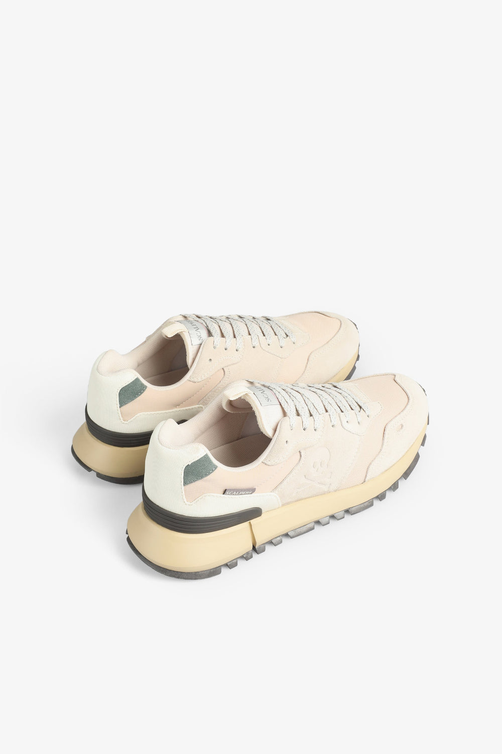 Leather sneakers with split suede finish. Lace-up fastening, pronounced rubber sole and contrast stabiliser. Side skull and label.