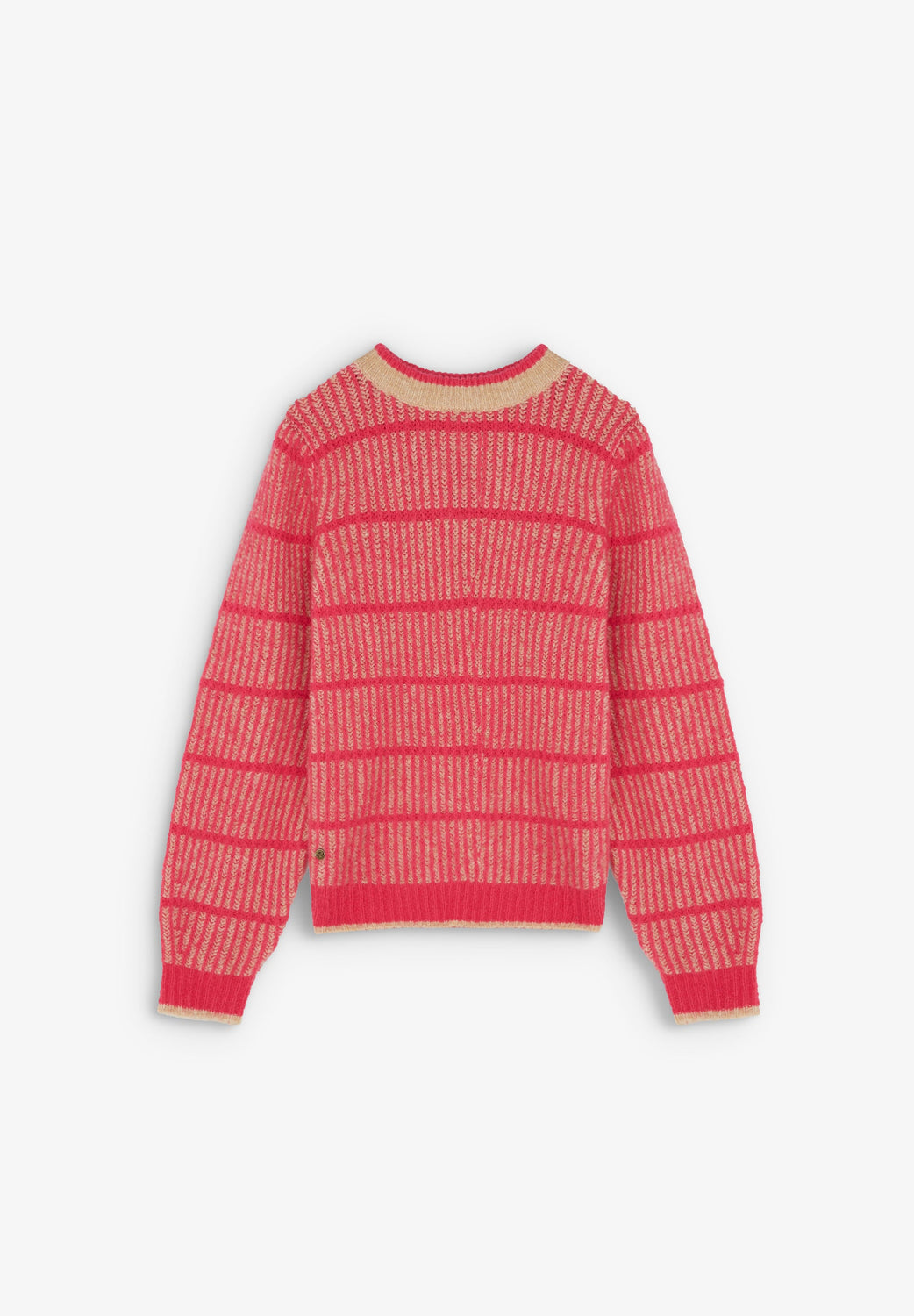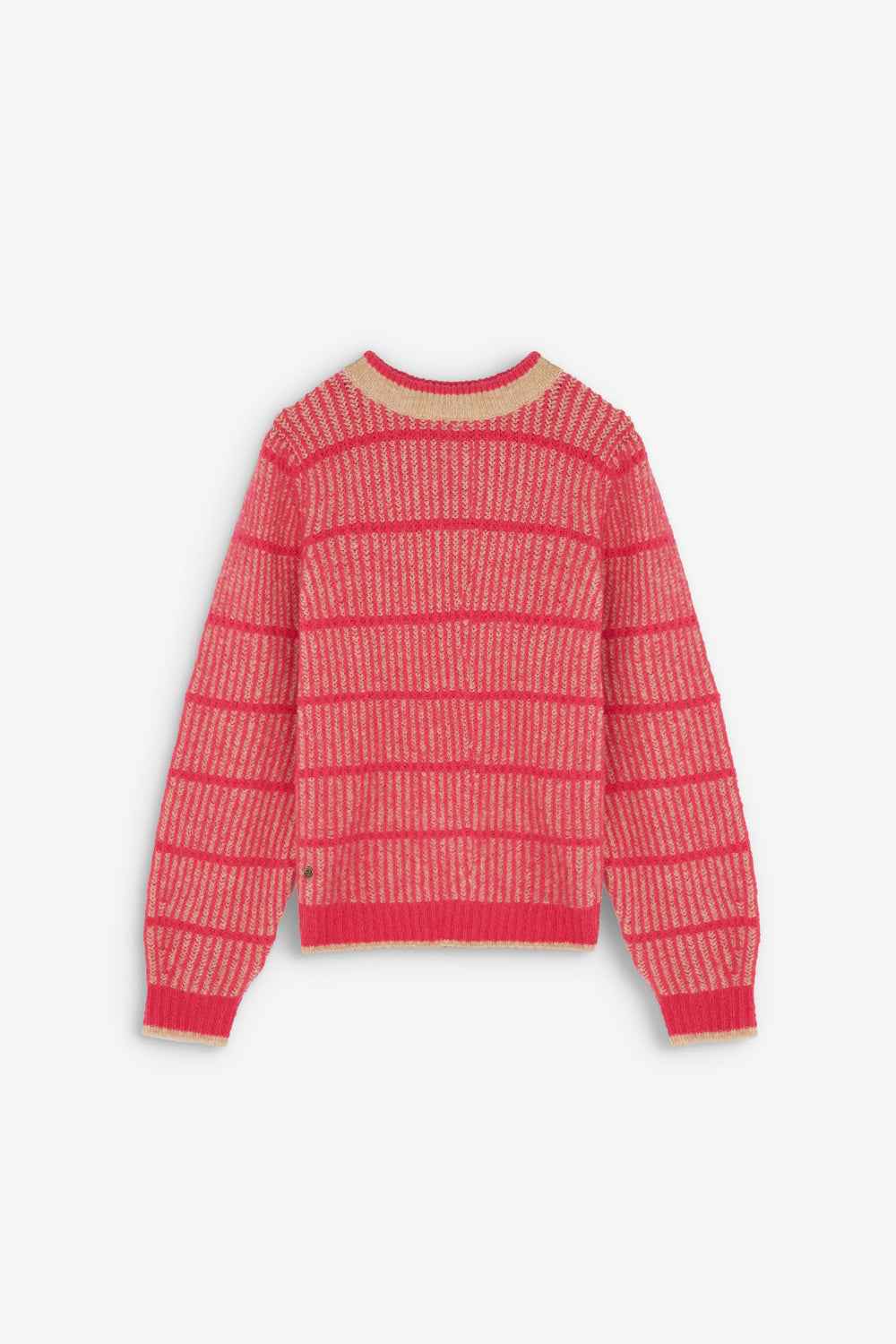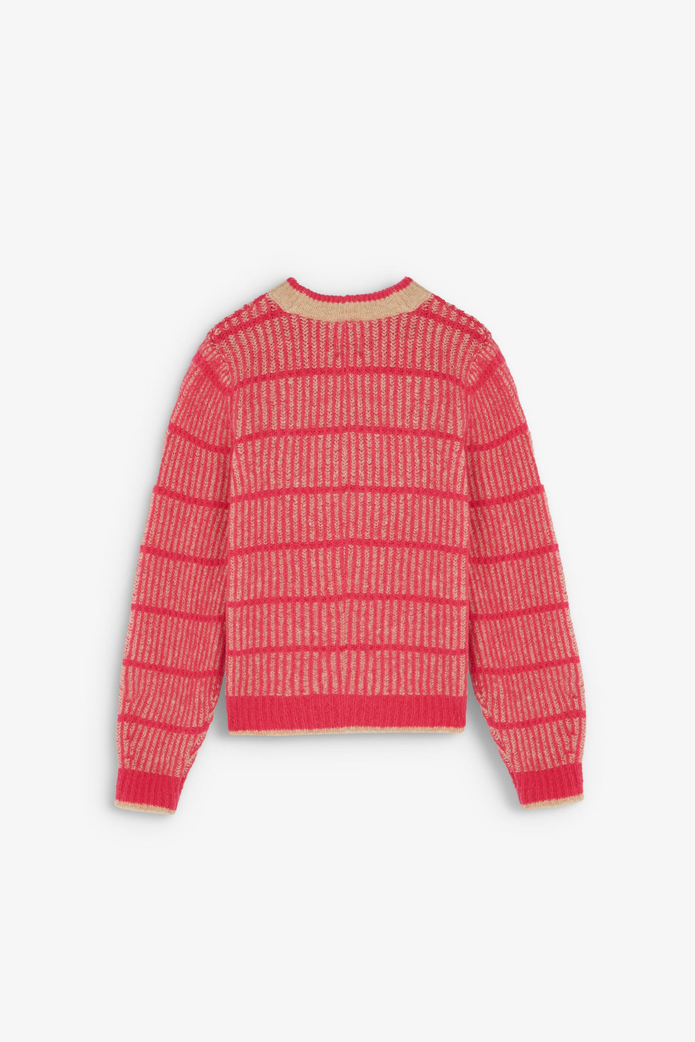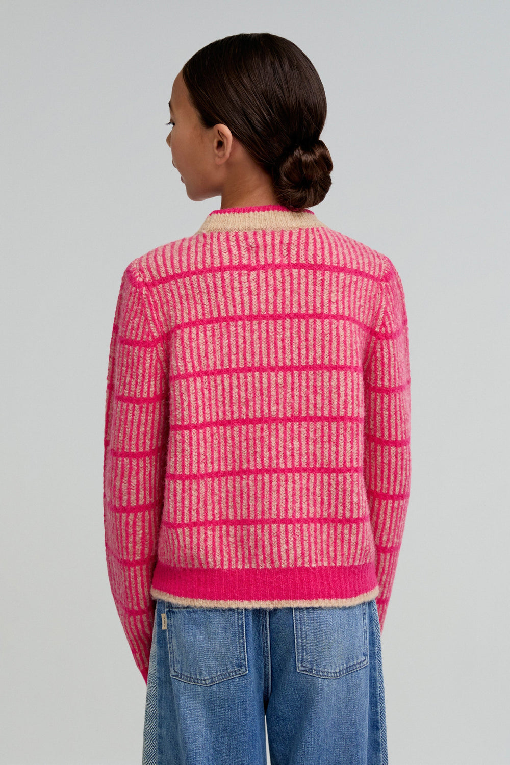 Knit vest with two-tone stripe motifs. Made of a wool blend. Round collar. Regular fit. Long sleeves with ribbed cuffs.