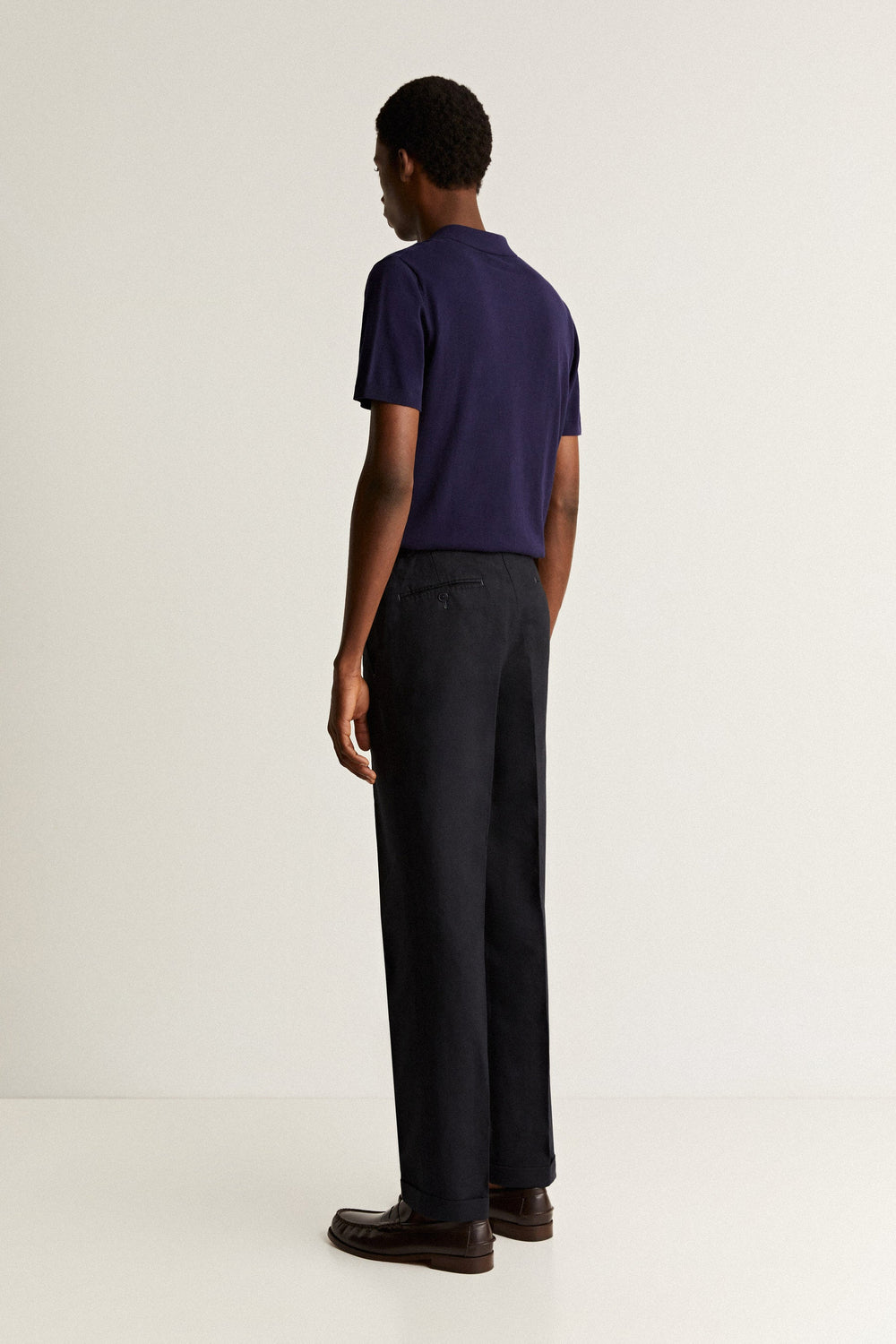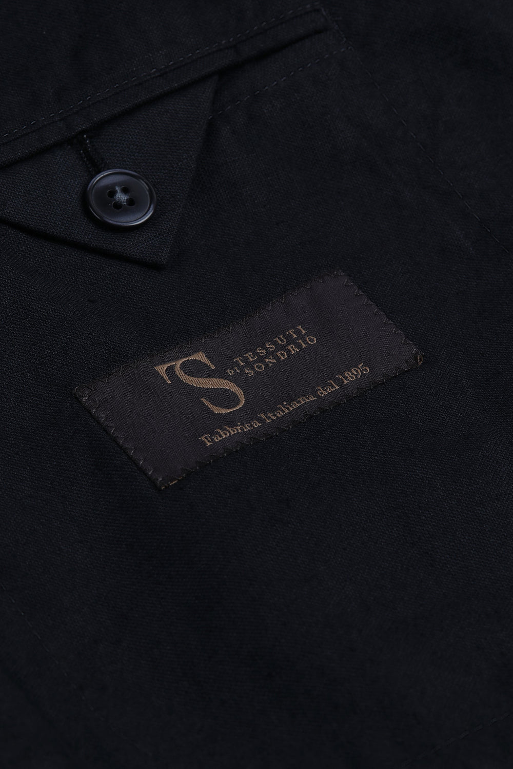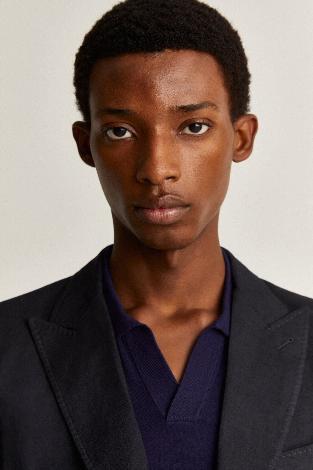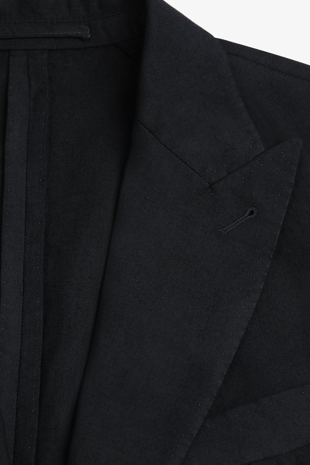 - Blazer: peaked lapel collar, button fastening and side pockets with flaps. Long sleeves with working buttoned cuffs. Semi-structured shoulder pad. Unlined