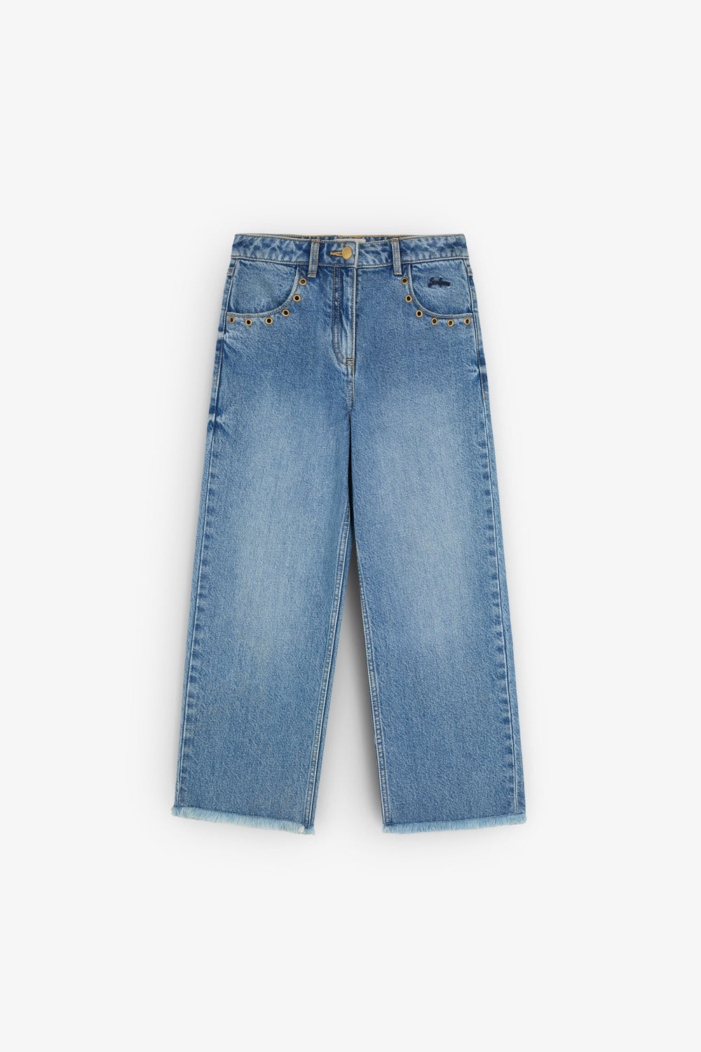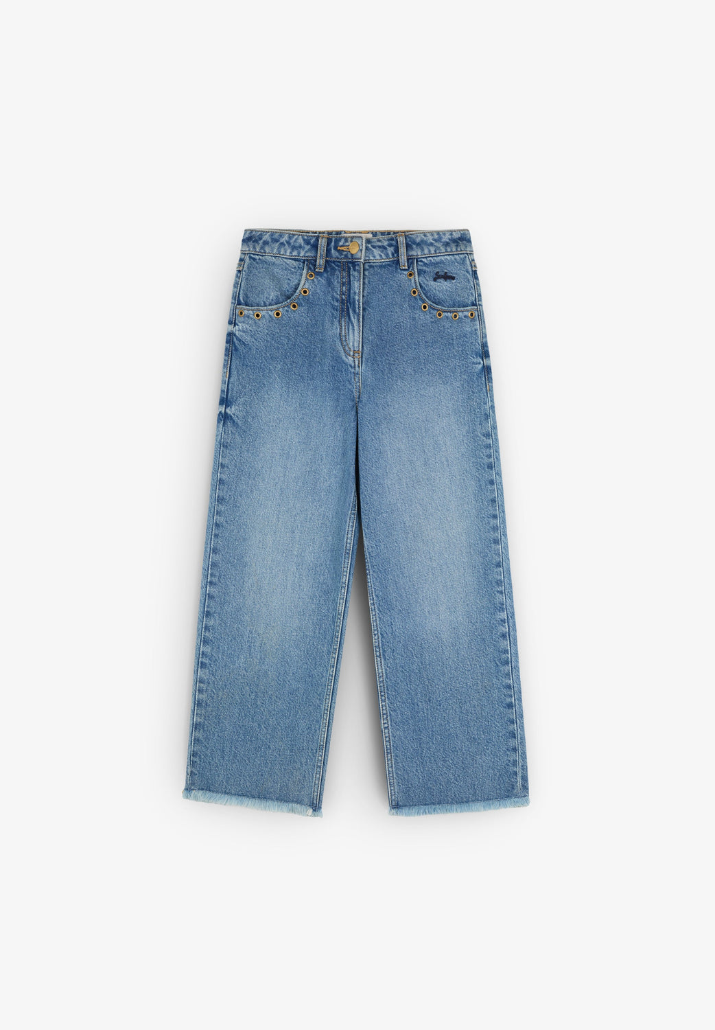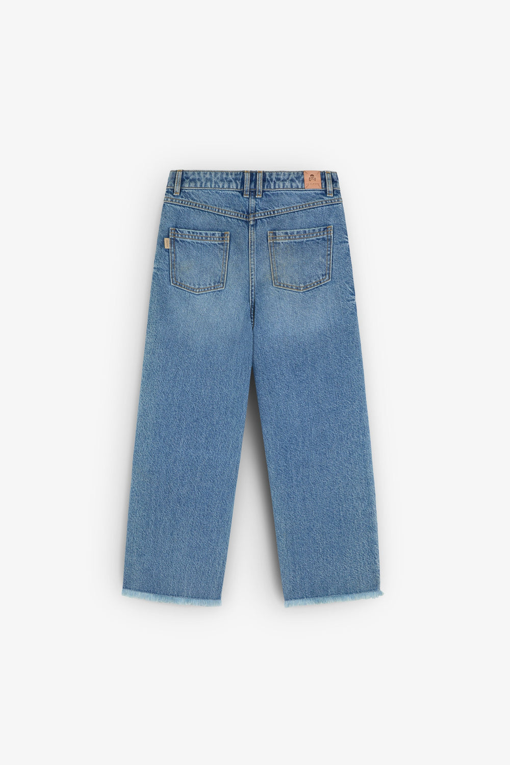 Jeans made of 100% BCI cotton. Culotte fit with high waist, zip and button fastening and side and back pockets.