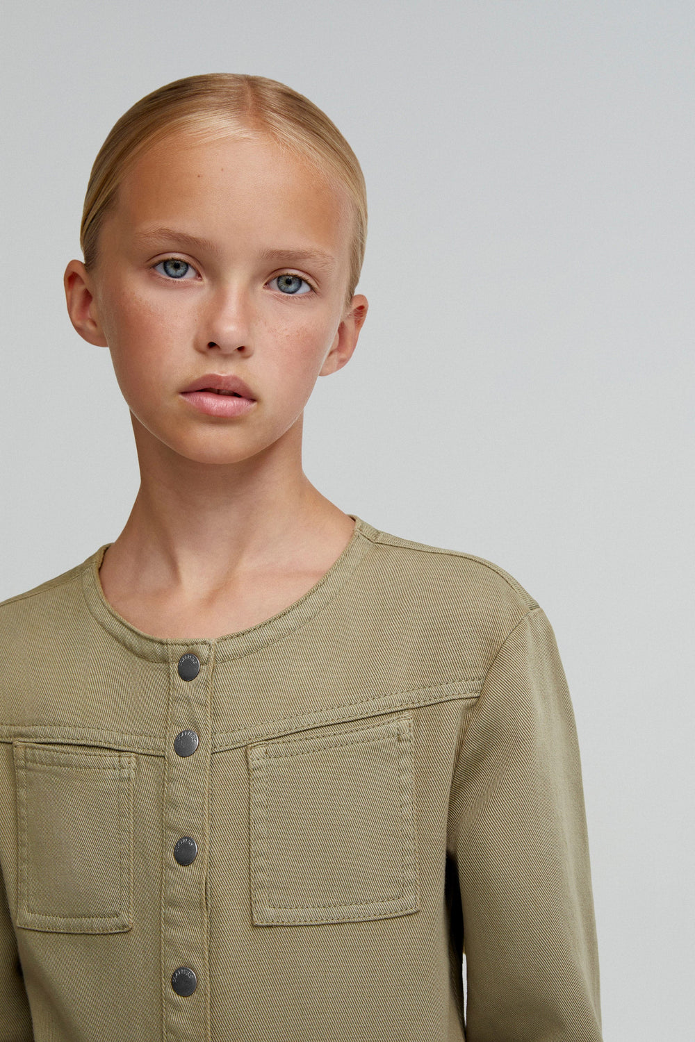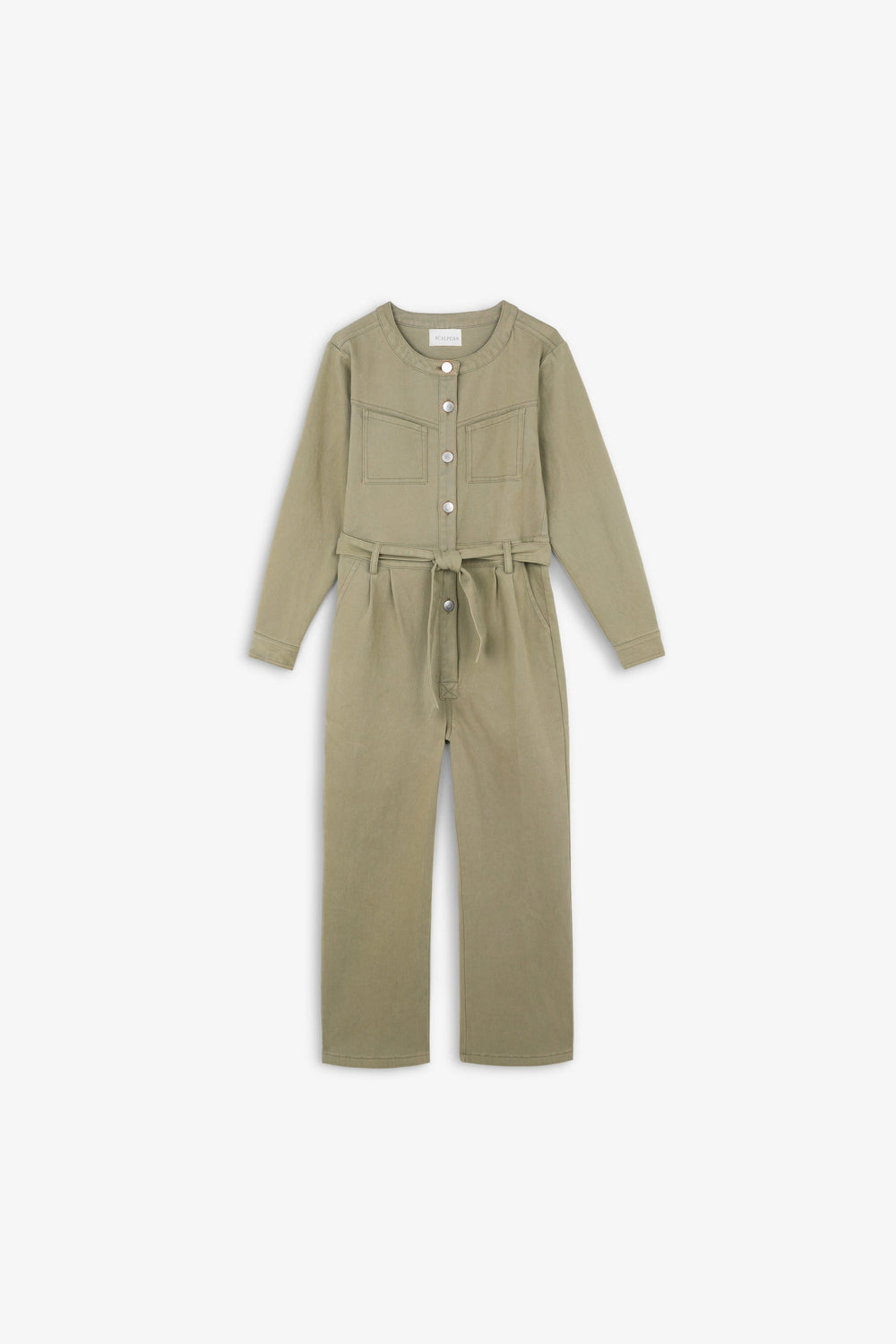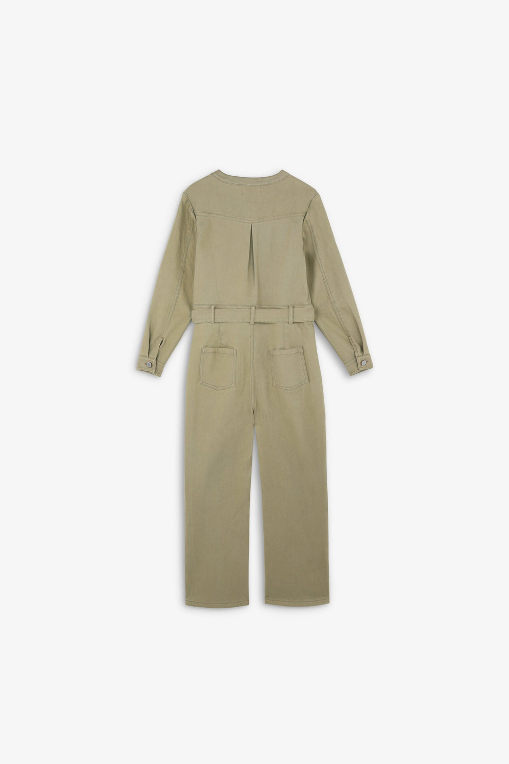 Jumpsuit made of slightly stretchy cotton. Regular fit, full length, round neck and snap button and tie fastening. Long sleeves and pockets.