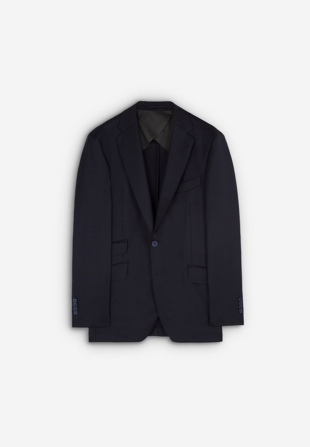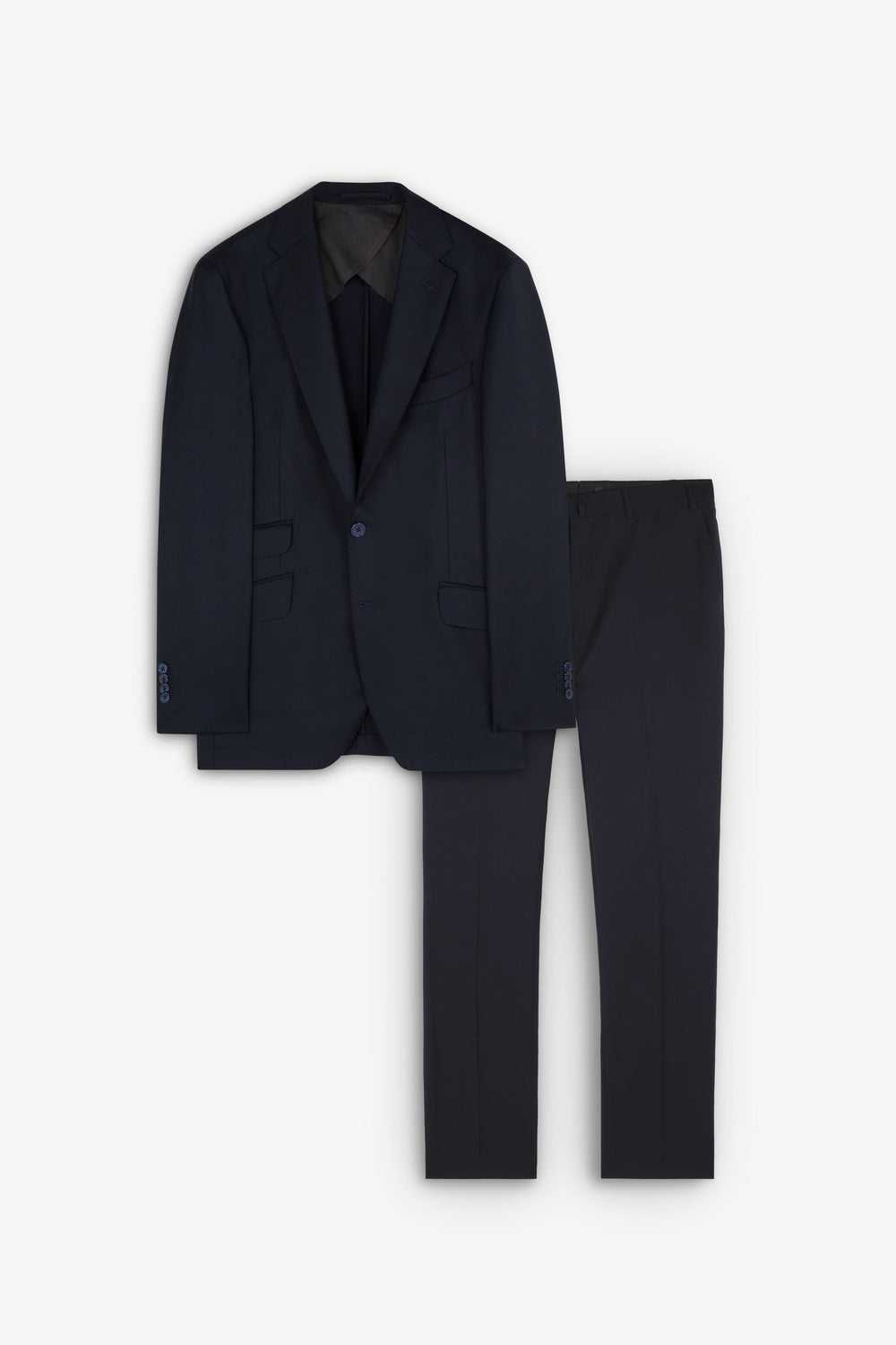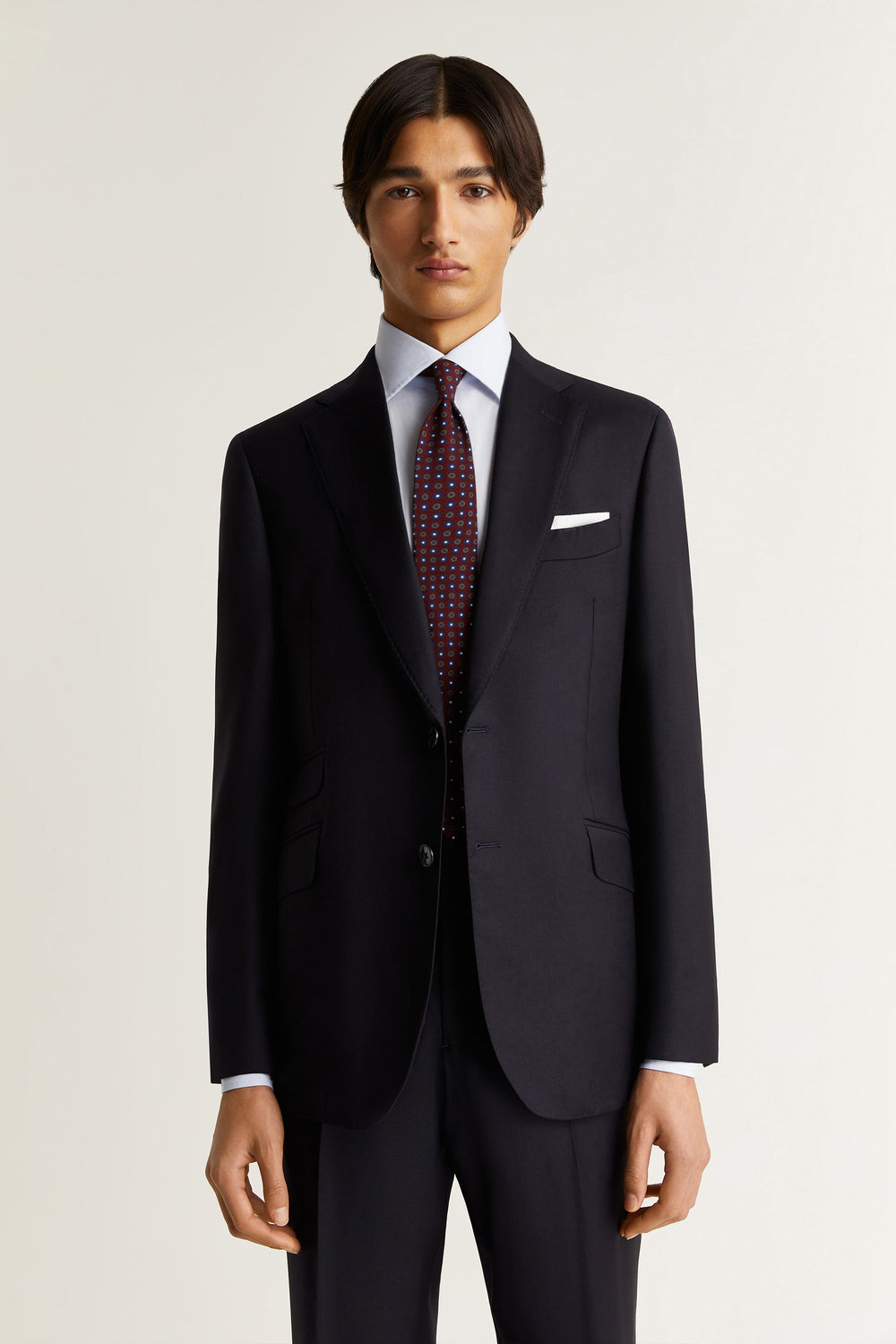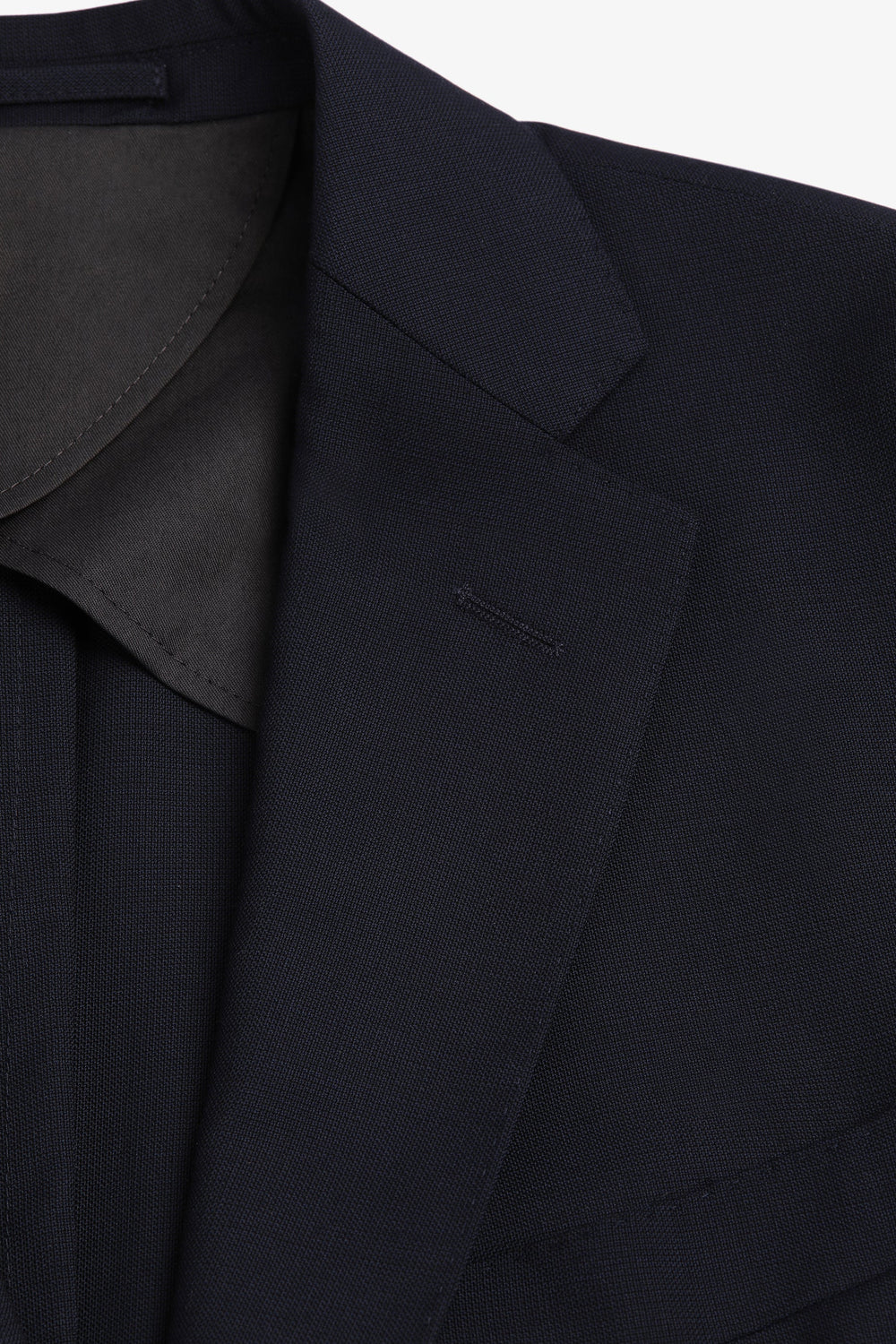Navy blue textured suit.