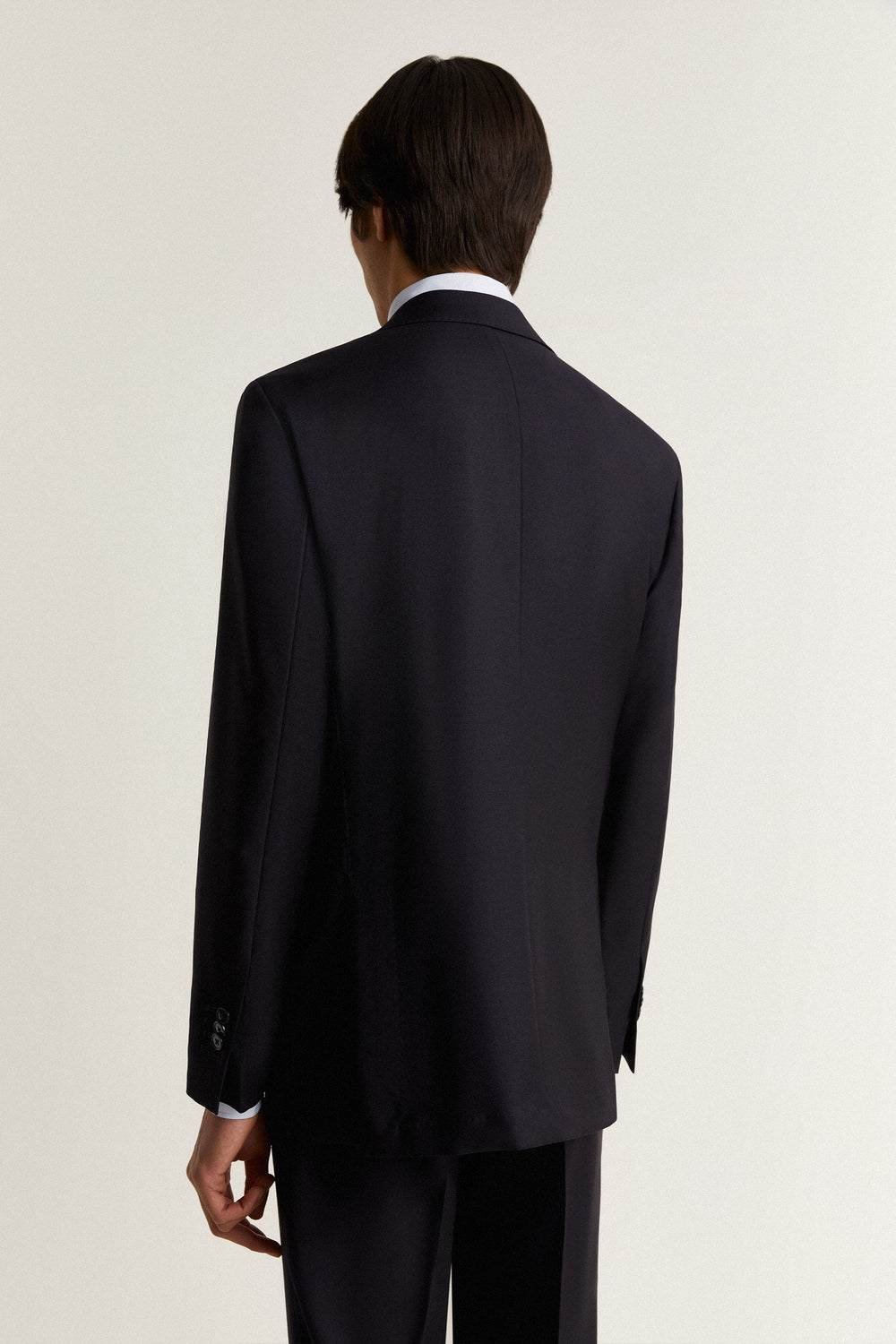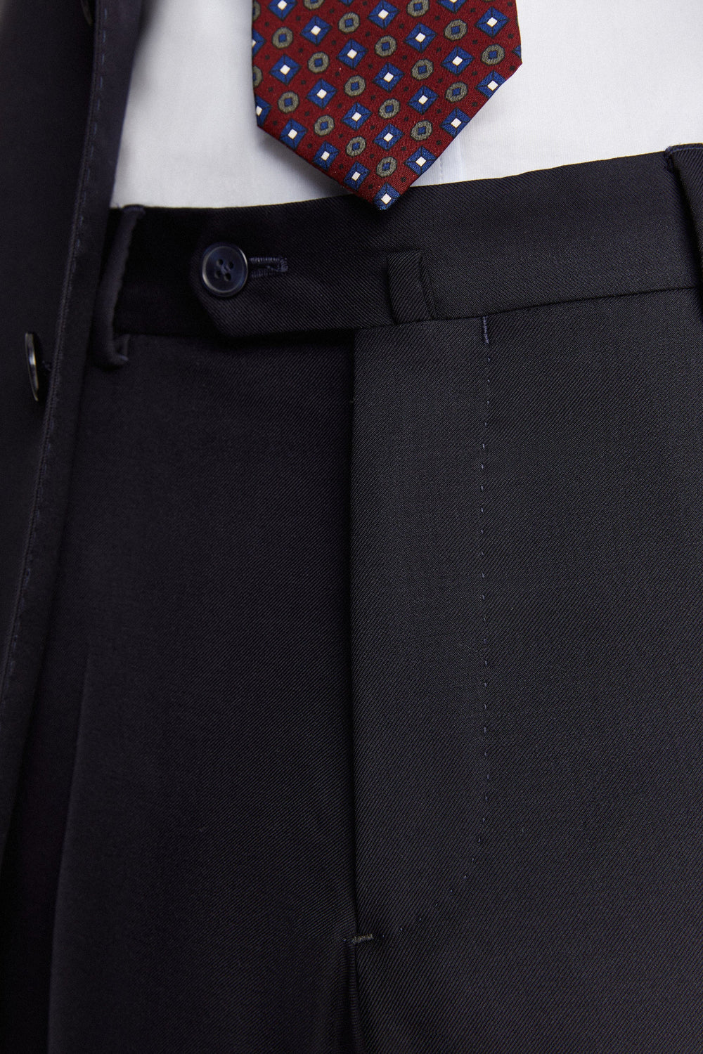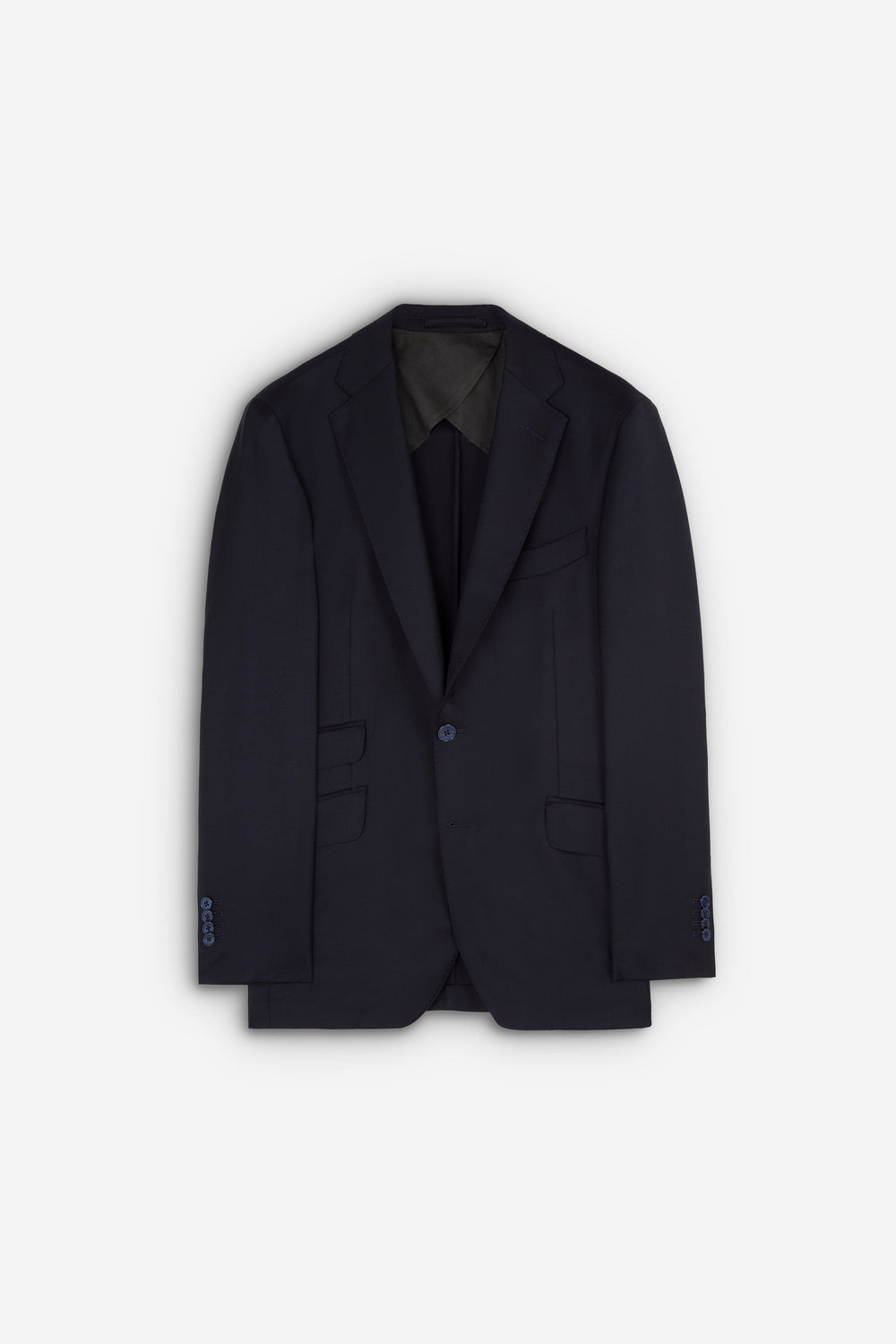 Navy blue textured suit.
