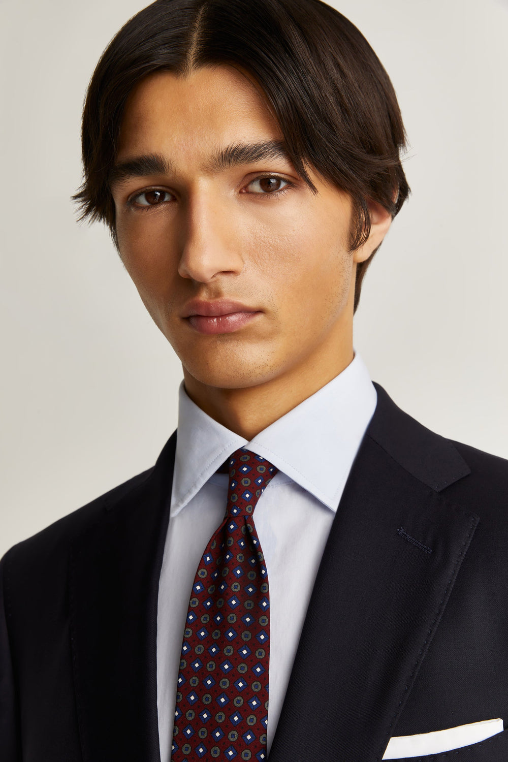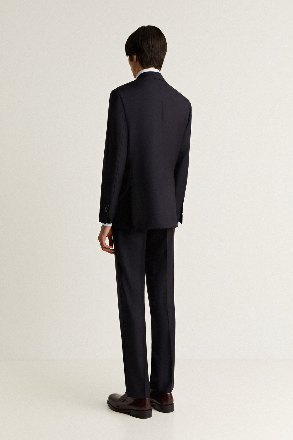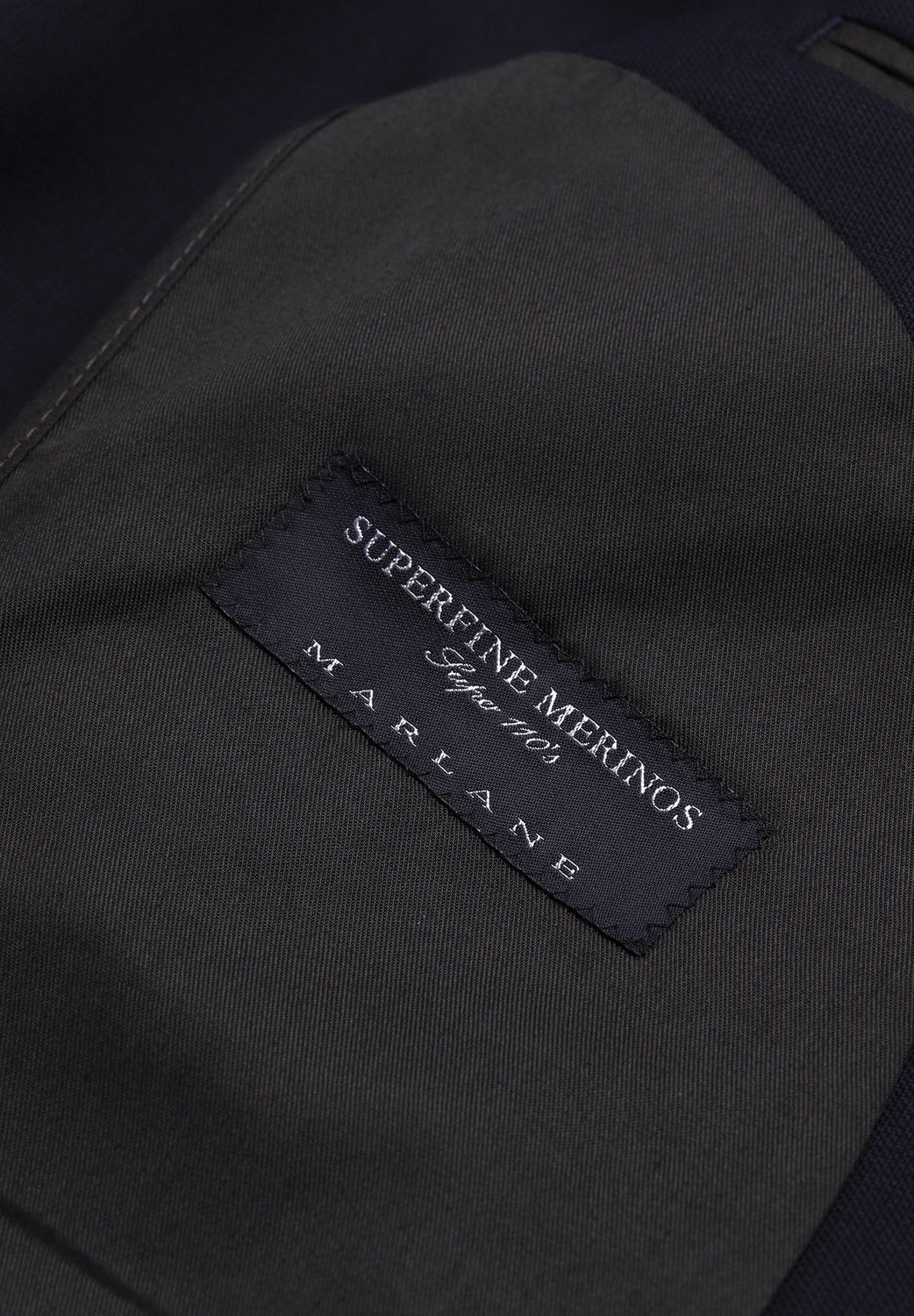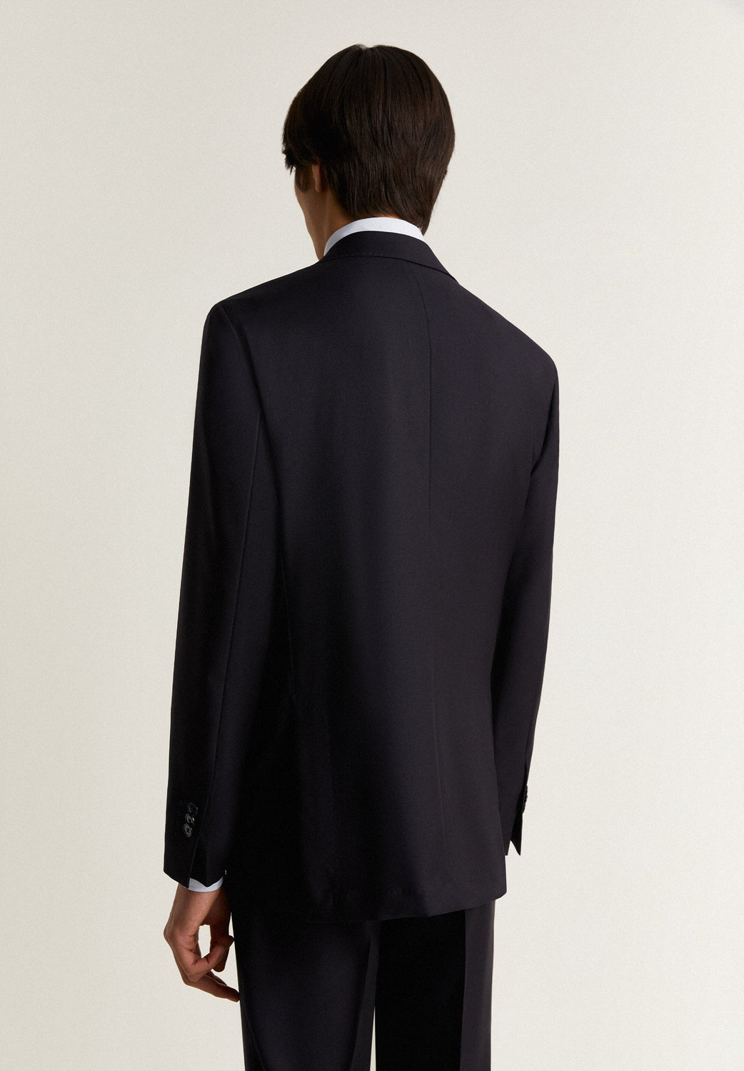 Navy blue textured suit.