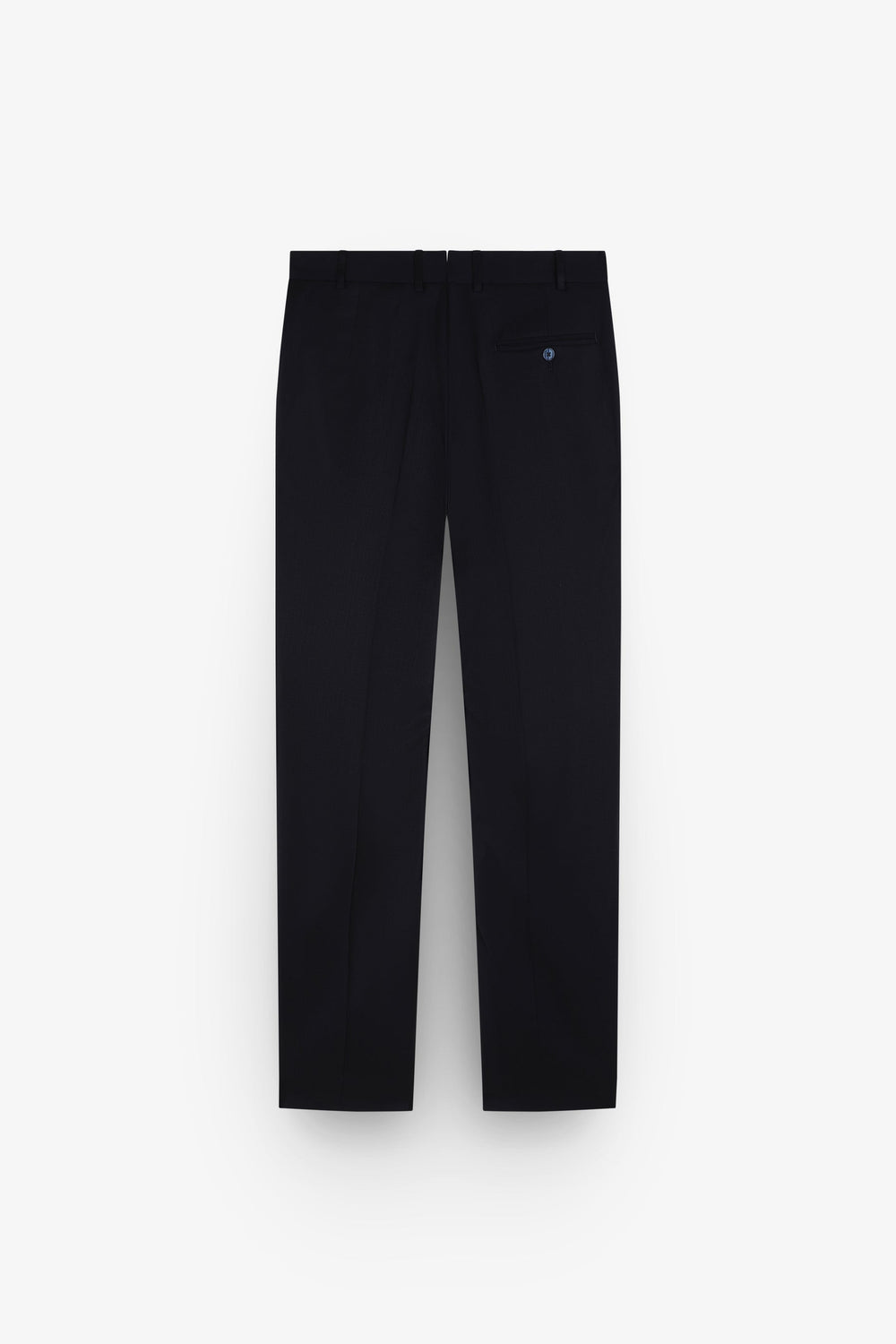 - Pantalón recto con cierre de botón prolongado en cintura y cremallera. Bajo sencillo