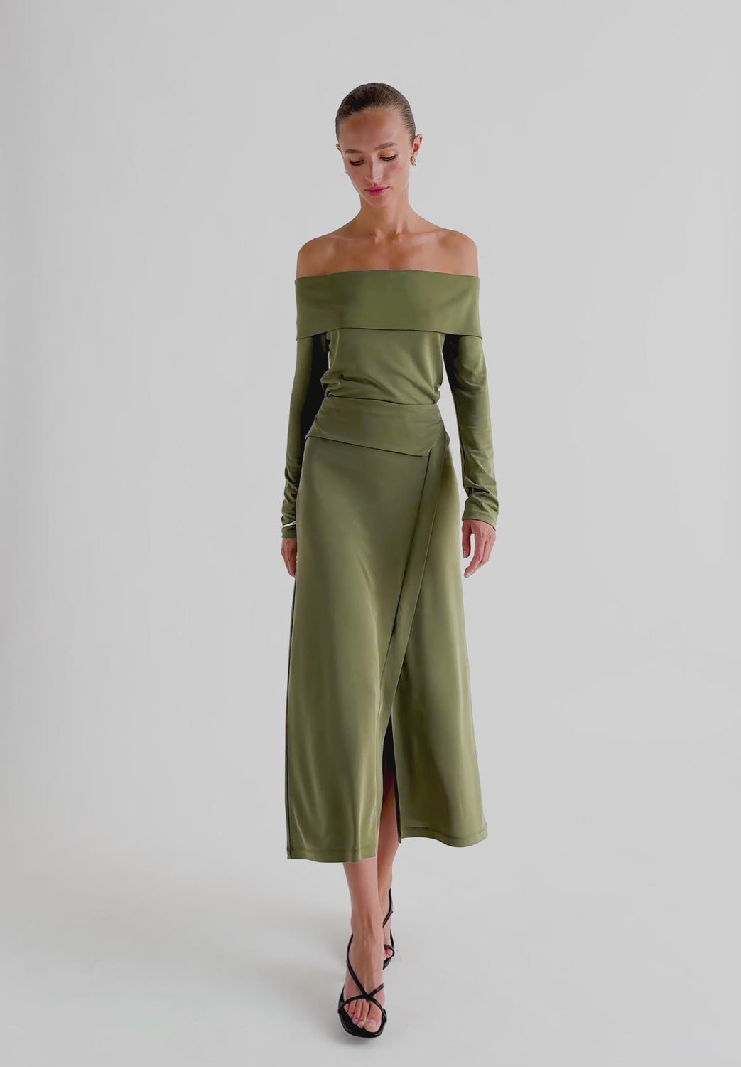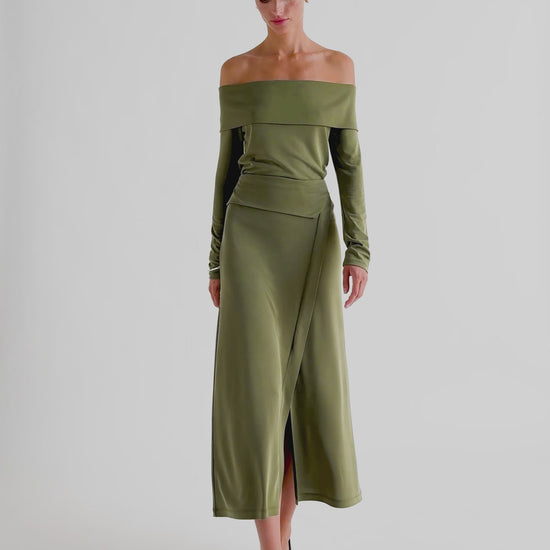 Midi skirt with sash detail at the waist. Made of flowing fabric. Regular fit. Side zip fastening.
