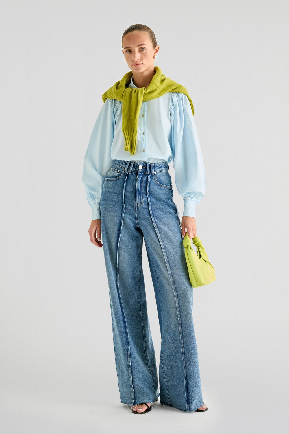 Shirt made of cotton. Regular fit, classic collar and button fastening. Long puff sleeves with buttoned cuffs.