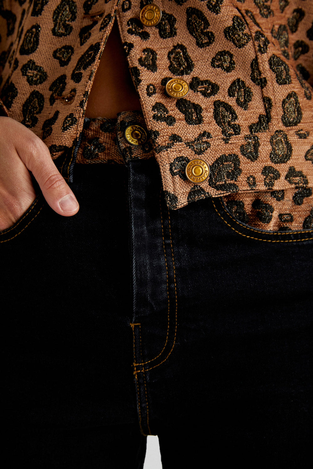 ANIMAL PRINT DETAIL JEANS