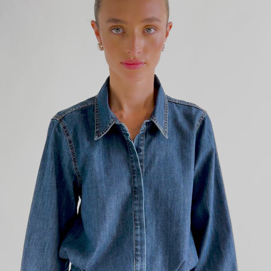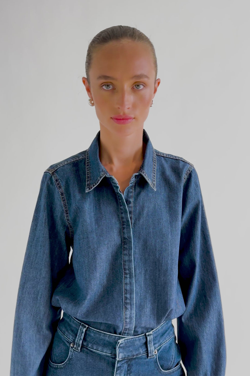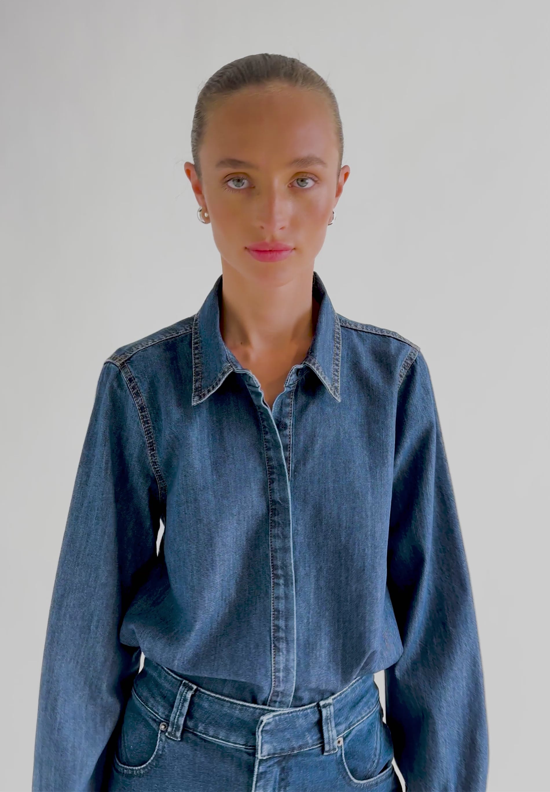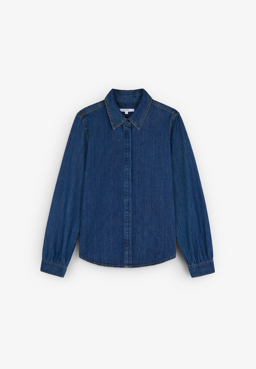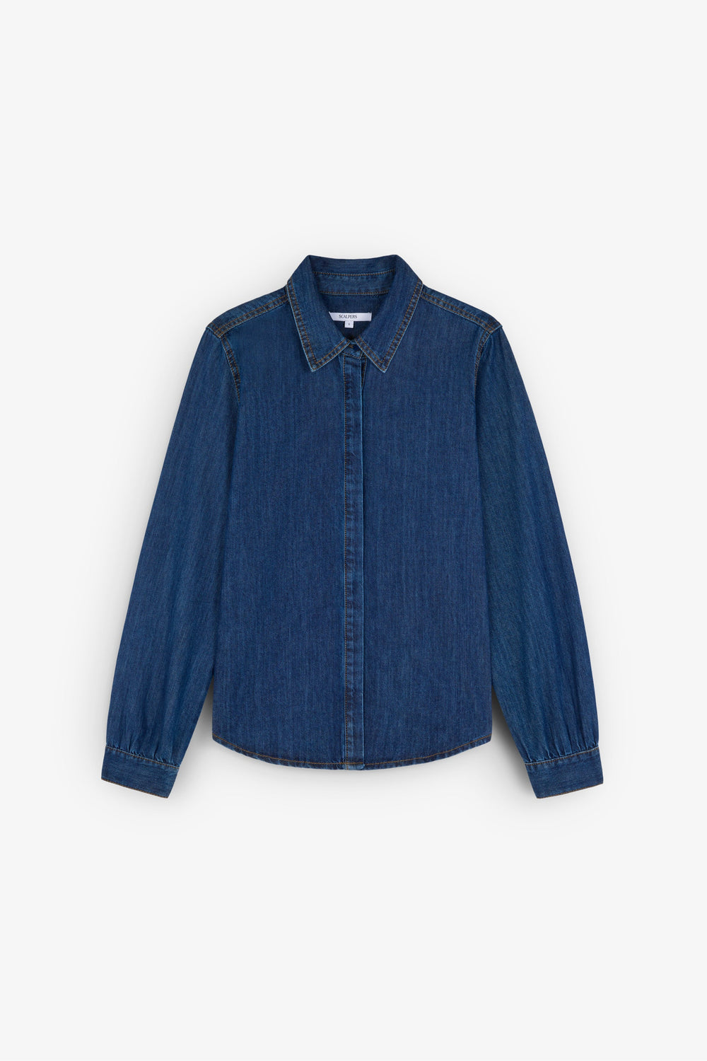 Denim shirt made of 100% cotton. Regular fit, classic collar and button fastening with placket. Long sleeves with cuffs and back yoke.