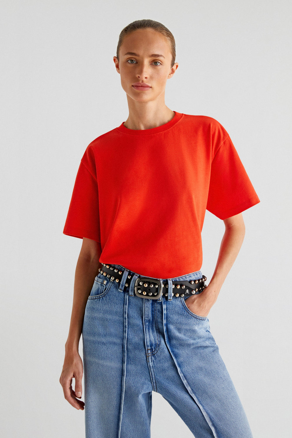 T-shirt made of 100% BCI cotton. Regular fit, round neck and short sleeves. Knot detail and back vents.