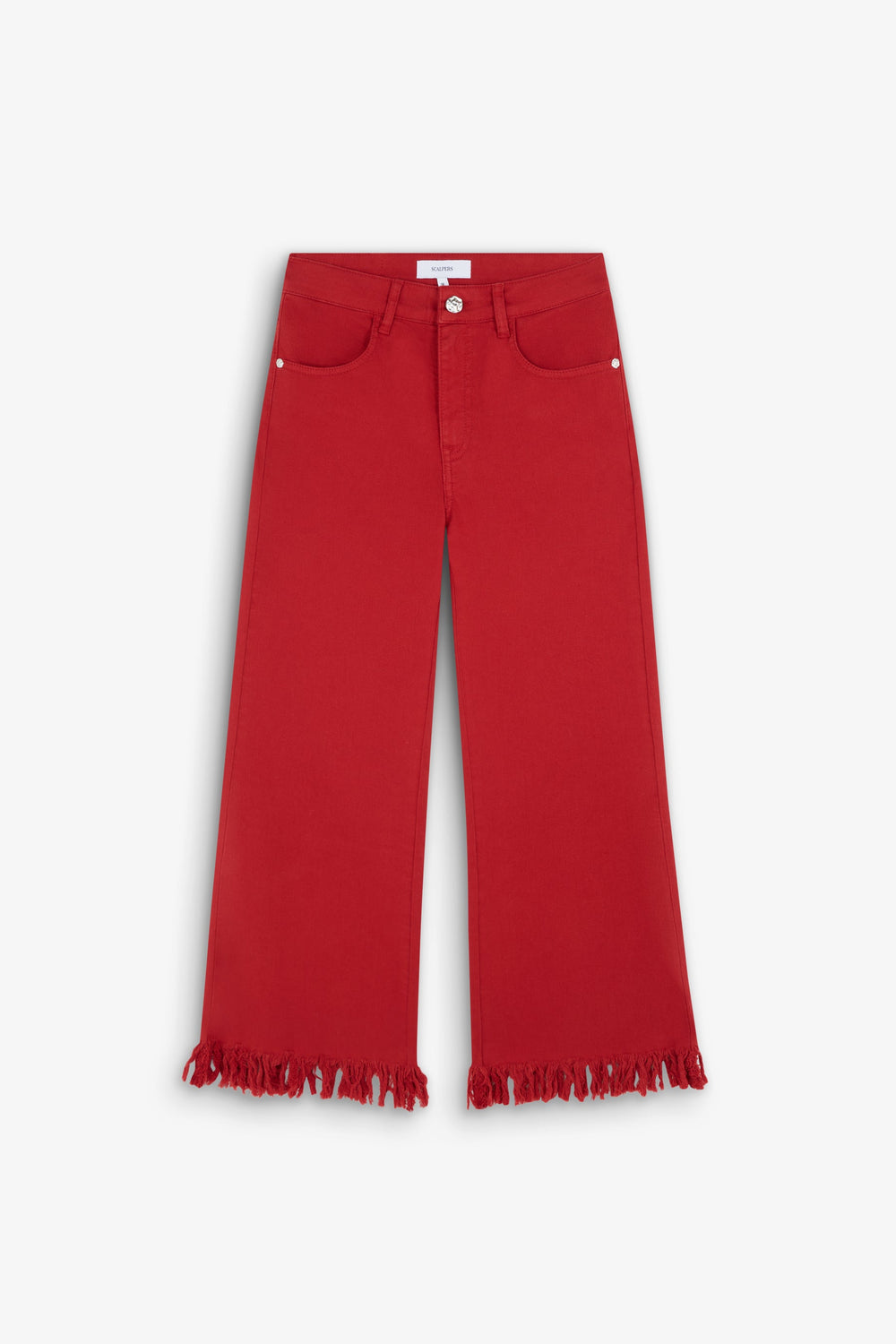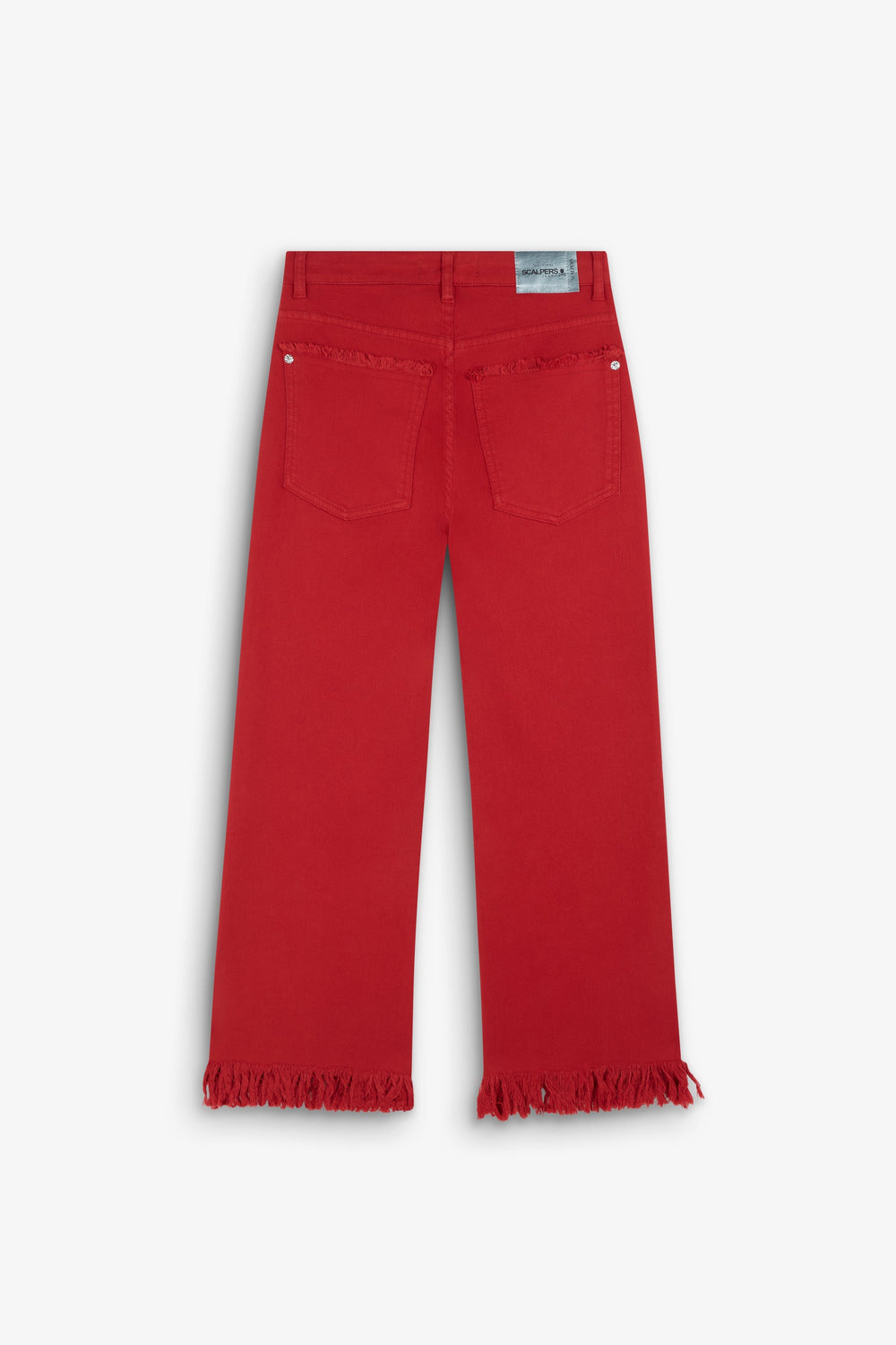 Culotte jeans. Button and zip fly fastening pockets and frayed edge hems. Features belt loops.