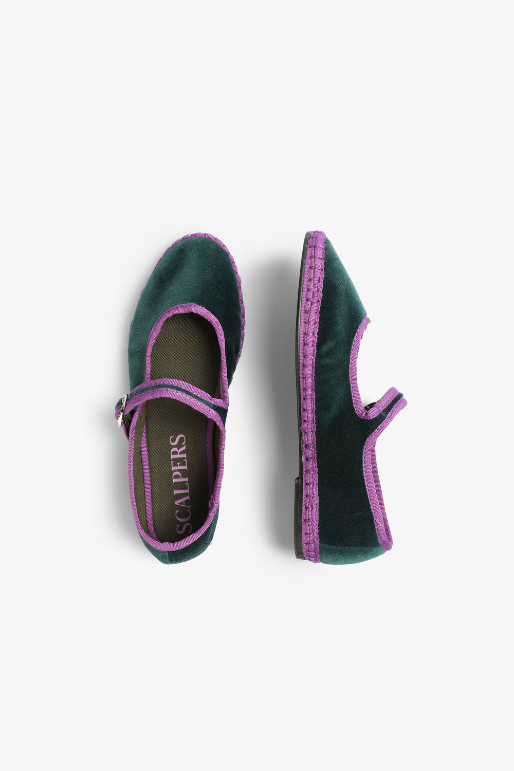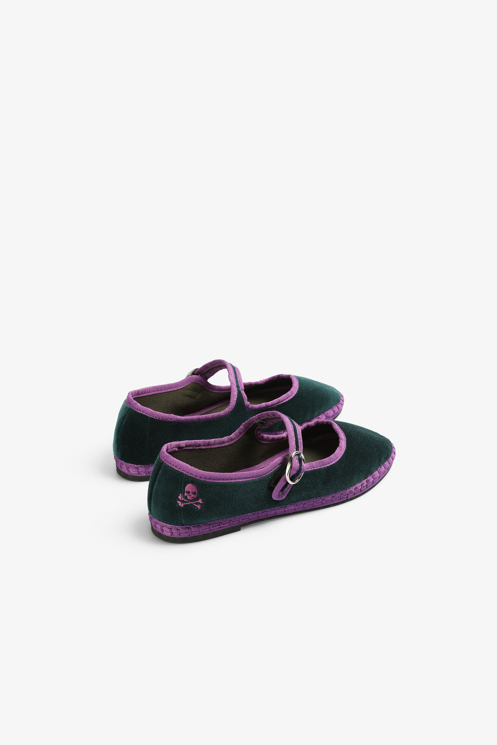 Ballet flats with skull detail. Made of 100% cotton. Strap and metal buckle fastening. Rubber sole