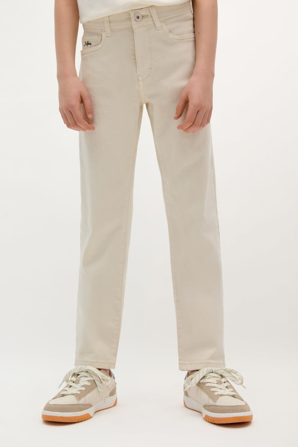 Trousers made of slightly stretchy cotton. Regular fit, button and zip fastening and side and back pockets. Belt loops at the waist and embroidered logo.