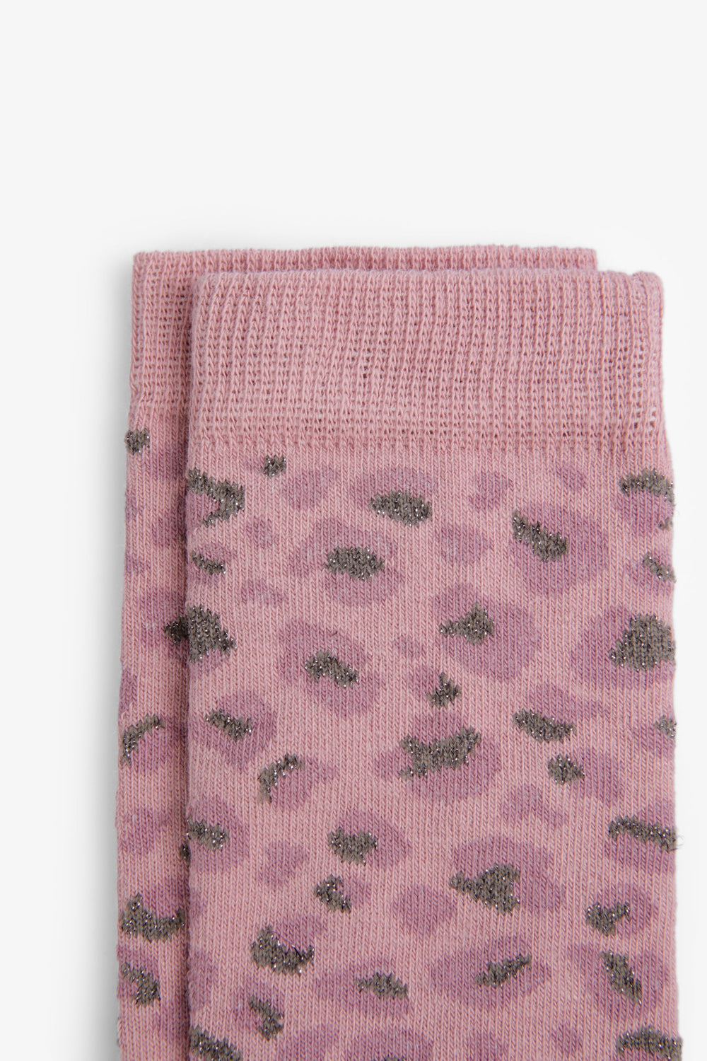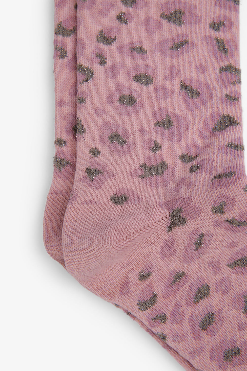 Animal print socks in slightly stretchy fabric with lurex. Mid-calf.