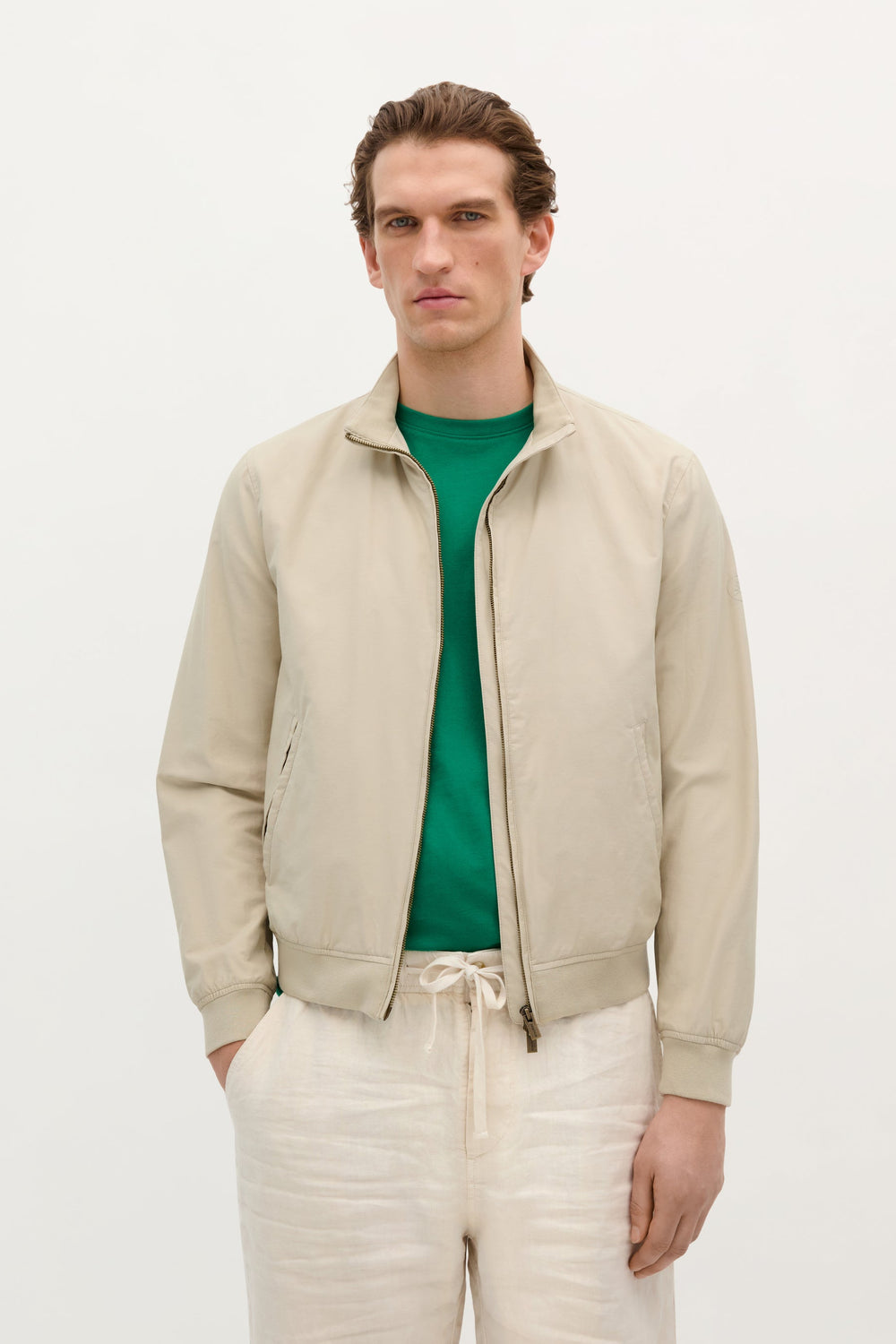 Bomber jacket made of a cotton and technical fabric blend. Regular fit, ribbed collar and zip fastening. Long sleeves with stretch cuffs and pockets with snap button fastening.