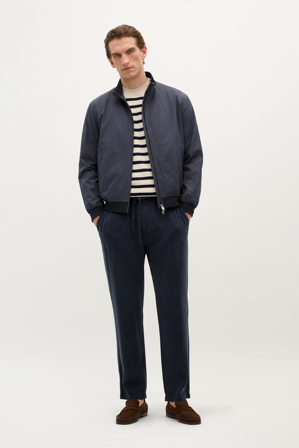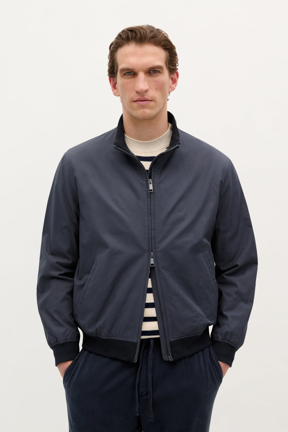 Bomber jacket made of a cotton and technical fabric blend. Regular fit, ribbed collar and zip fastening. Long sleeves with stretch cuffs and pockets with snap button fastening.