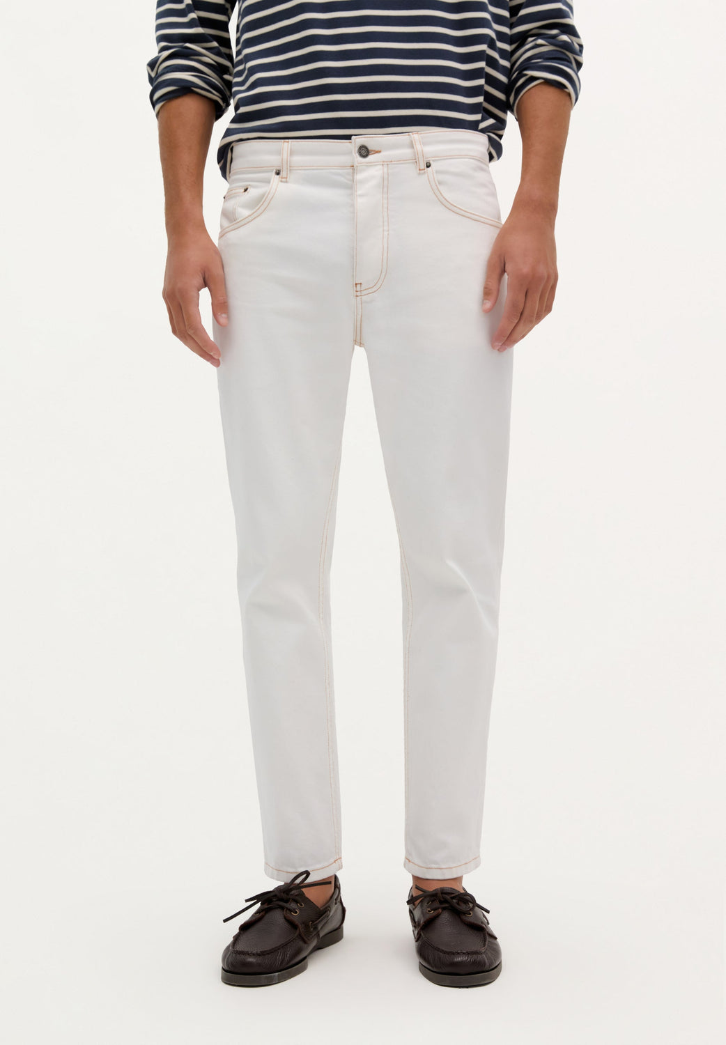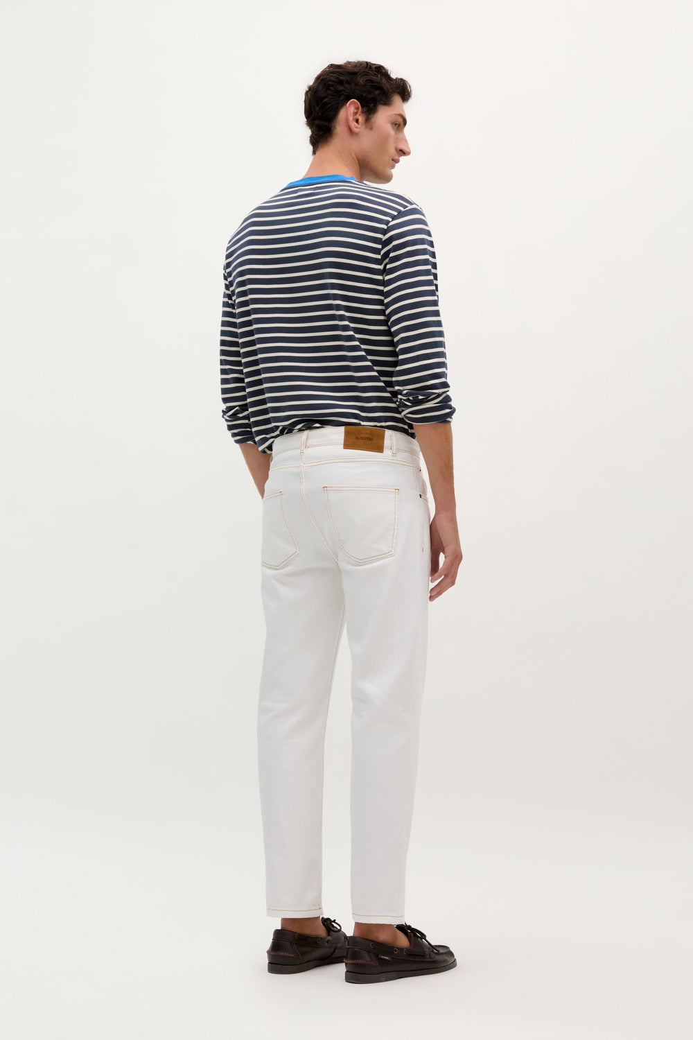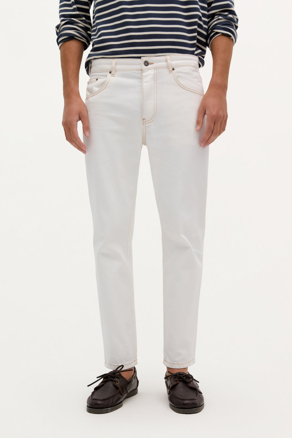 Jeans confeccionados en mezcla de algodón. Corte cropped, cierre con botón y cremallera y bolsillos laterales y traseros. Trabillas en cintura.