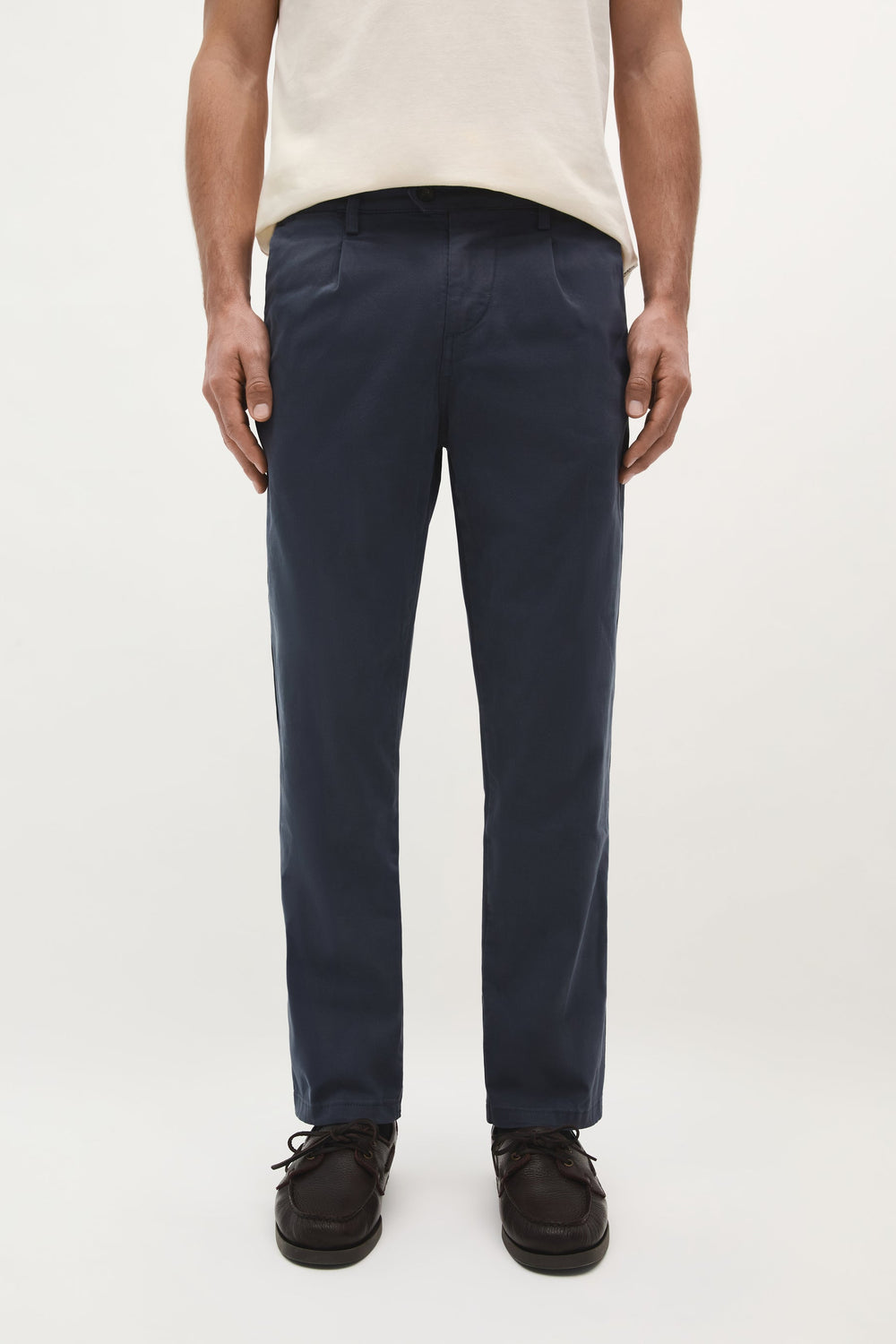 Chino trousers made of a slightly stretchy BCI cotton blend. Relaxed fit with darts, button and zip fastening and side pockets. Belt loops at the waist.