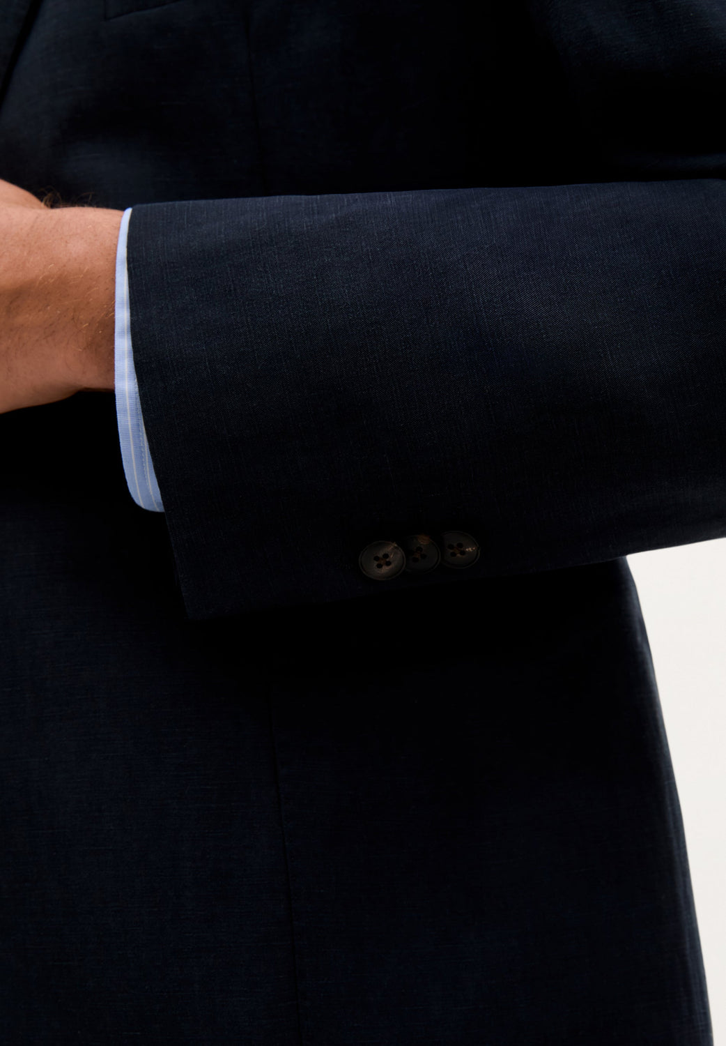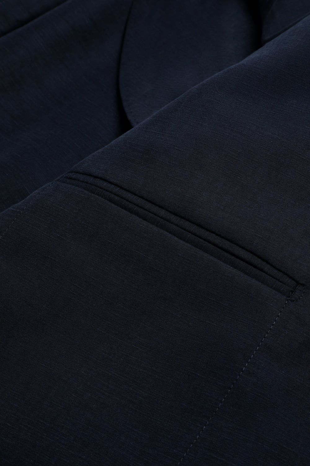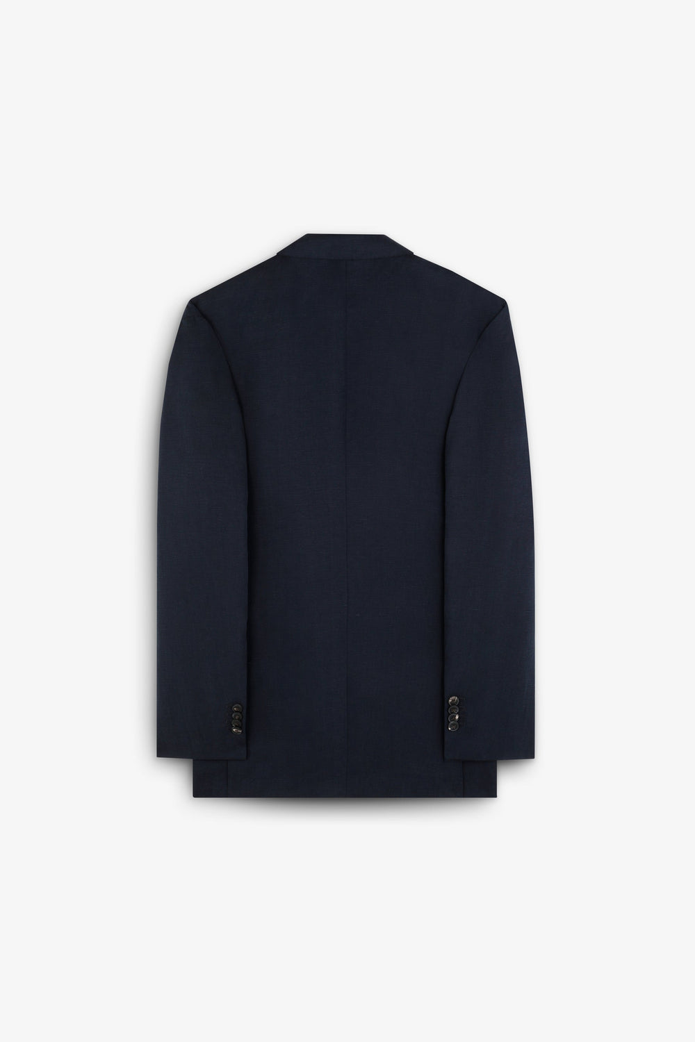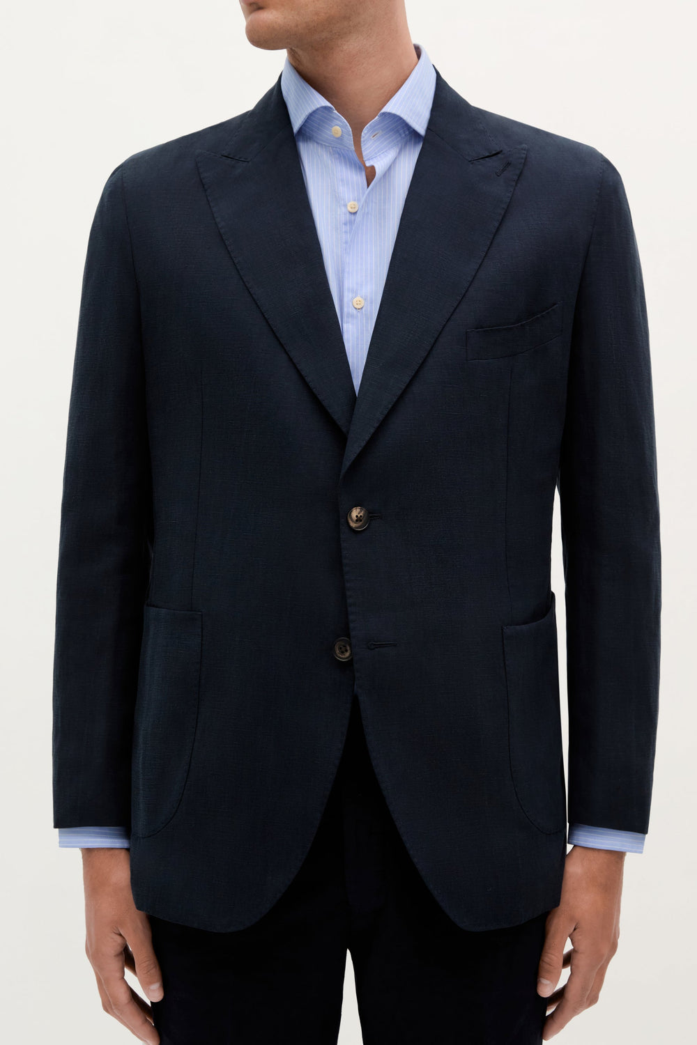 Chaqueta confeccionada en Lino de corte entallado sport. Cierre de botonadura simple. Solapas de muesca. Bolsillo de ojal en el pecho, bolsillos de solapa laterales. Abertura trasera. Forro interior.