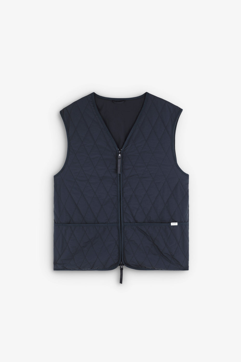 Puffer vest. Made in recycled nylon, regular fit and V-neck with double slider zip fastening. Front pockets with logo detail on label.