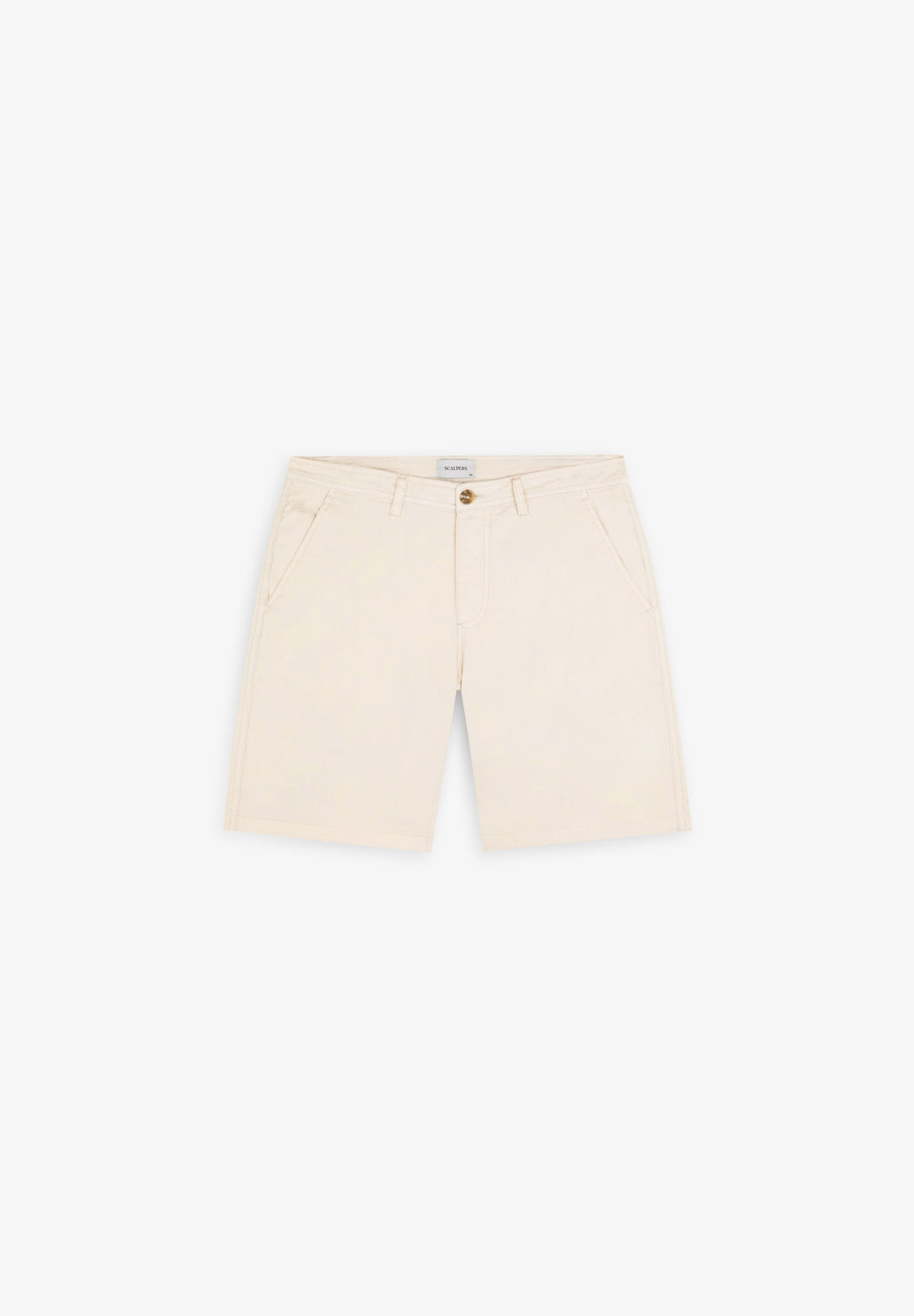 Classic faded Bermuda shorts. Made from 100% organic cotton. Regular fit. Button fastening. Slanted opening pockets on the sides. Piped back pockets with button fastening. Belt loops at the waist.